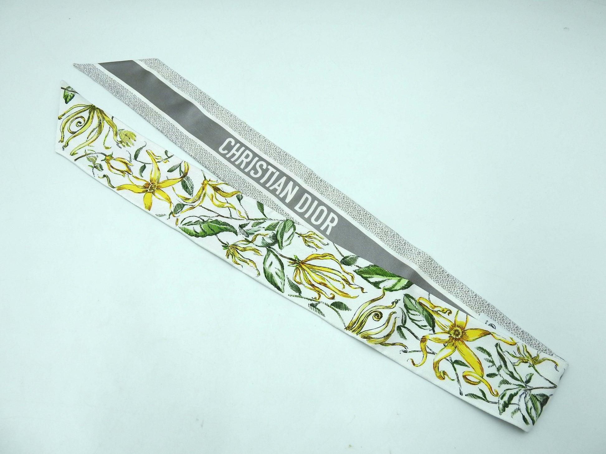 Auth CHRISTIAN DIOR Mitzah Bandeau Scarf 100% Silk Gray White 35ABC106Y60