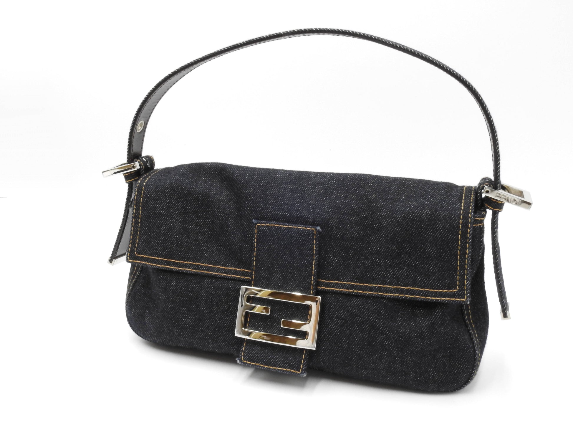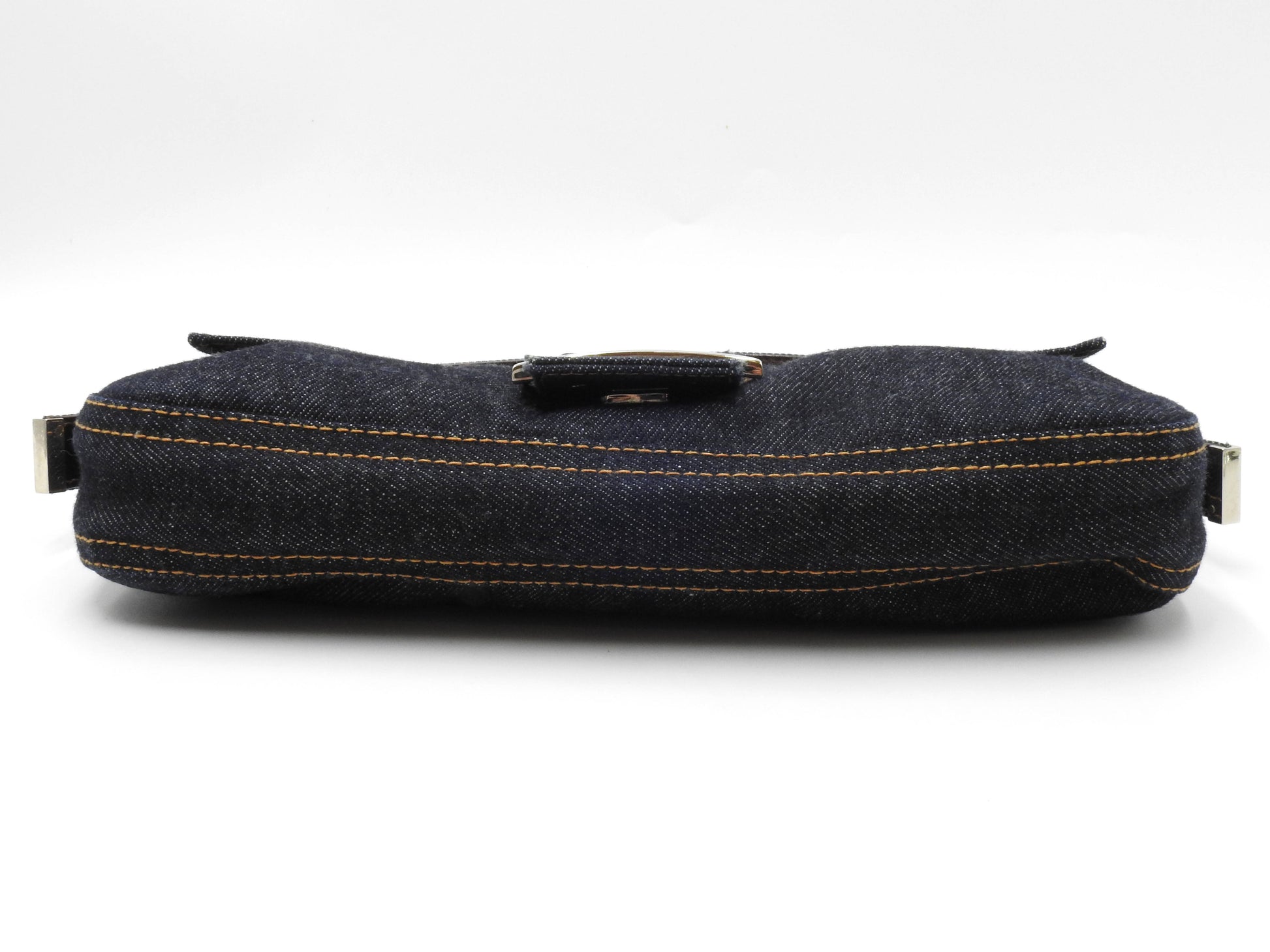 Auth FENDI Mamma Baguette Shoulder Hand Bag Denim Navy Silver Hardware