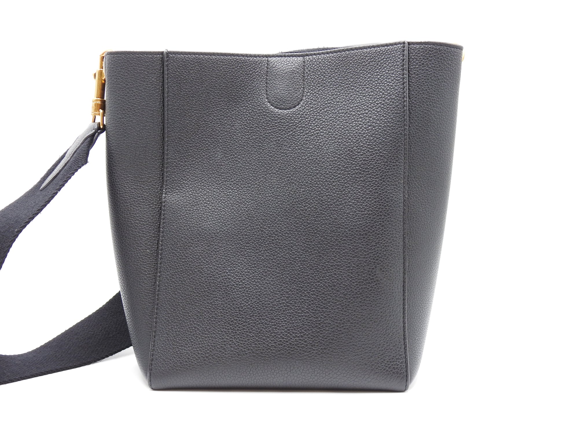 CELINE Small Sangle Bucket Shoulder Bag Soft Grained Calfskin Black