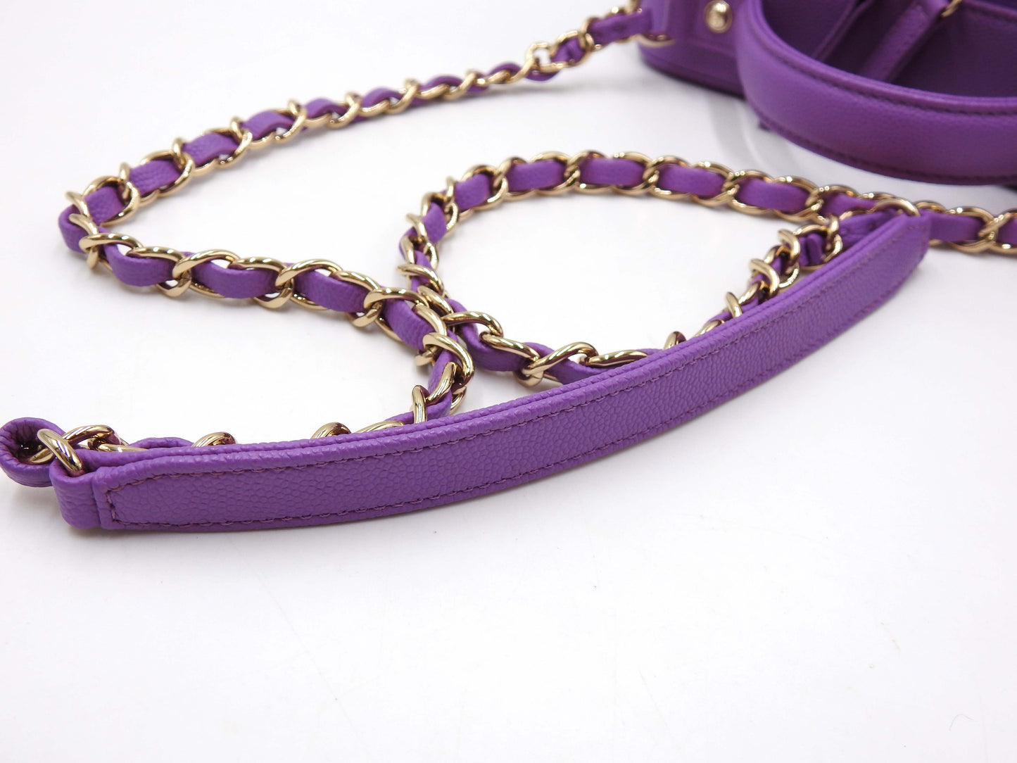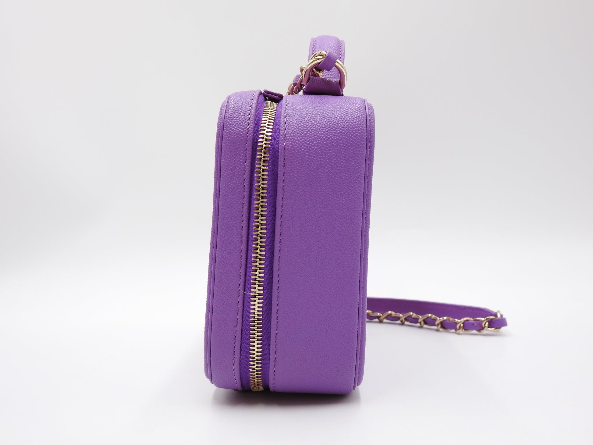 CHANEL CC Filigree Matelasse Shoulder Vanity Bag Caviarskin Purple A93343