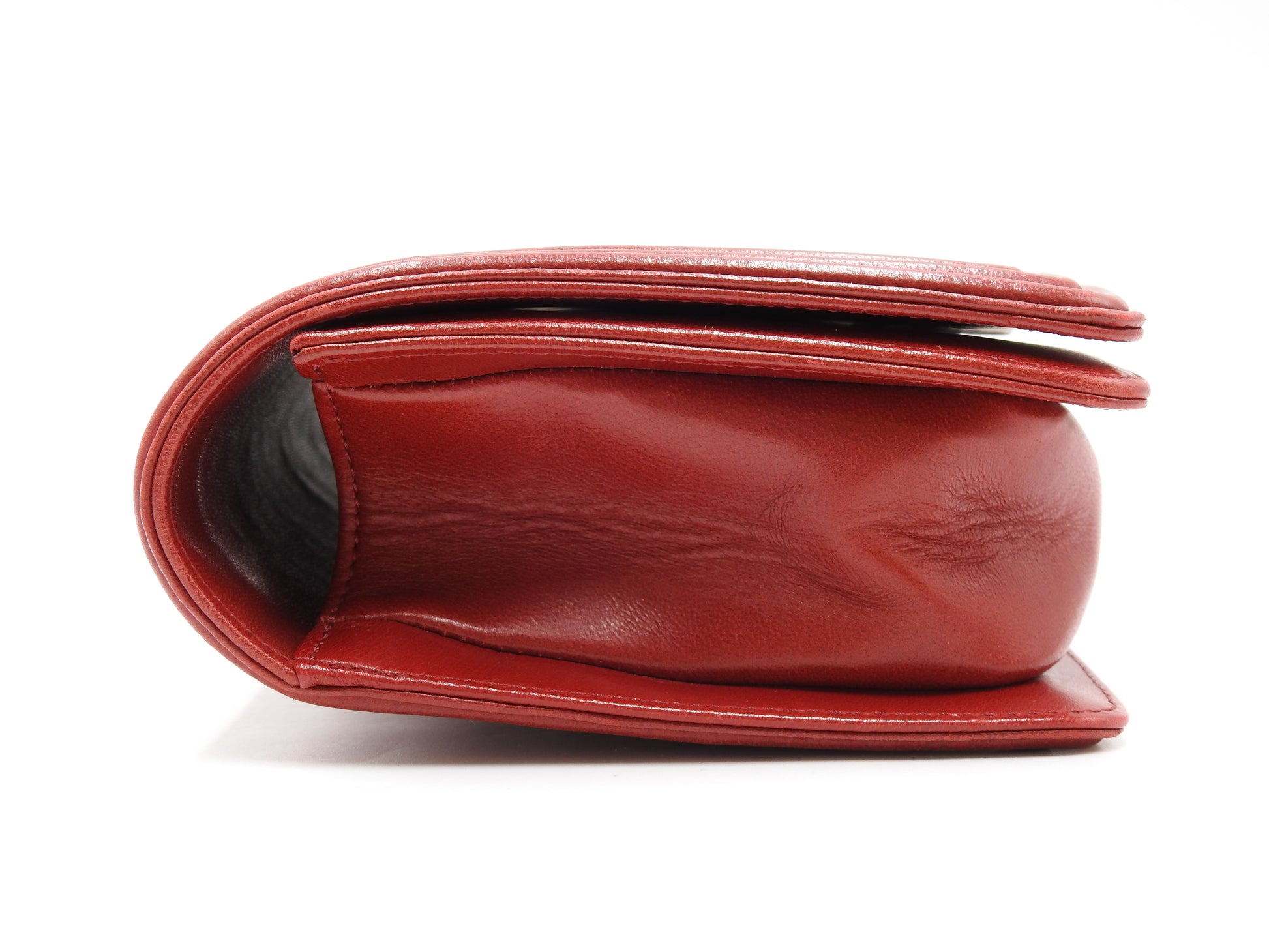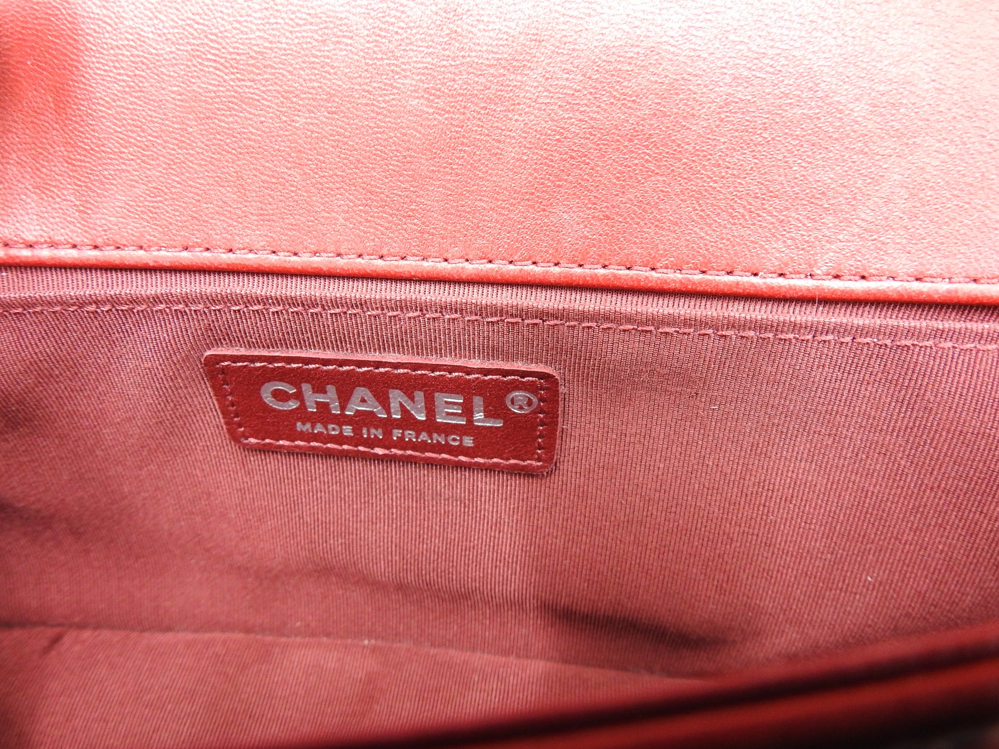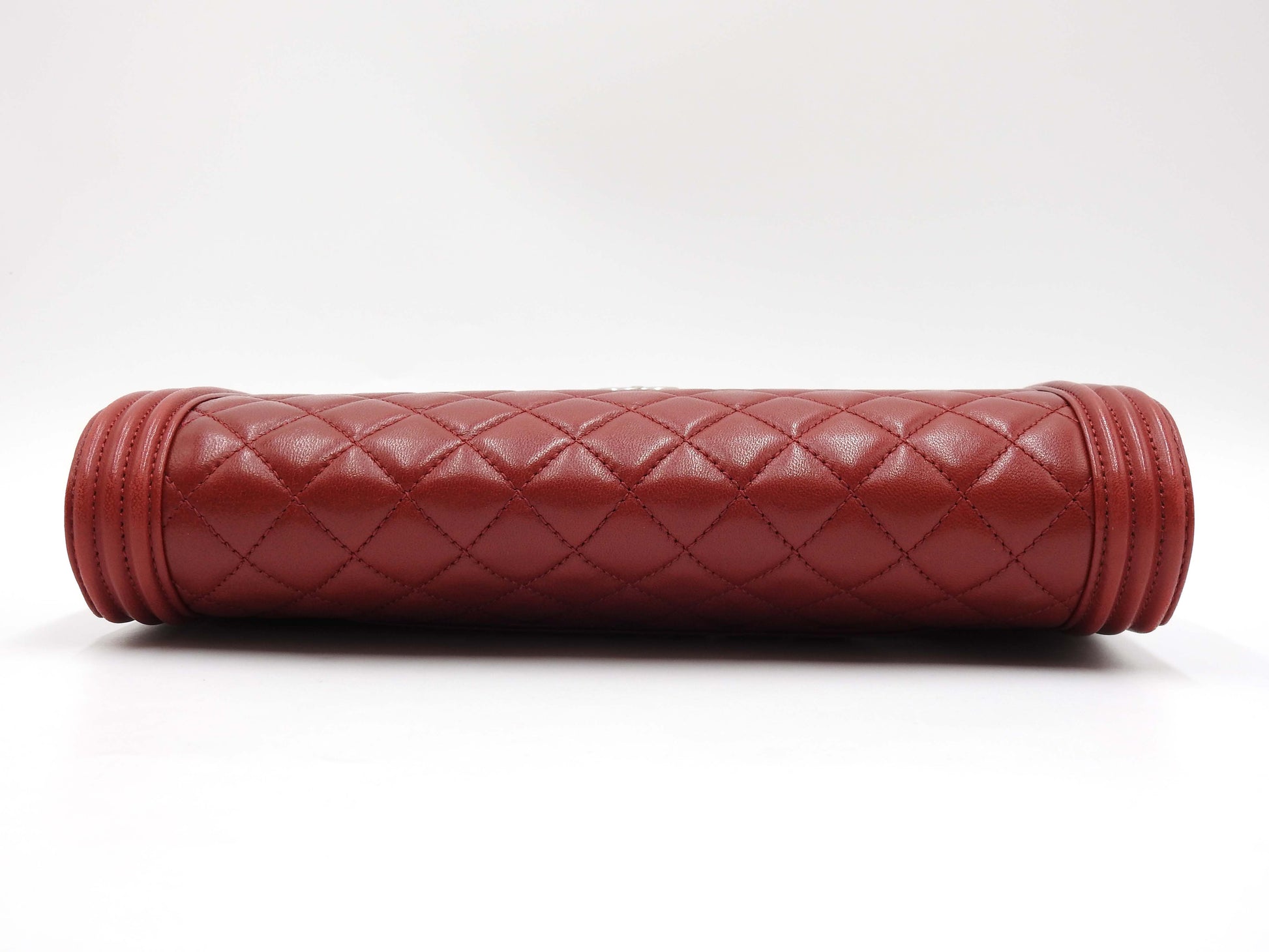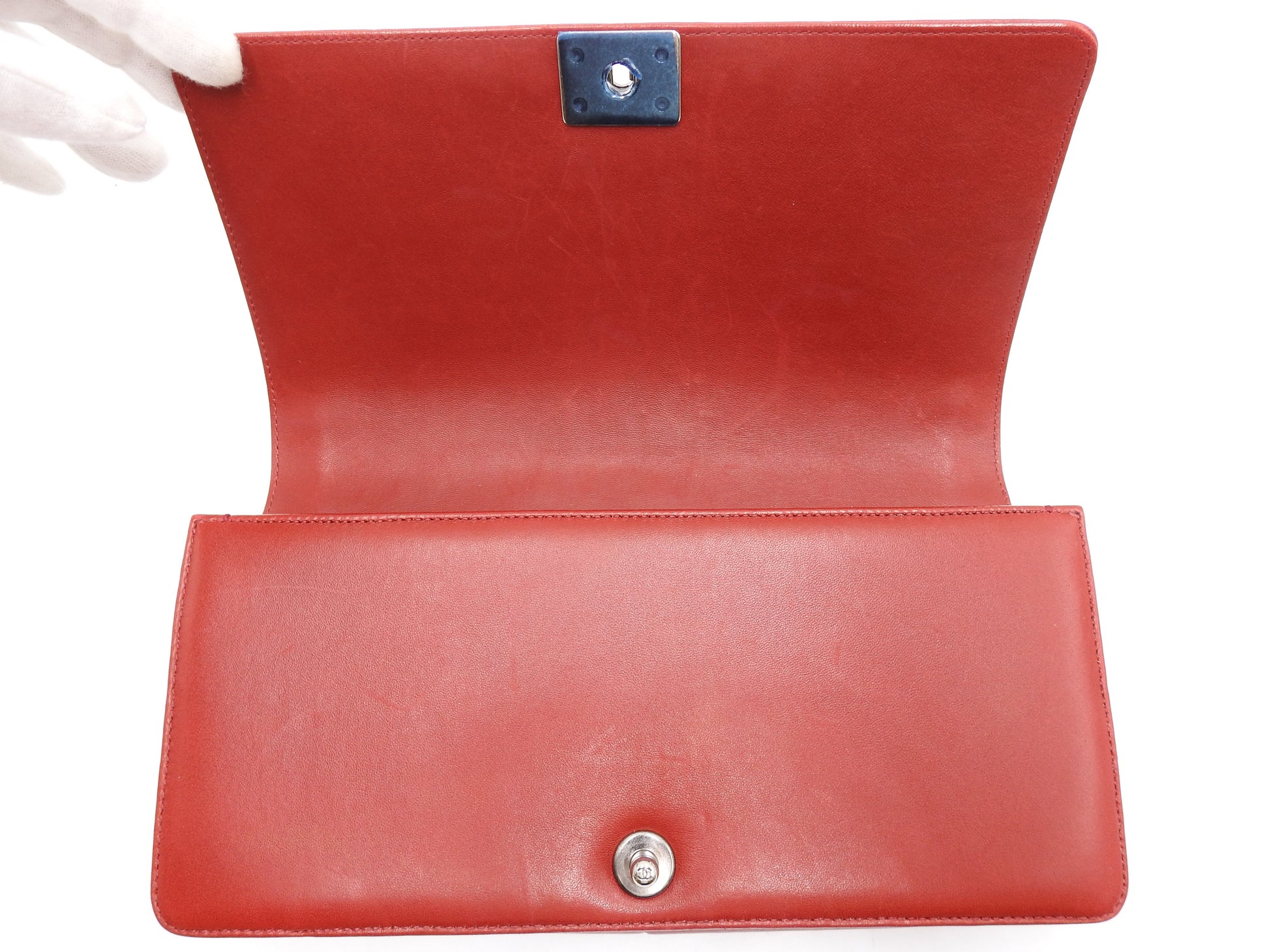 CHANEL CC Matelasse Boy Flap Clutch Second Bag Lambskin Leather Red