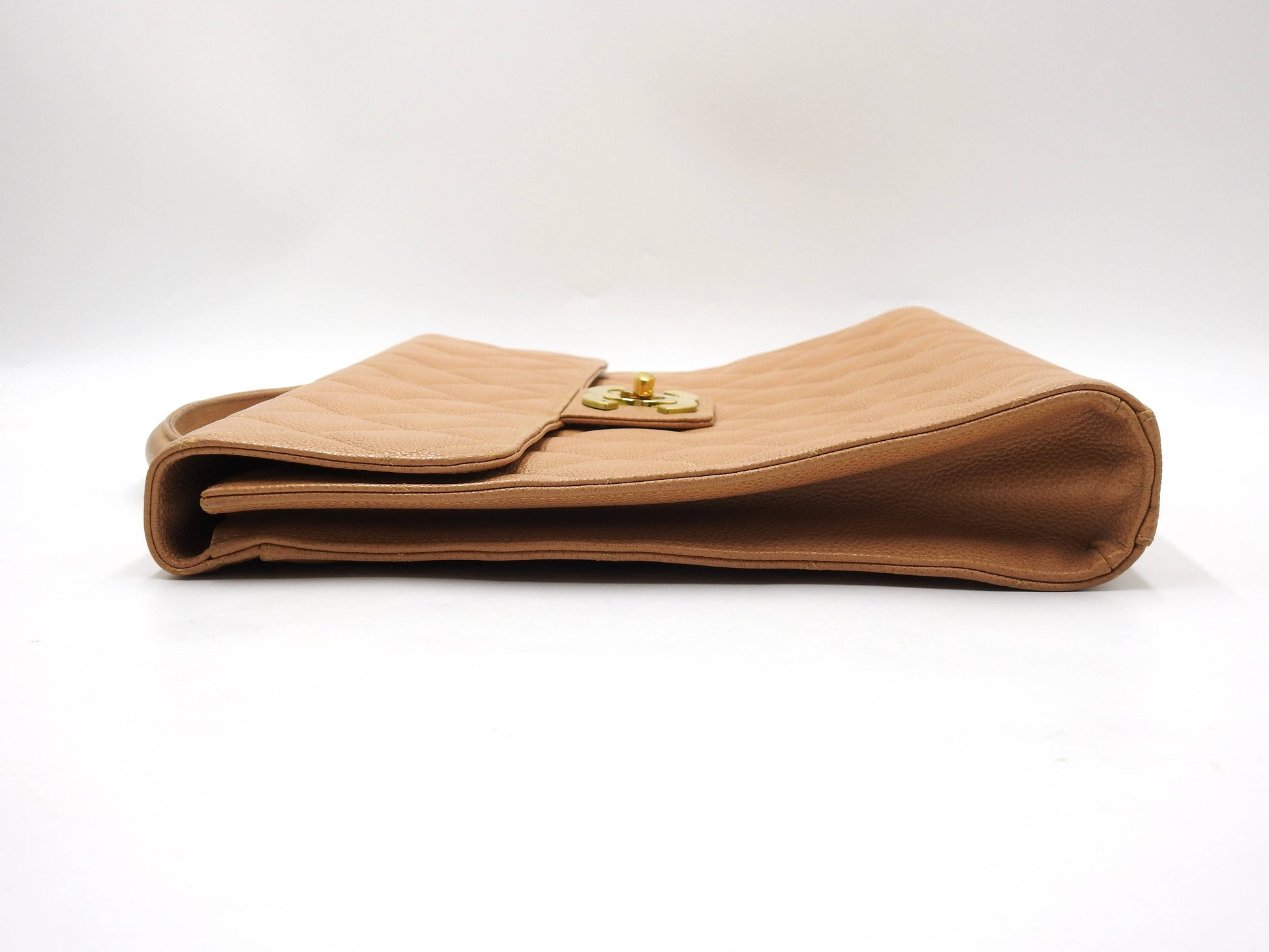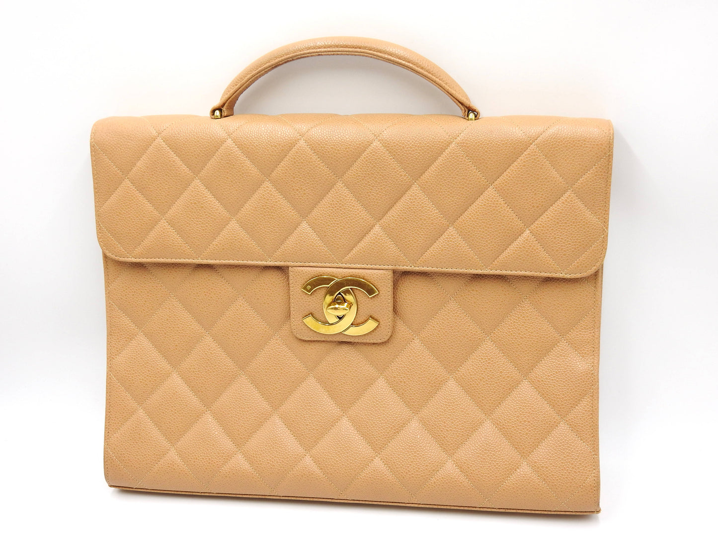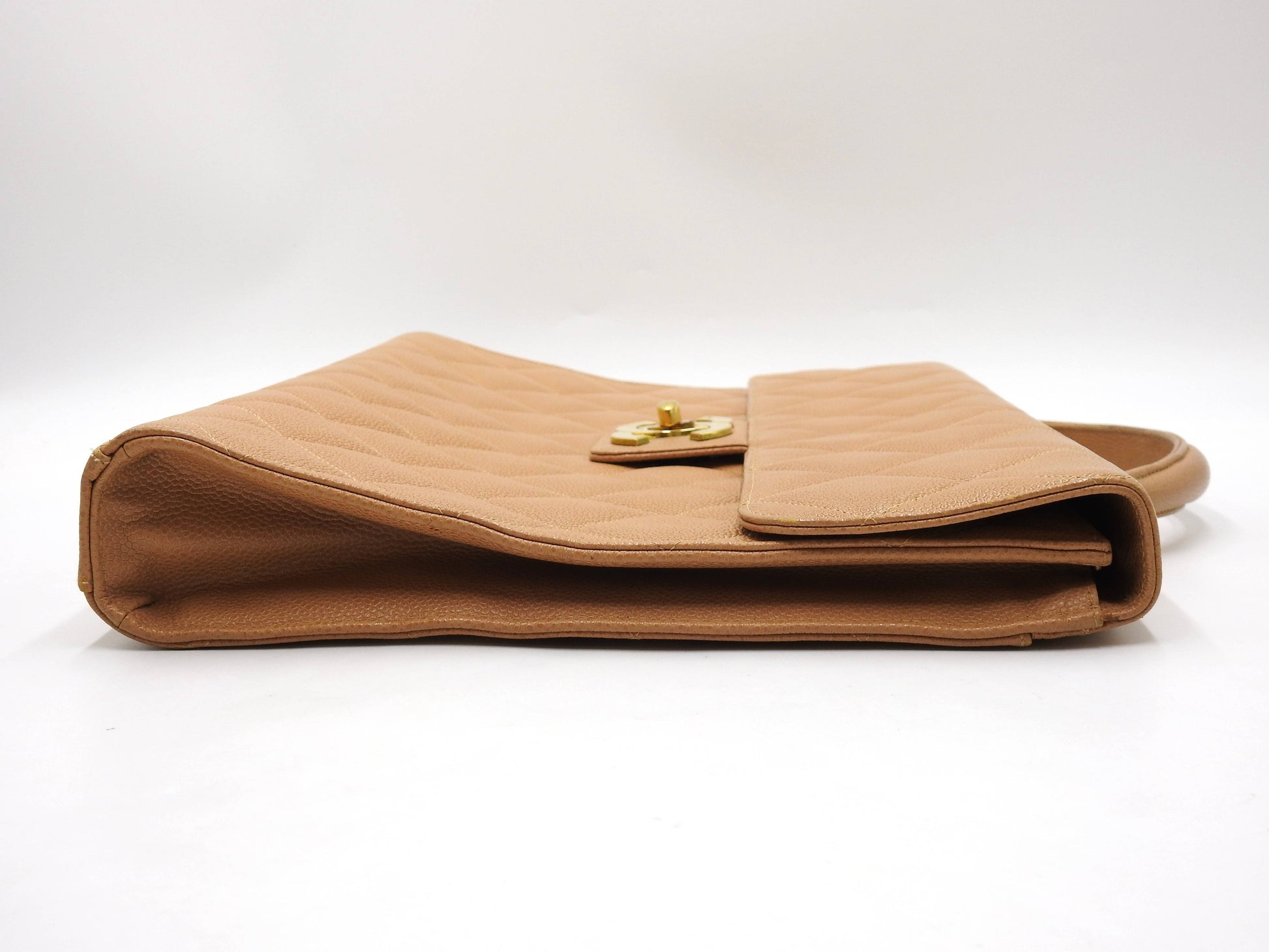 CHANEL CC Matelasse Briefcase Business Bag Caviarskin Leather Beige Gold
