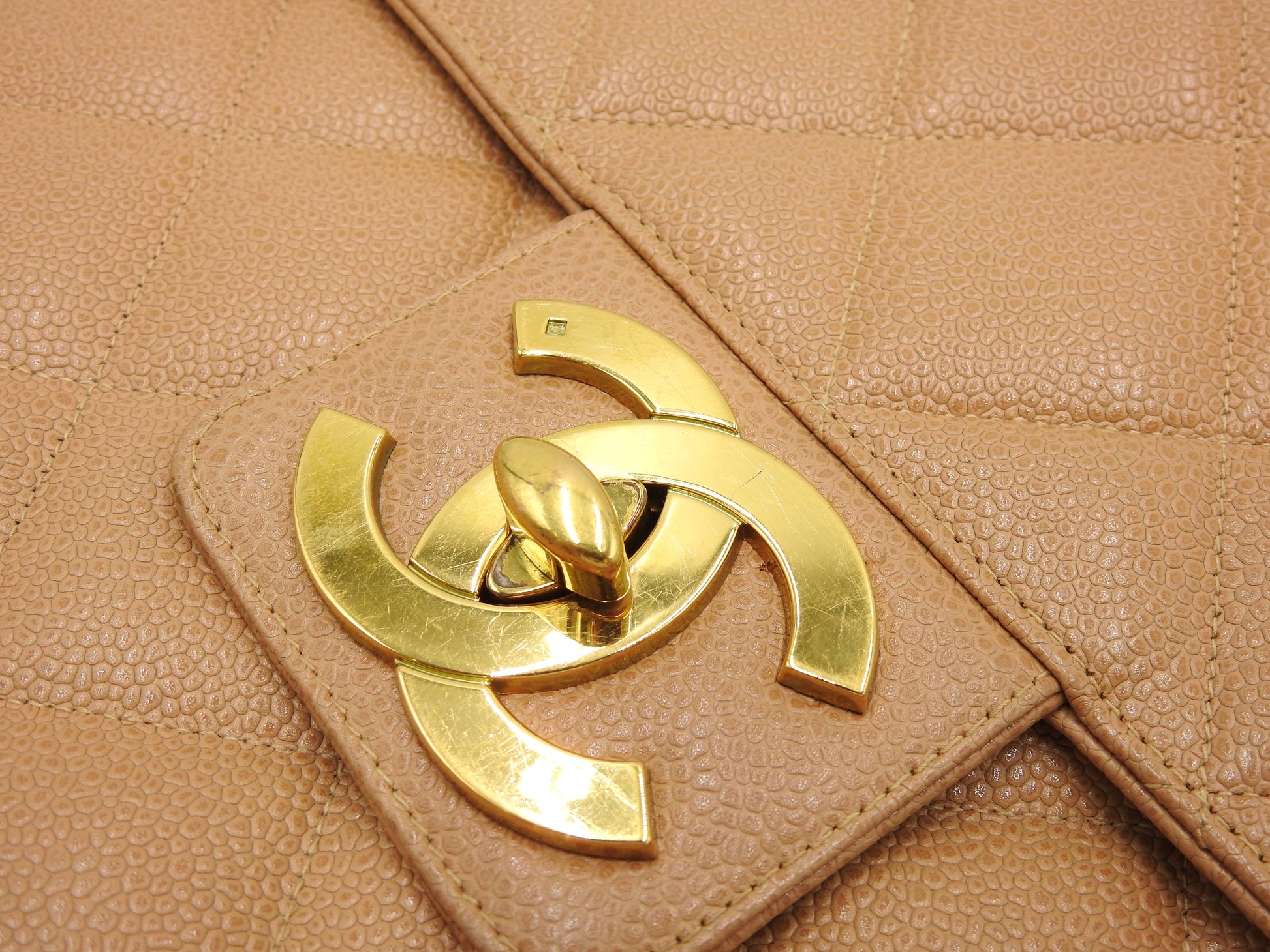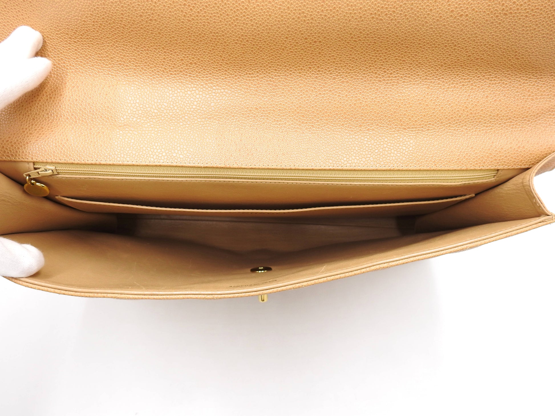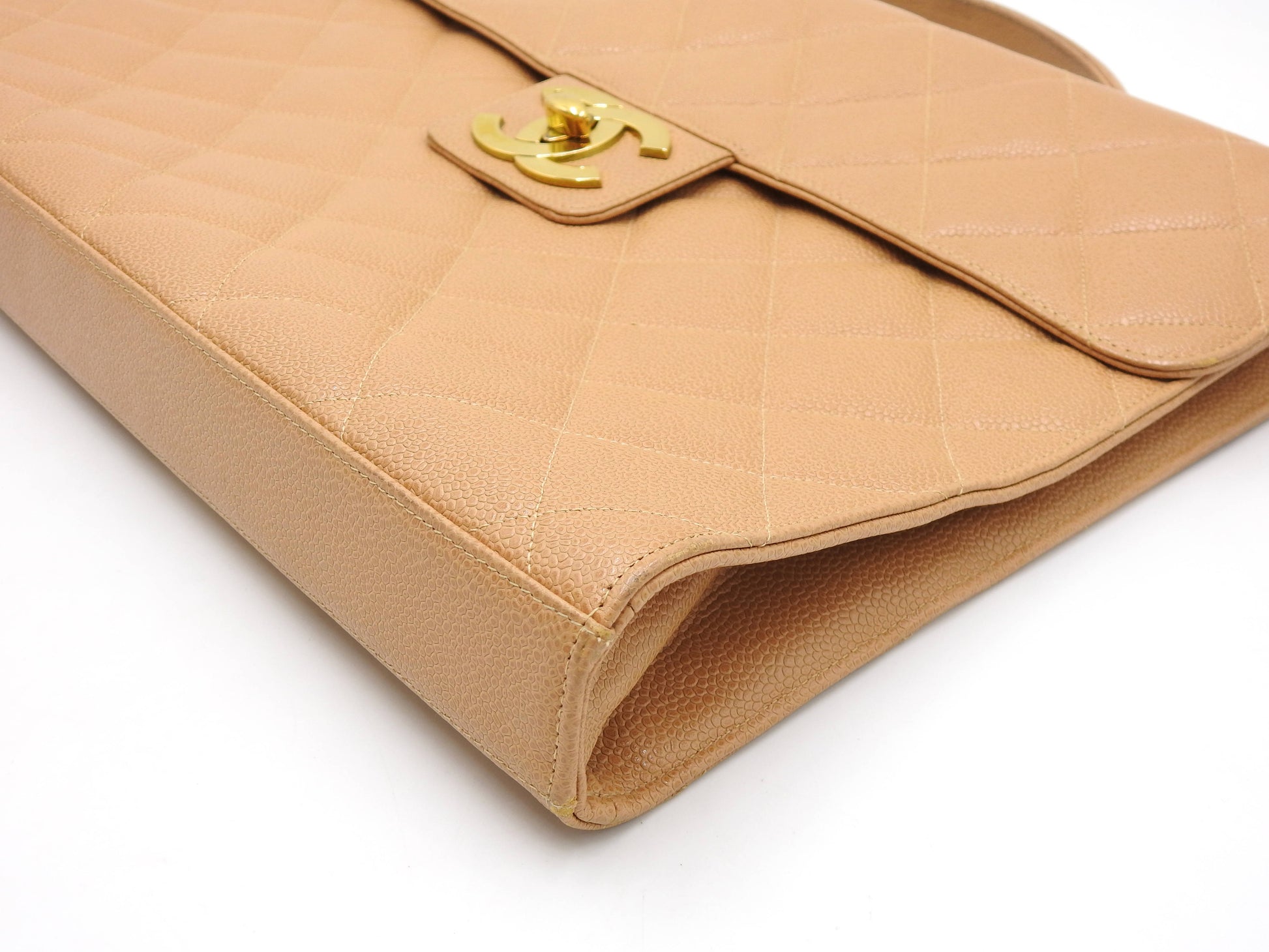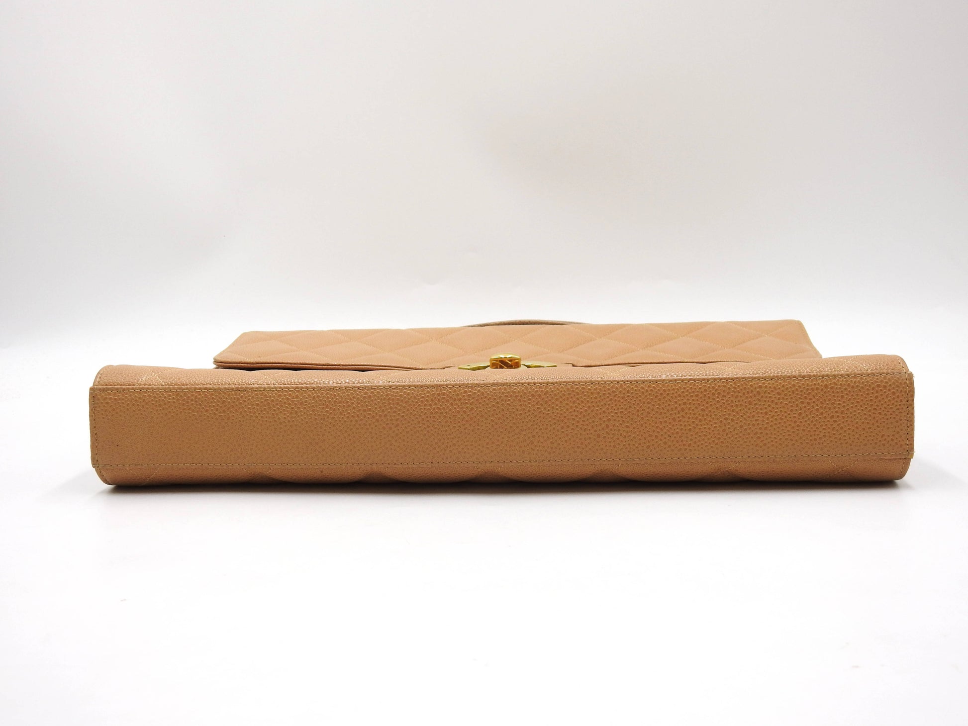 CHANEL CC Matelasse Briefcase Business Bag Caviarskin Leather Beige Gold