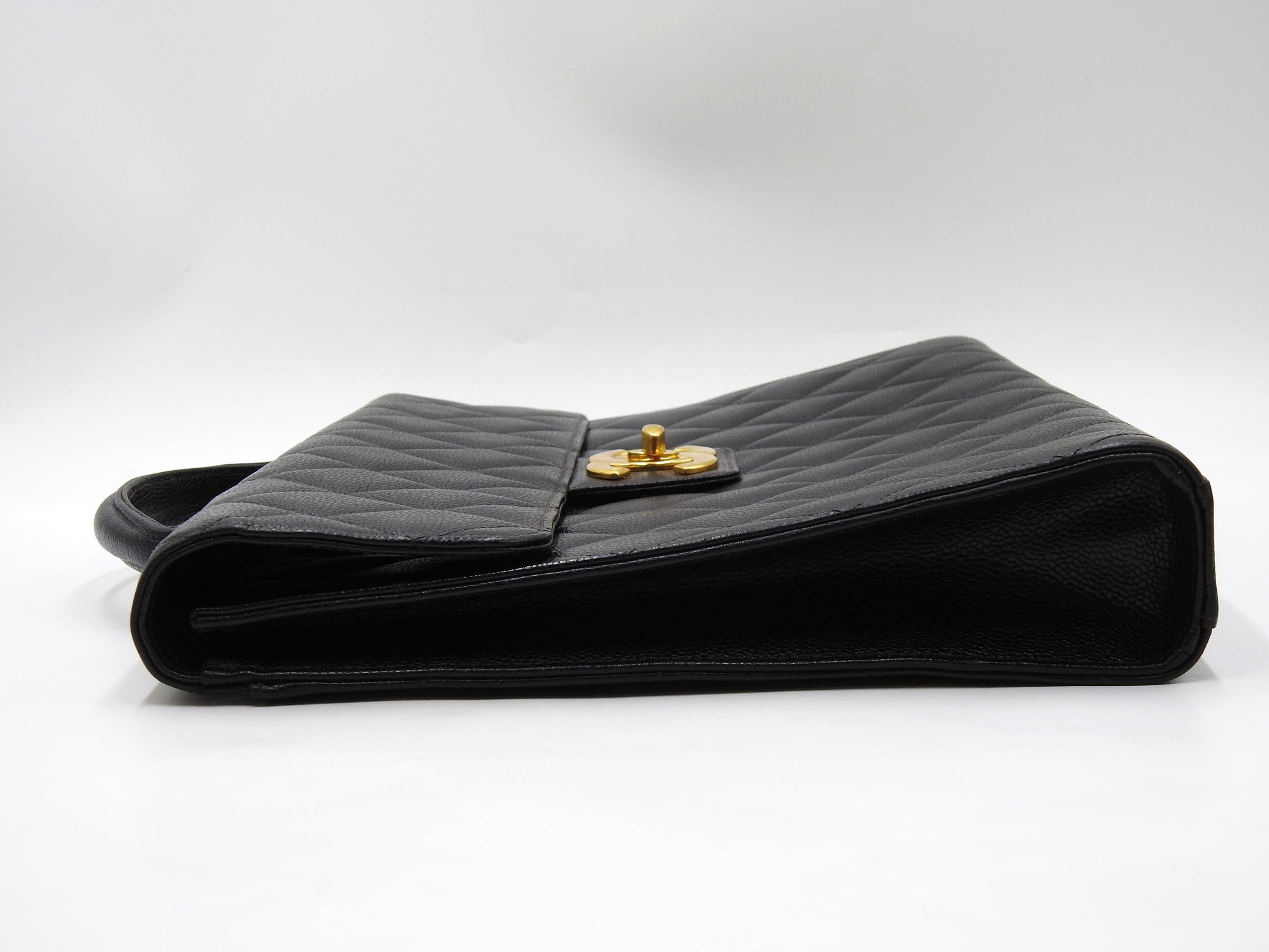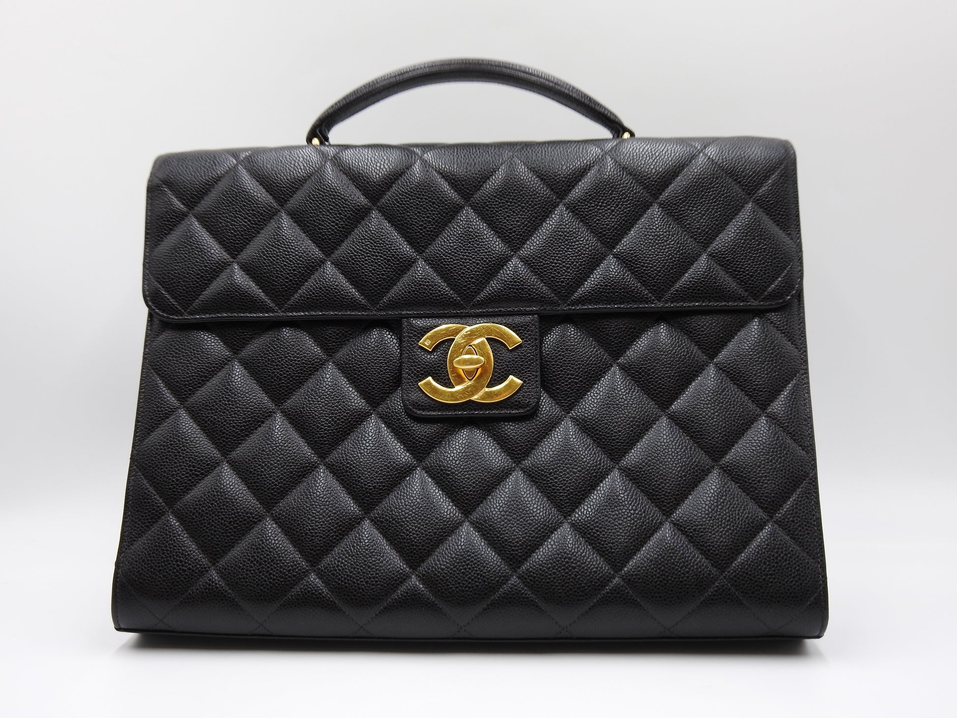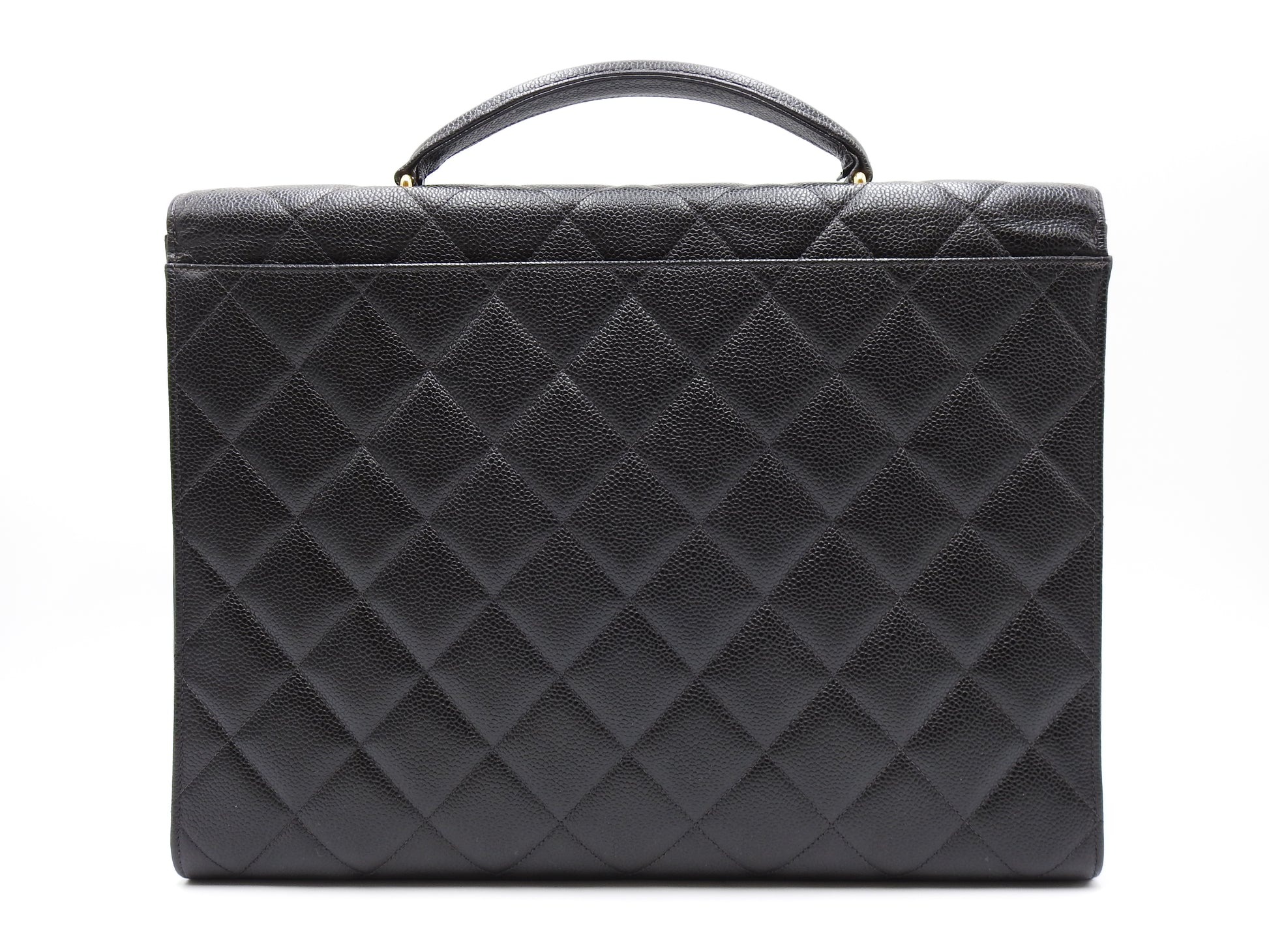 CHANEL CC Matelasse Briefcase Business Bag Caviarskin Leather Black Gold