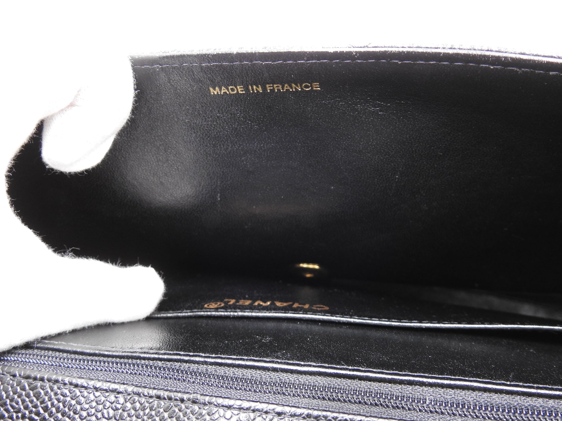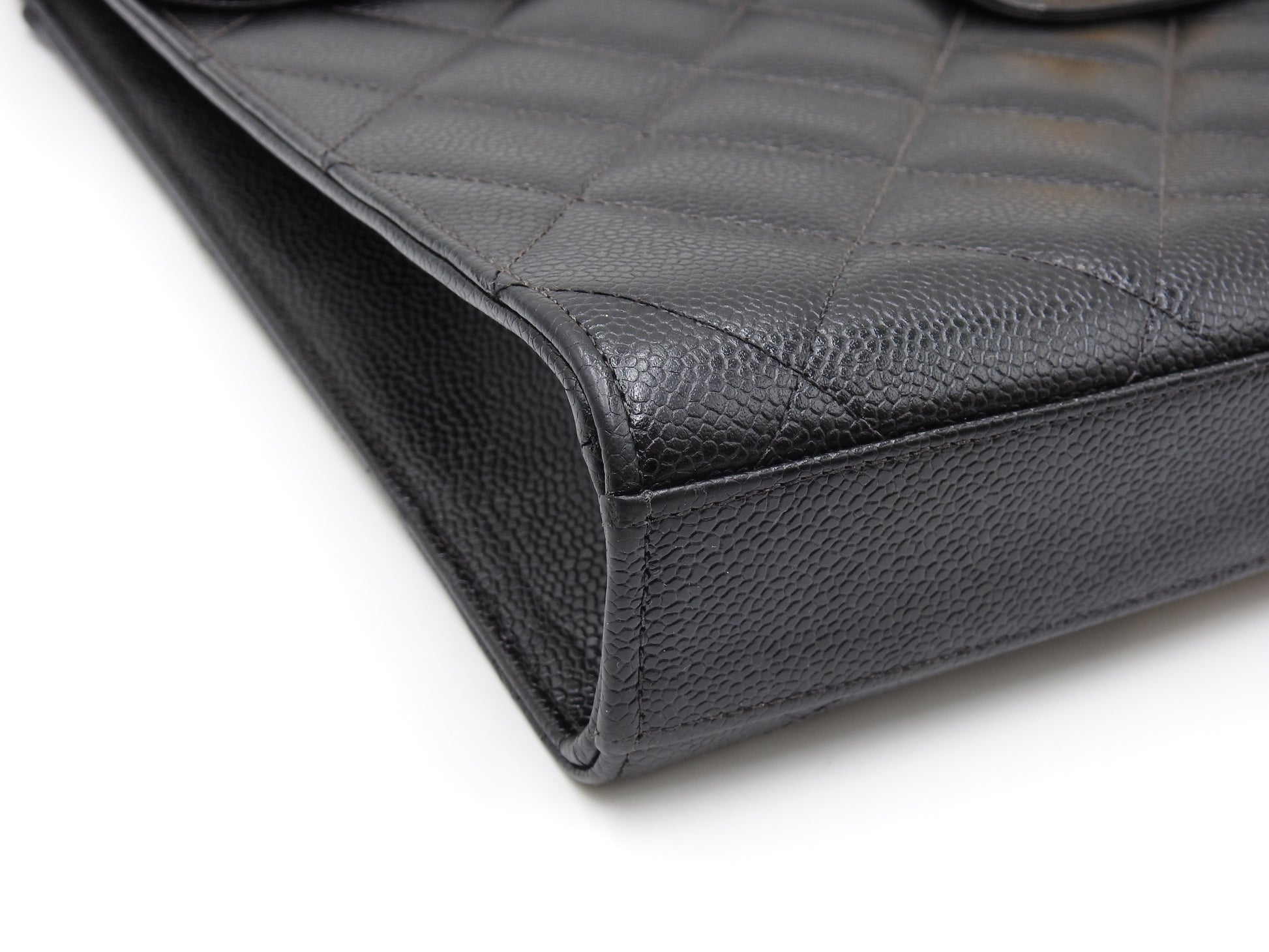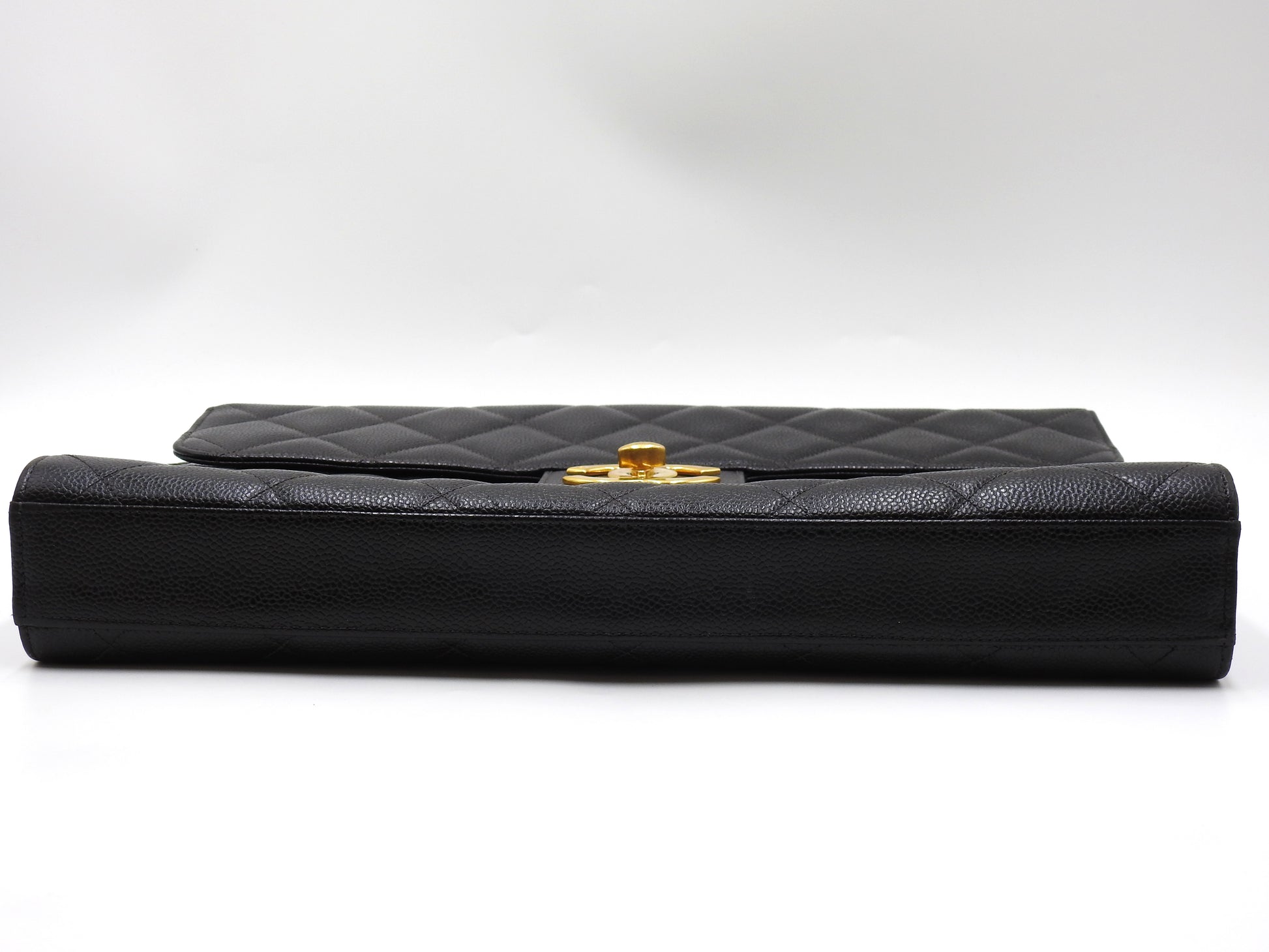 CHANEL CC Matelasse Briefcase Business Bag Caviarskin Leather Black Gold