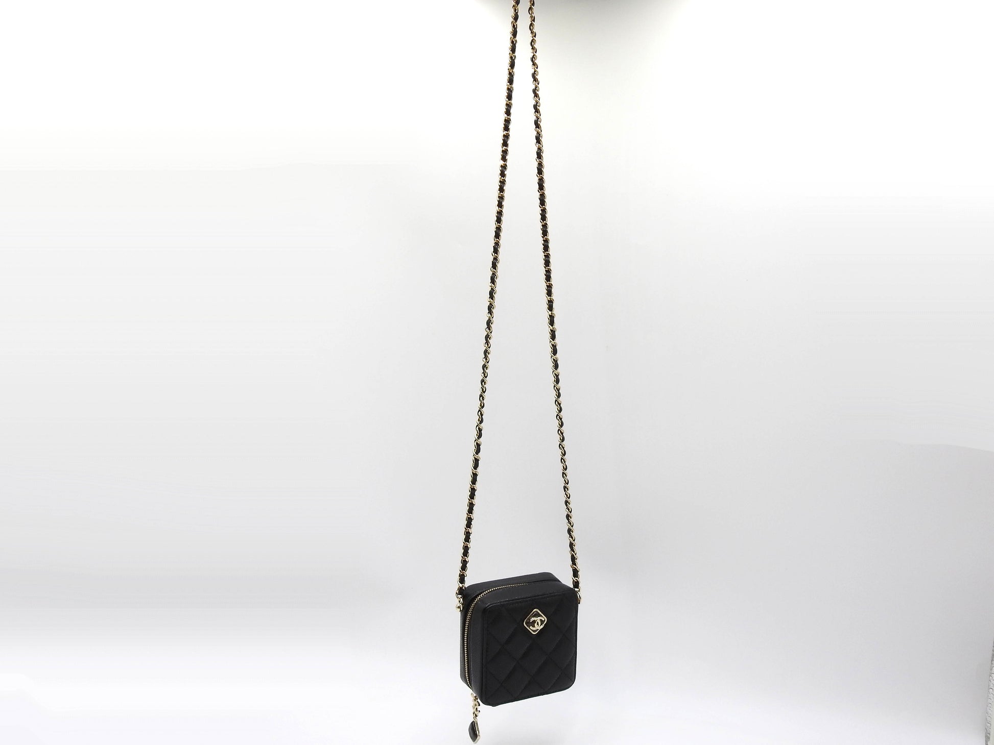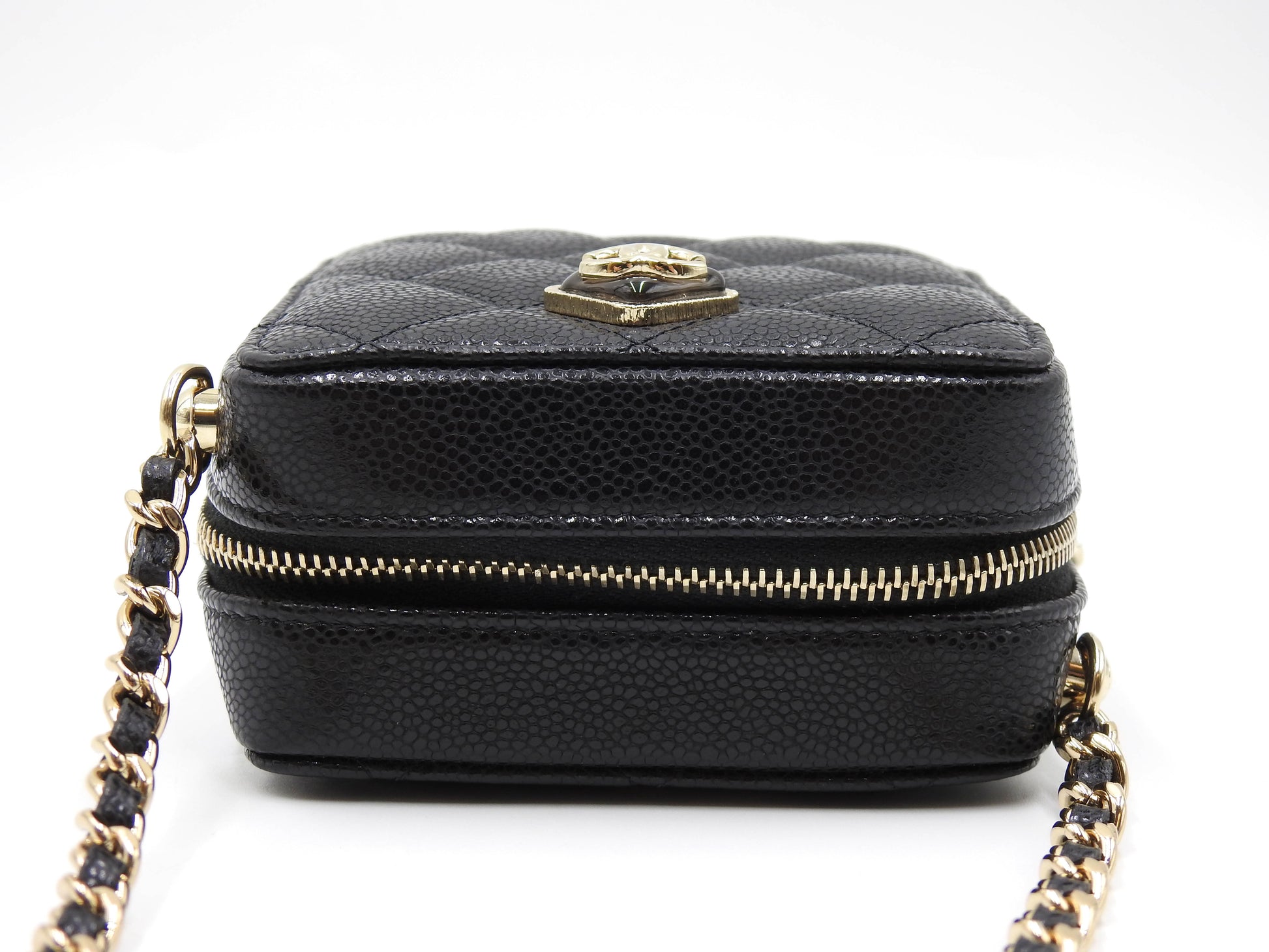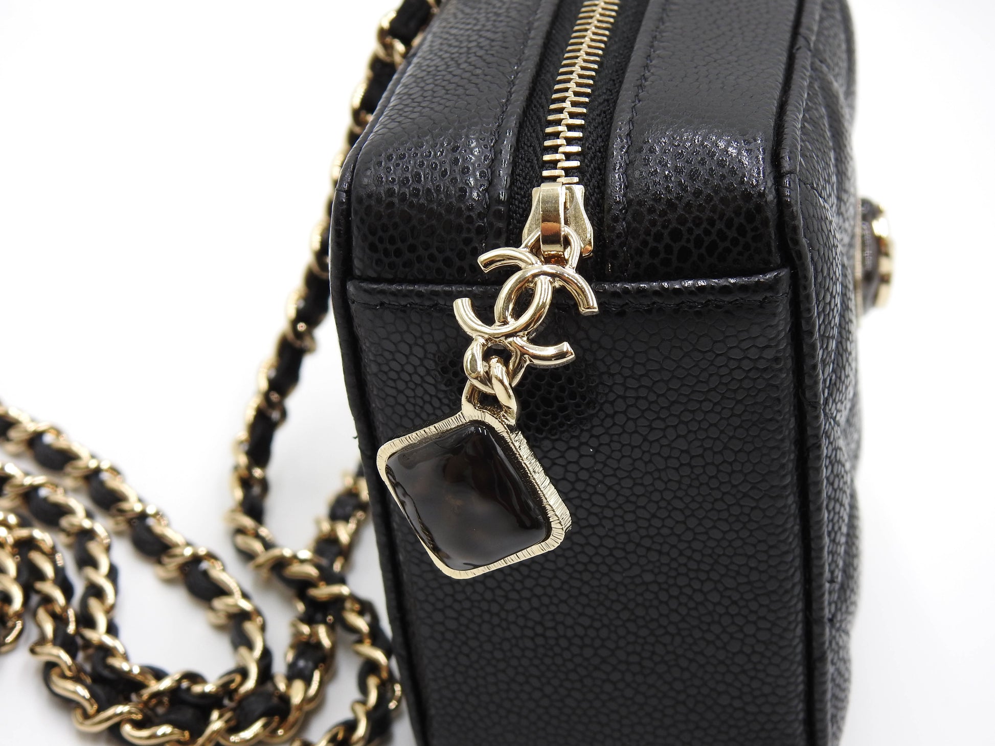 CHANEL CC Matelasse Chain Clutch Shoulder Bag Caviarskin Black Gold AP2852