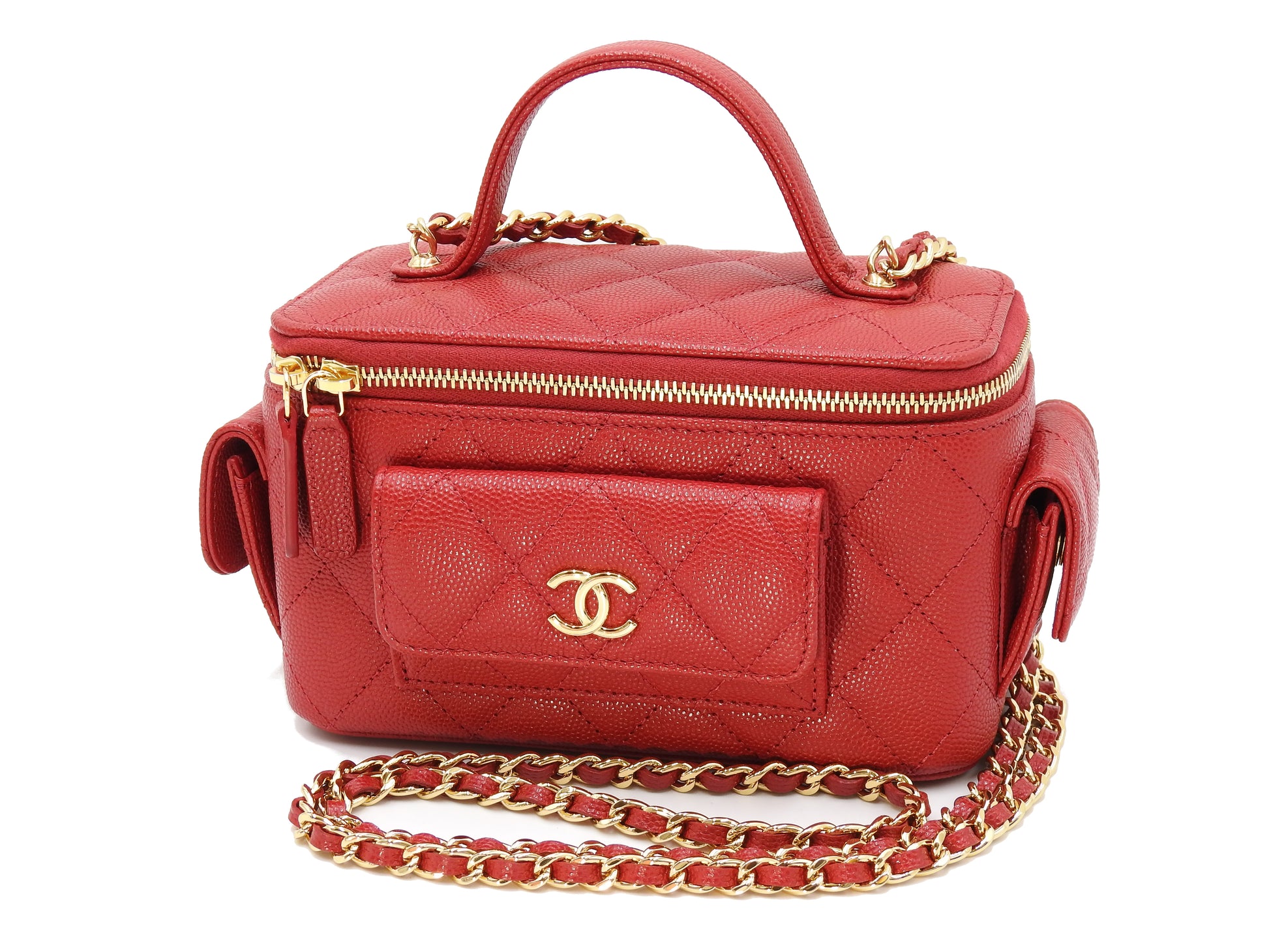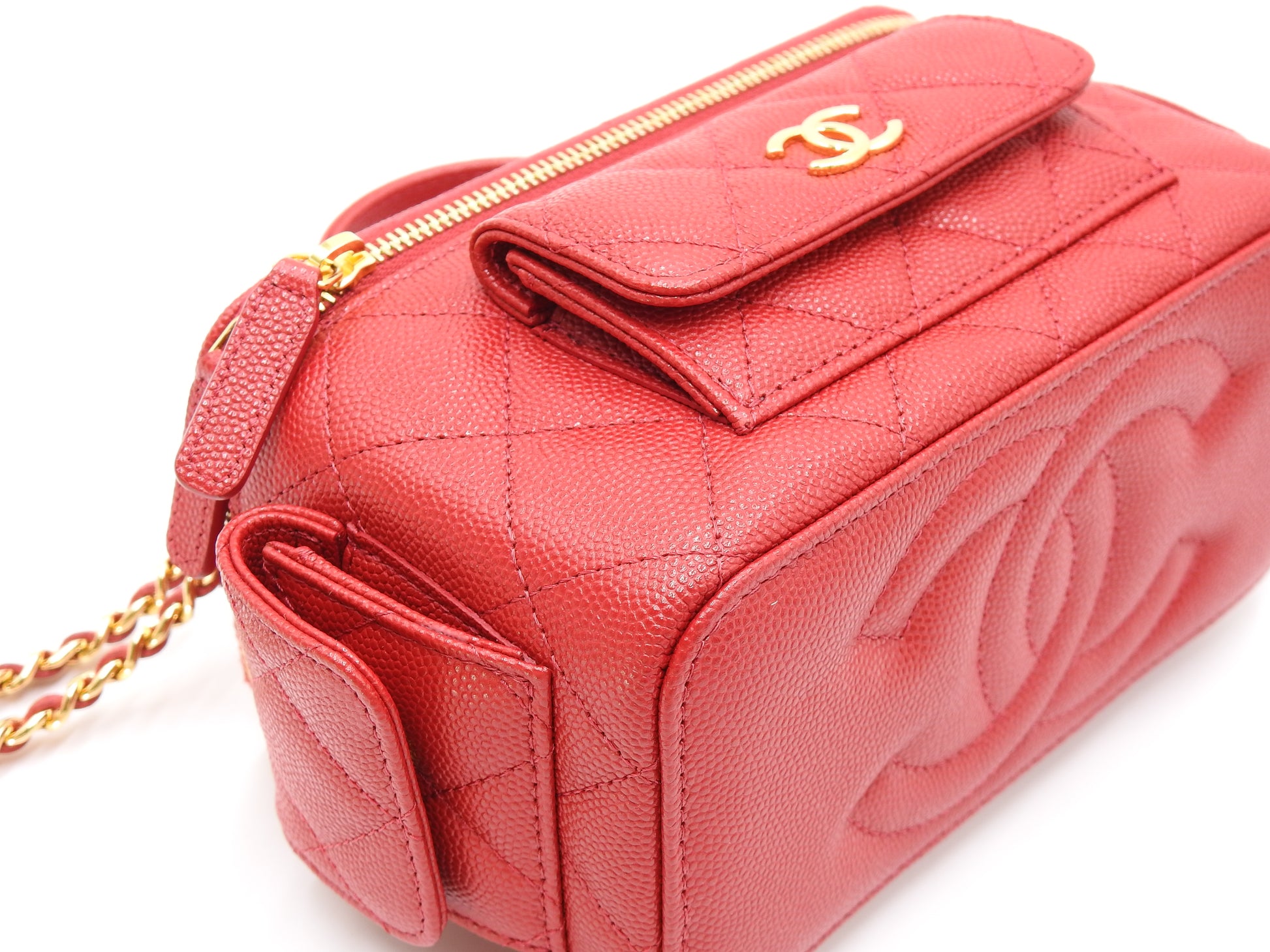 CHANEL CC Matelasse Top Handle 2way Chain Vanity Bag Caviarskin Red AP3017