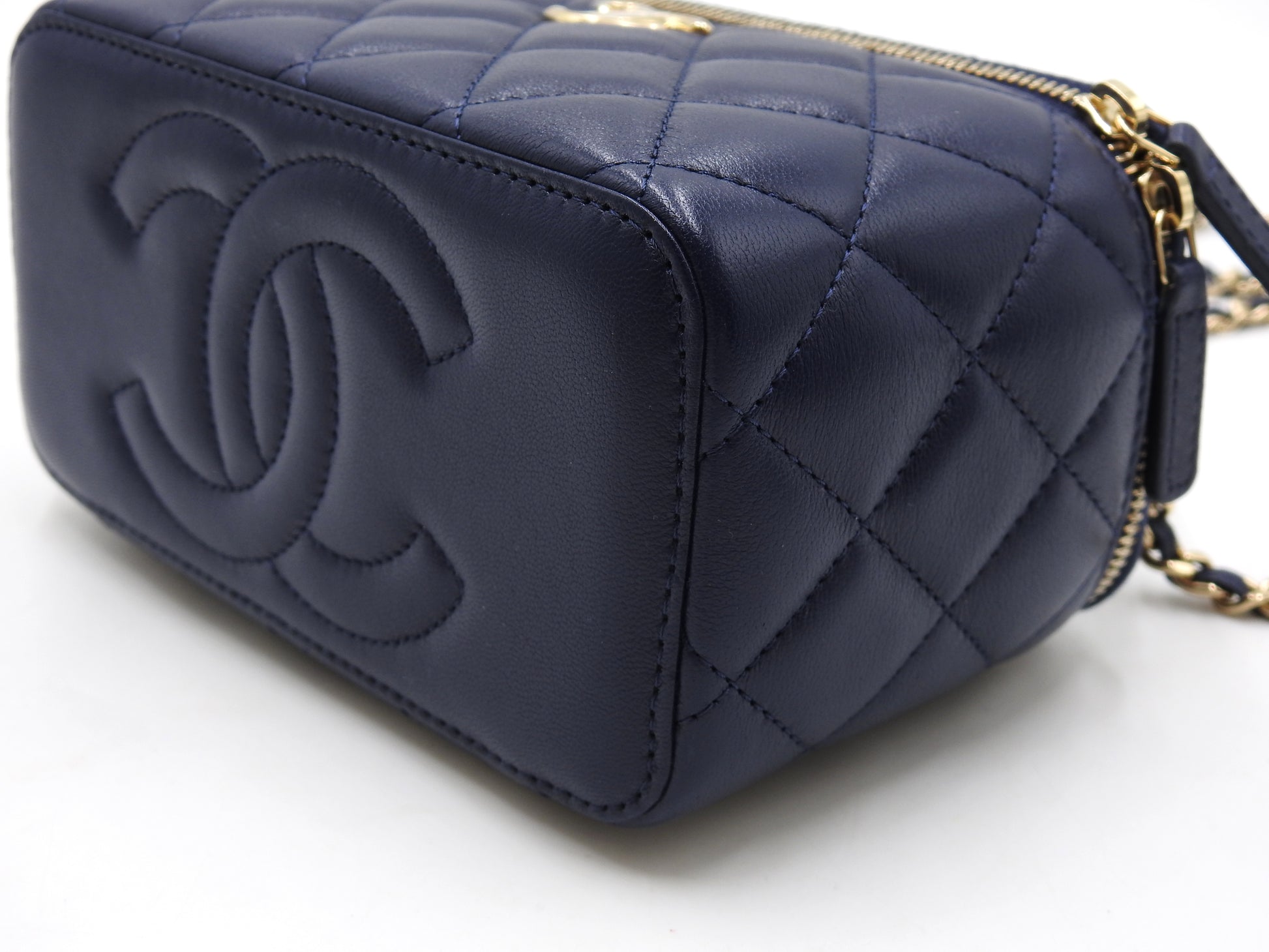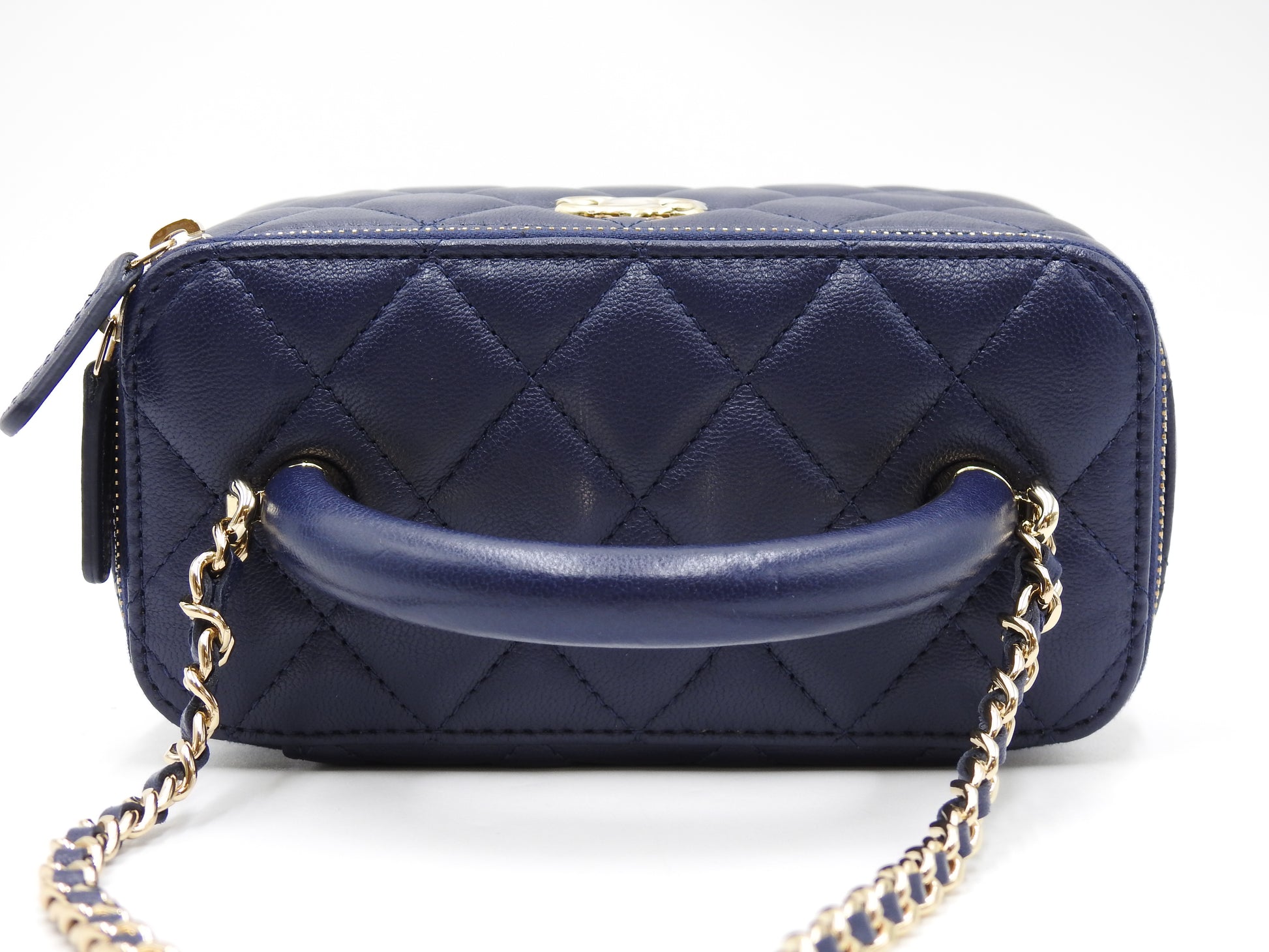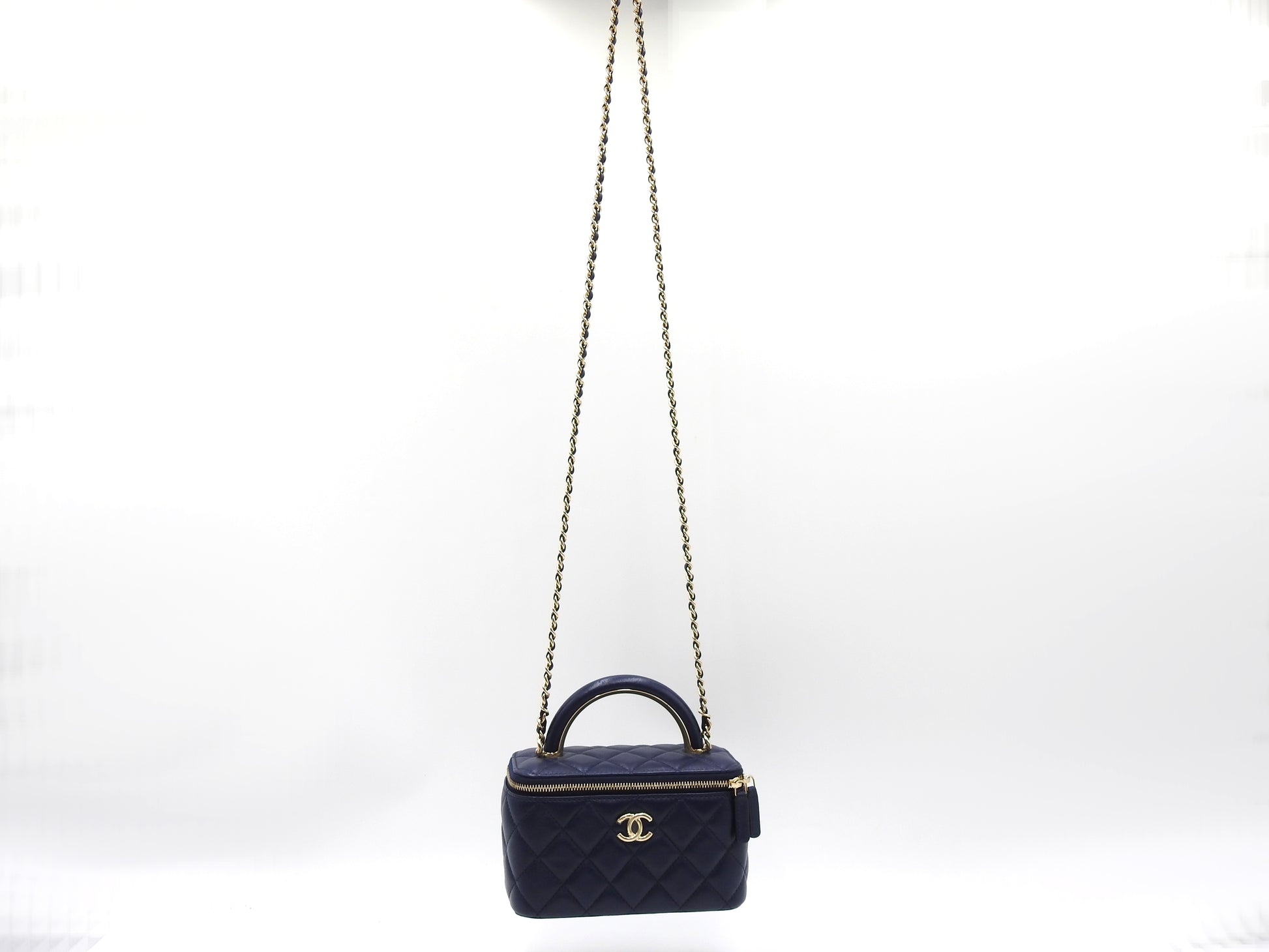 CHANEL CC Matelasse Top Handle 2way Chain Vanity Bag Lambskin Navy Gold