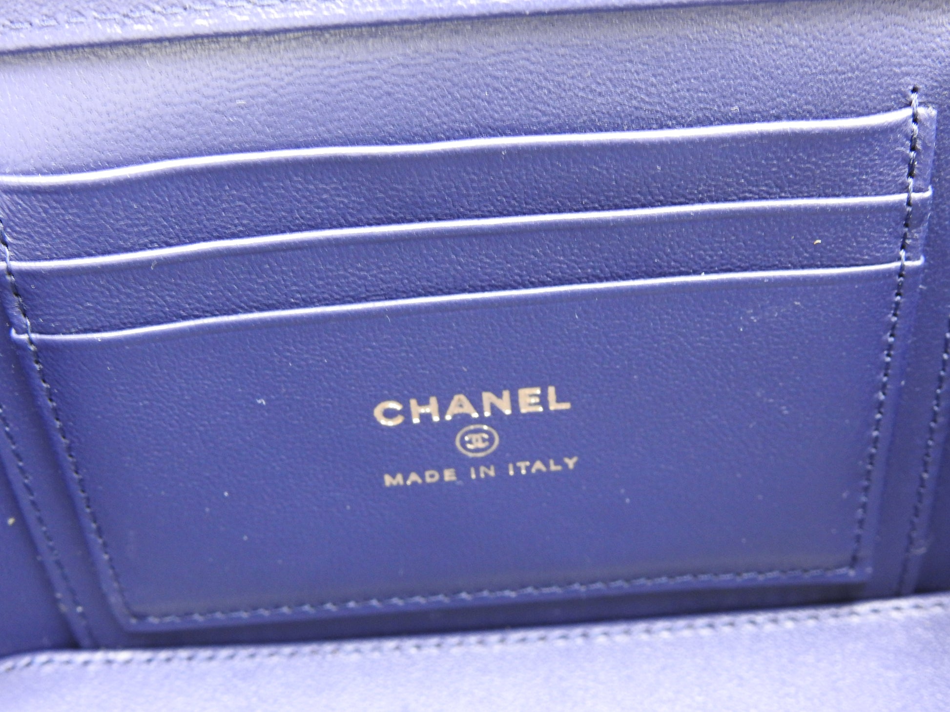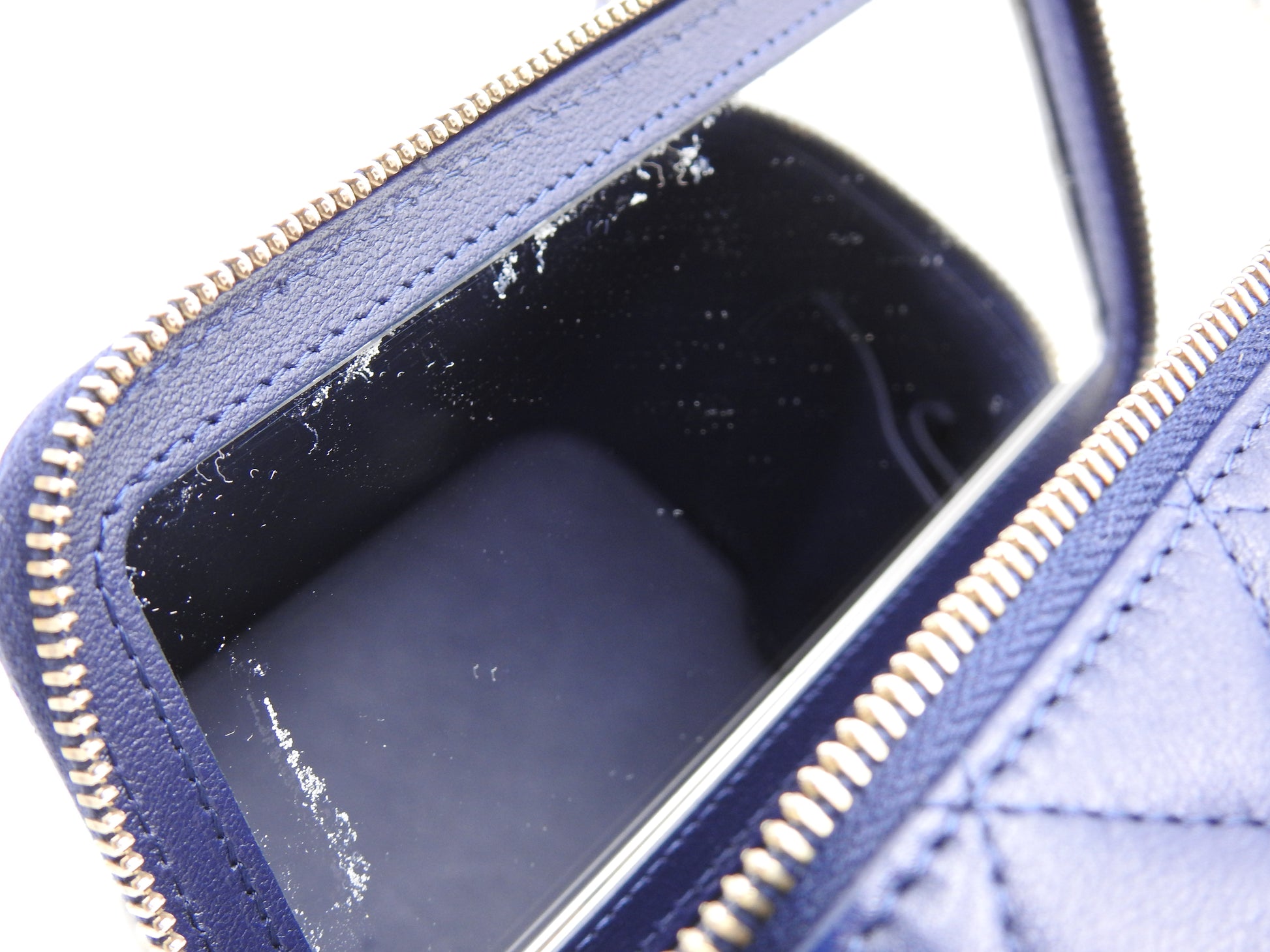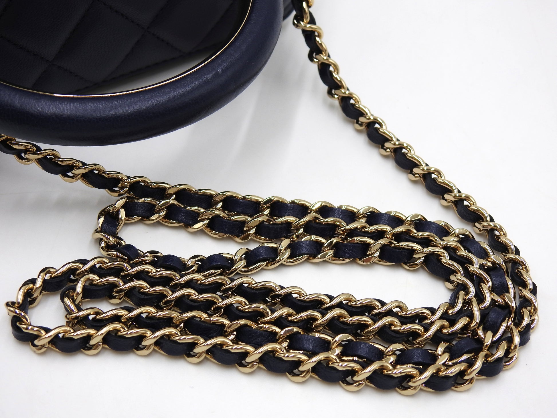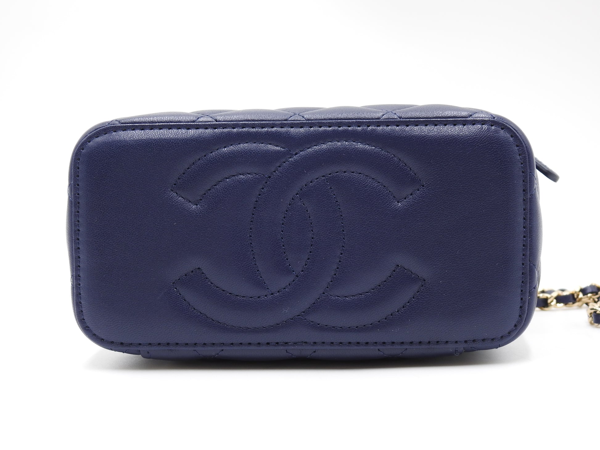 CHANEL CC Matelasse Top Handle 2way Chain Vanity Bag Lambskin Navy Gold