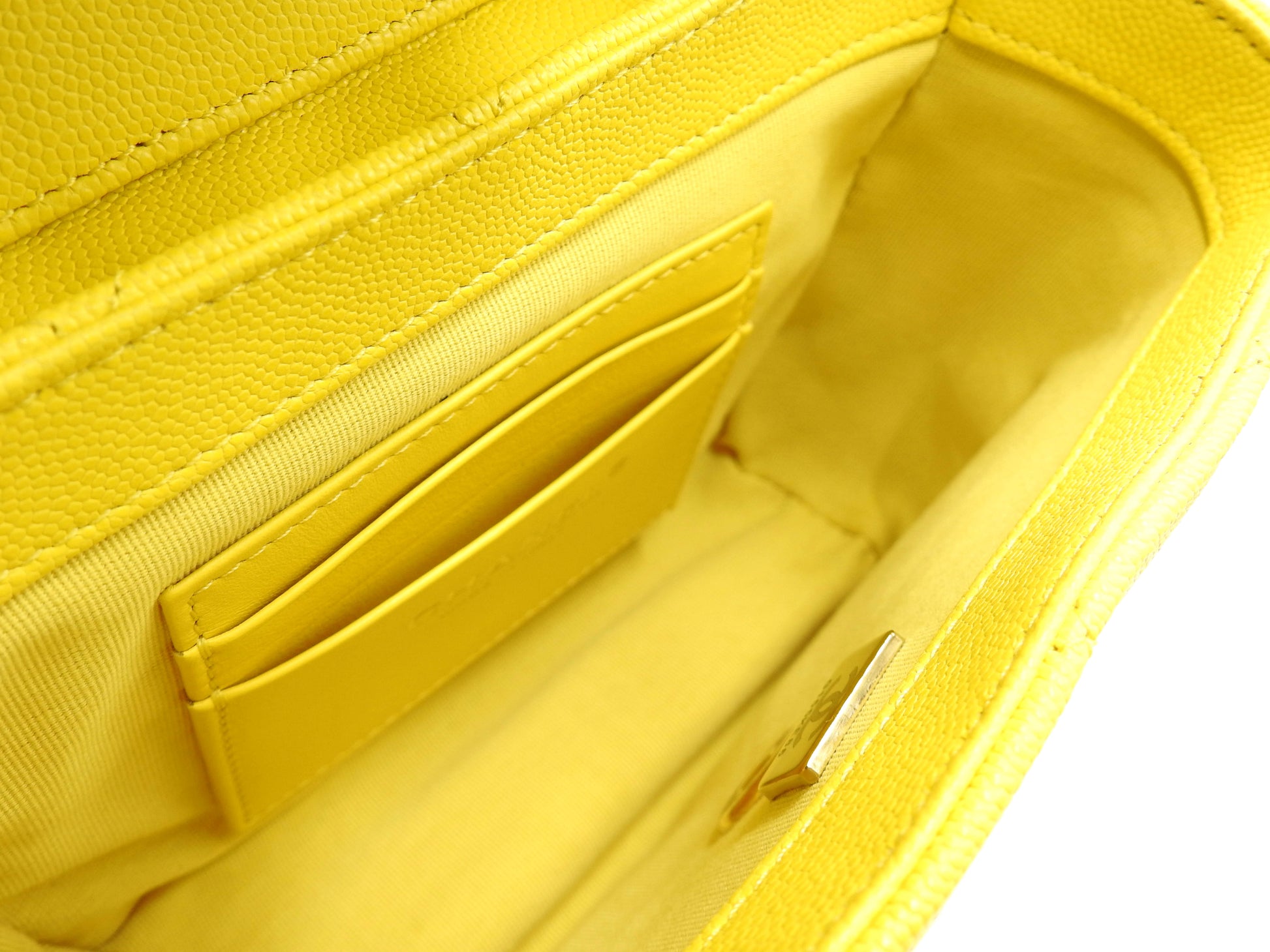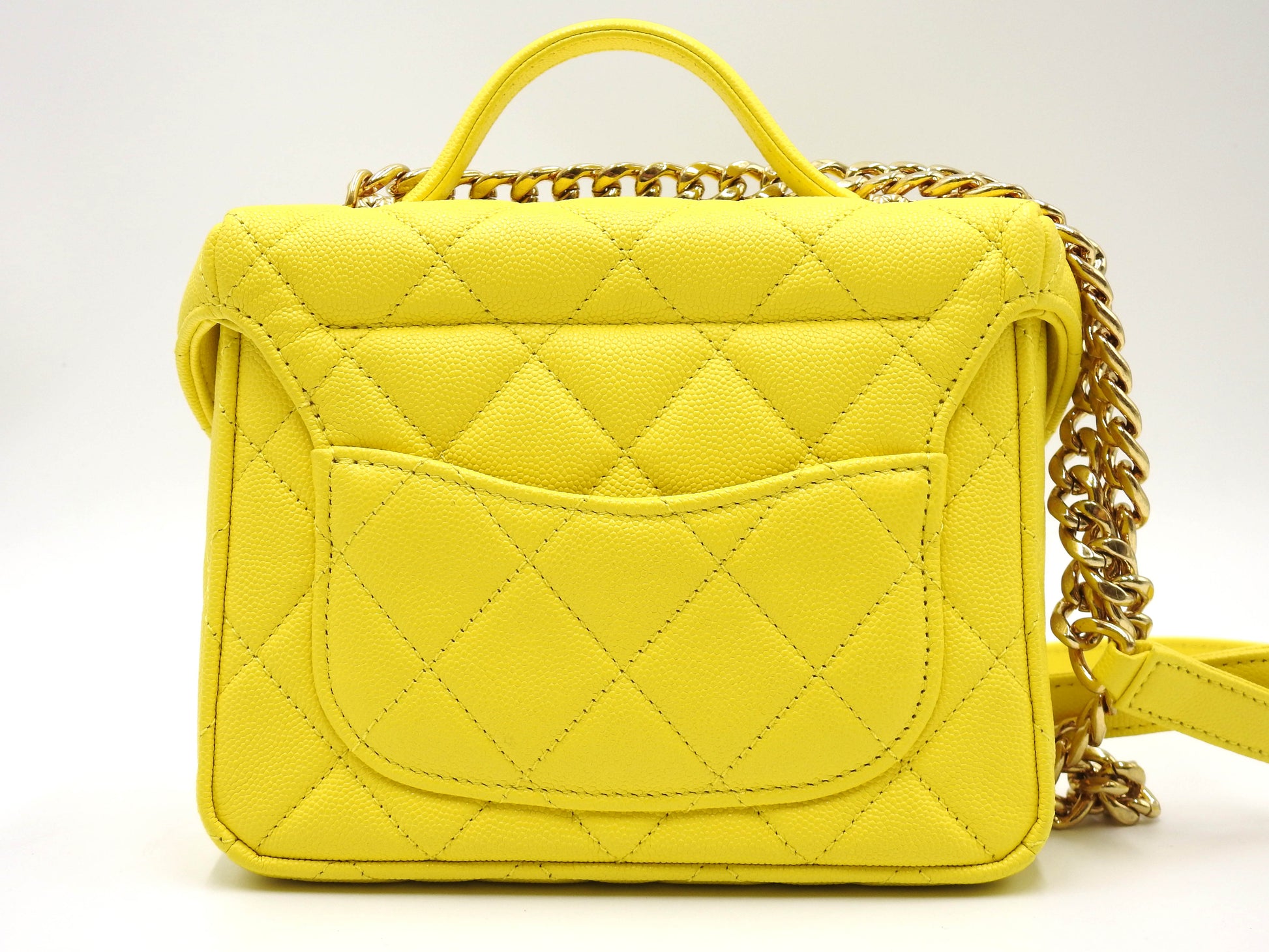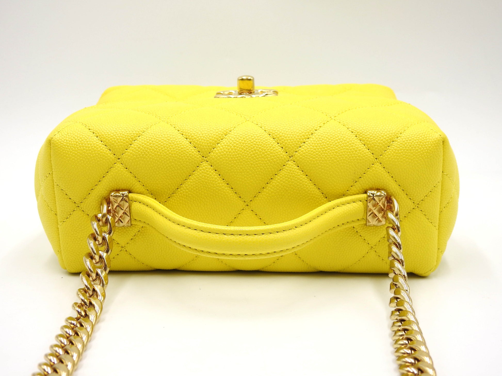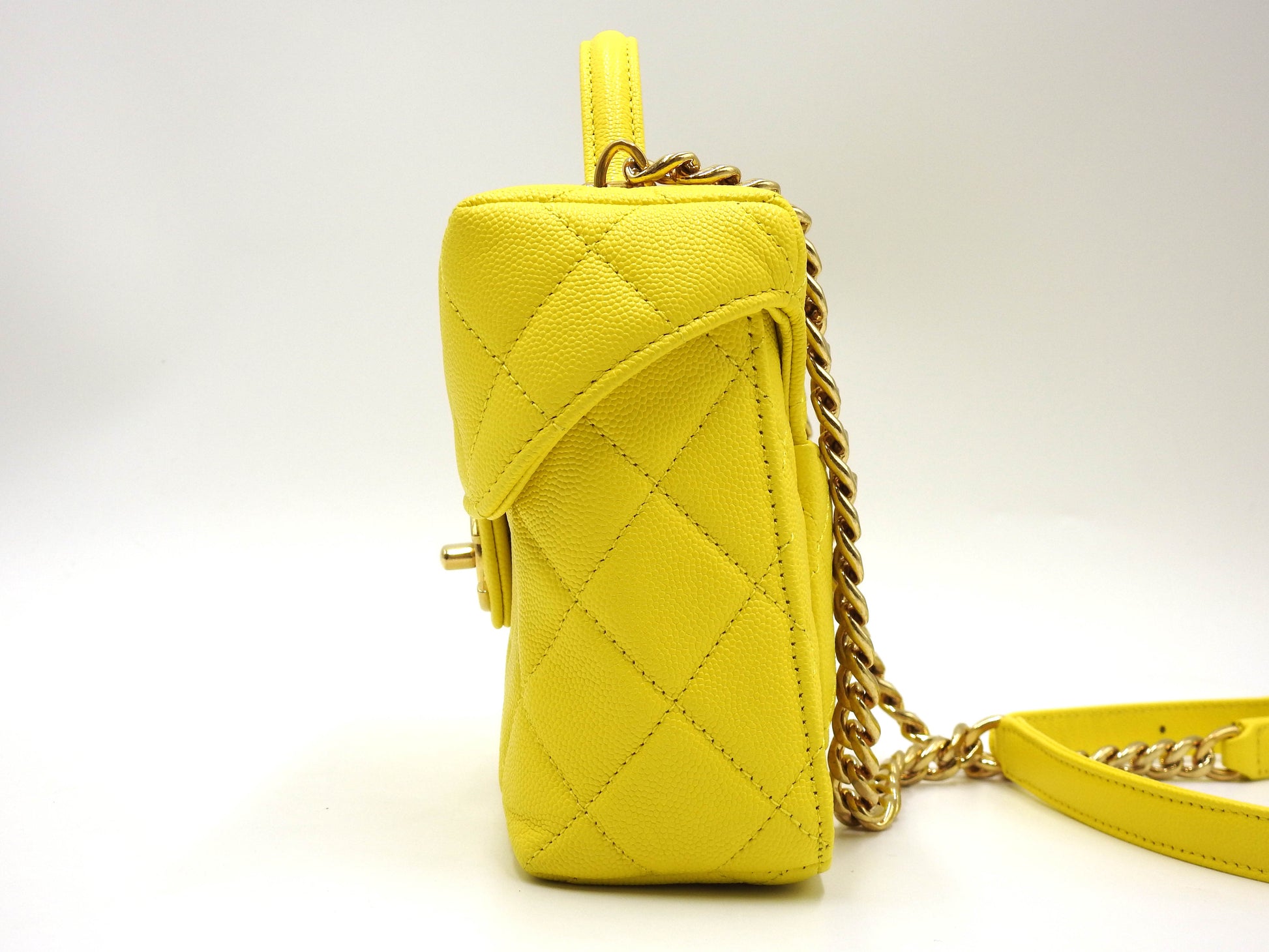 CHANEL CC Matelasse Top Handle Chain Shoulder Bag Caviarskin Yellow AS3729