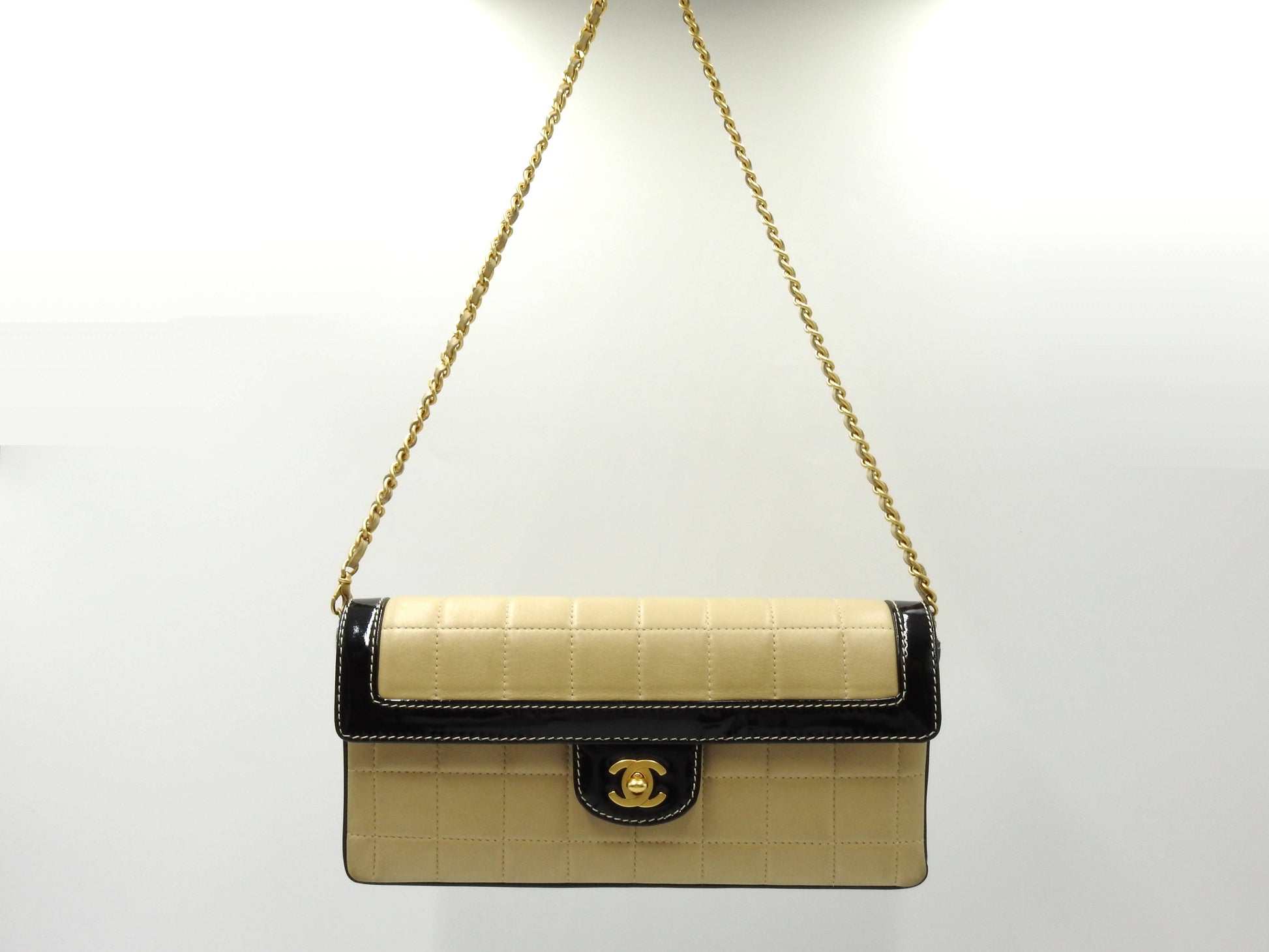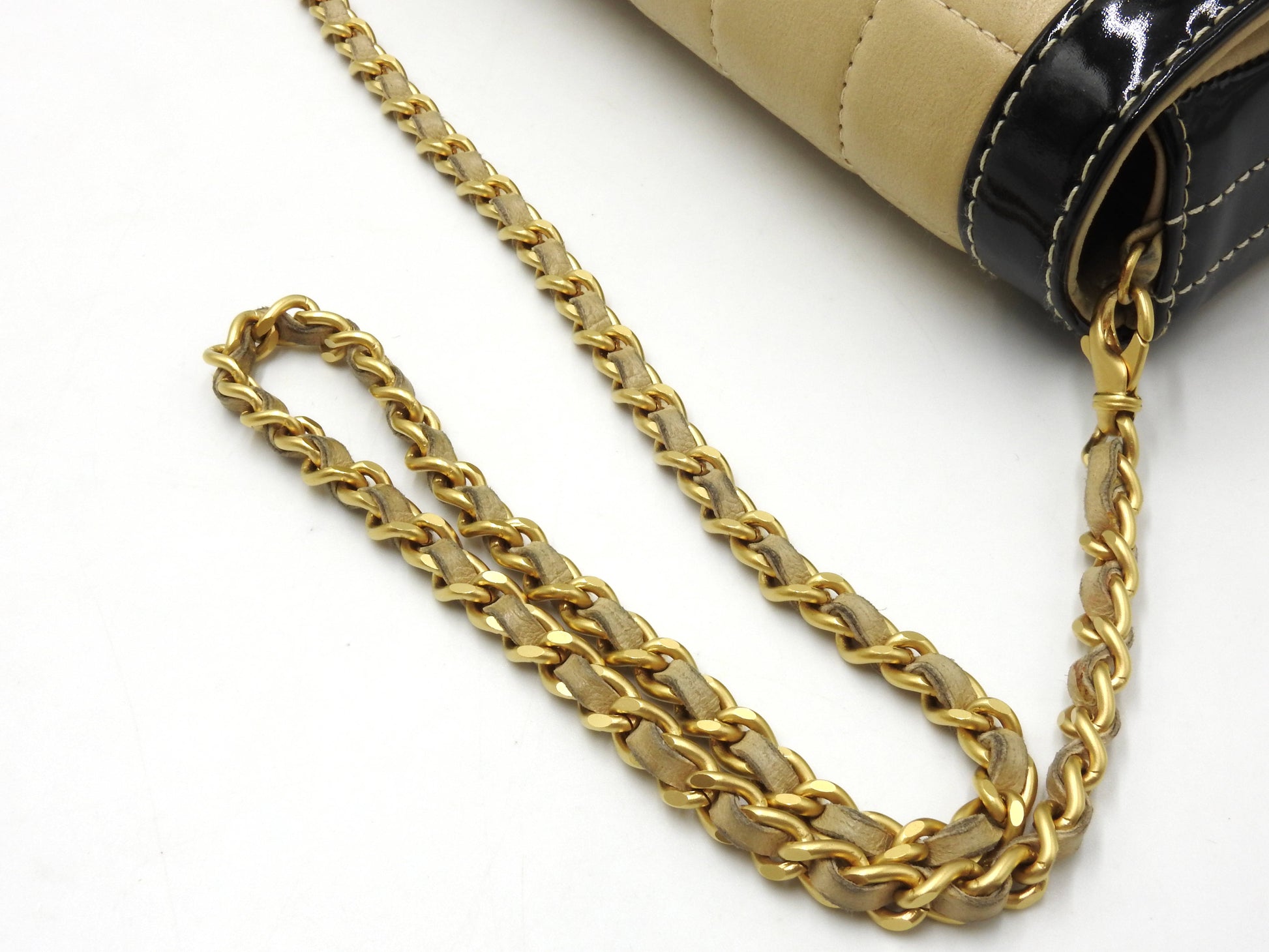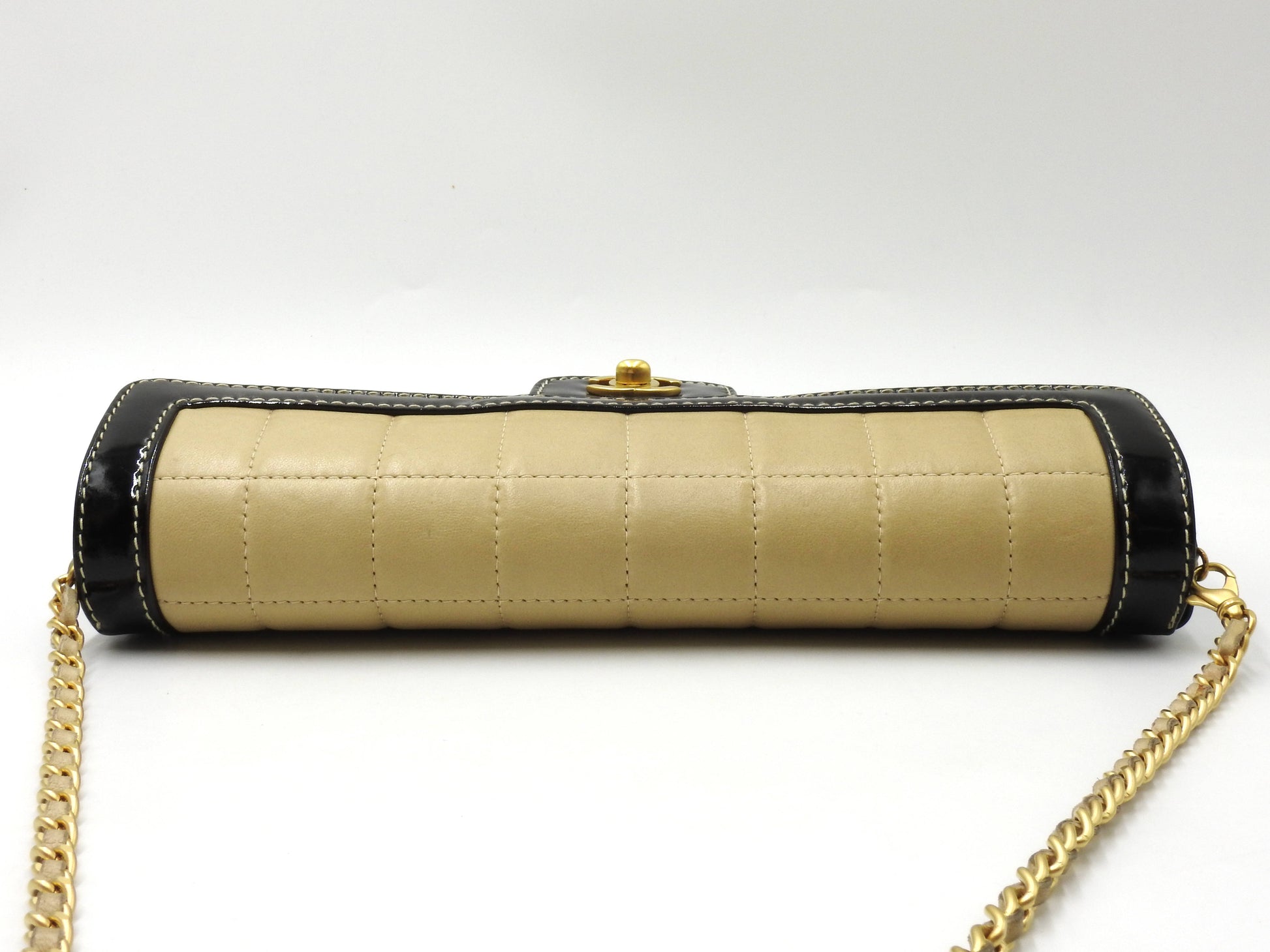 CHANEL Chocolate Bar Chain Shoulder Bag Lambskin Patent Beige Black A15316