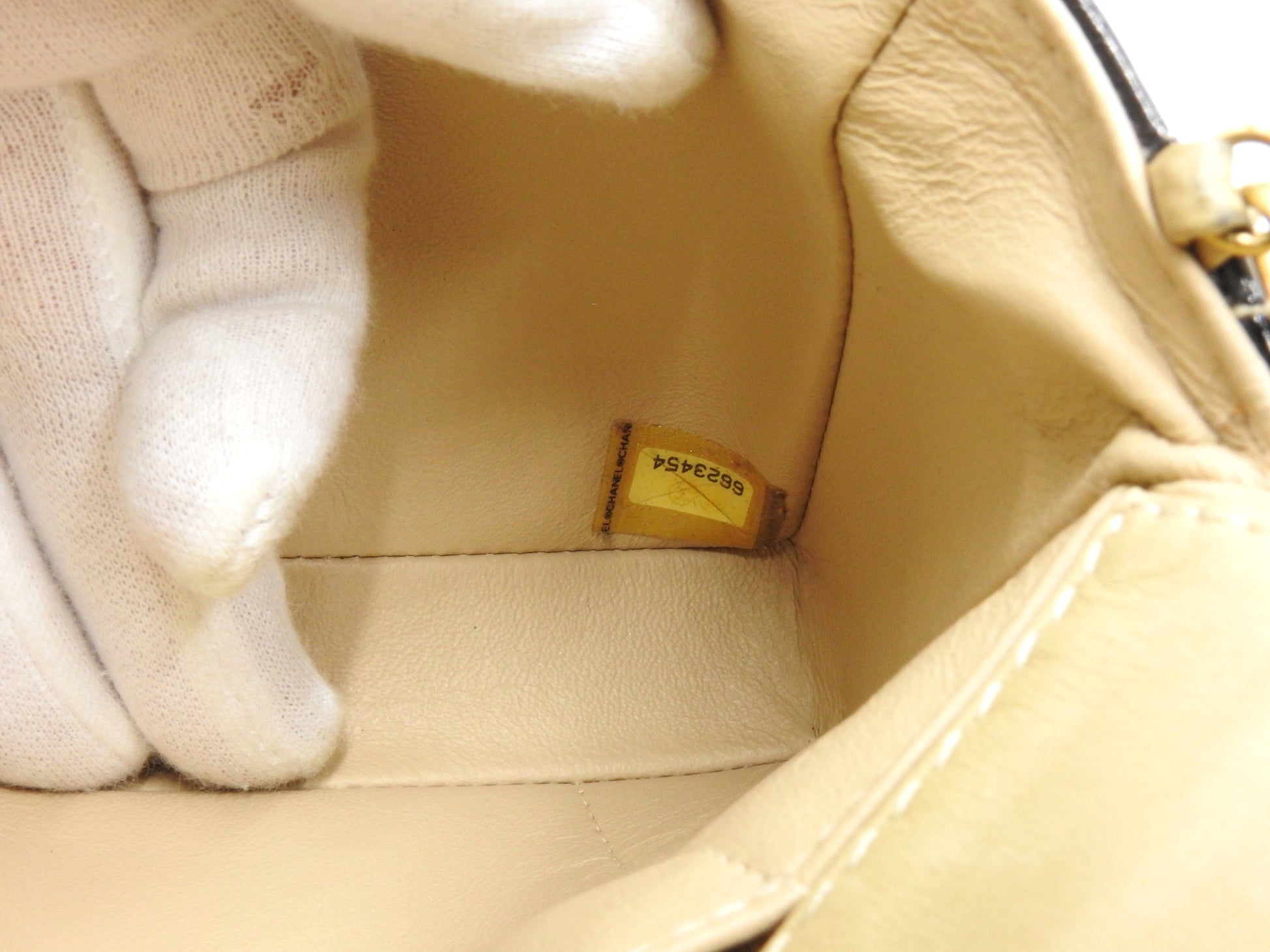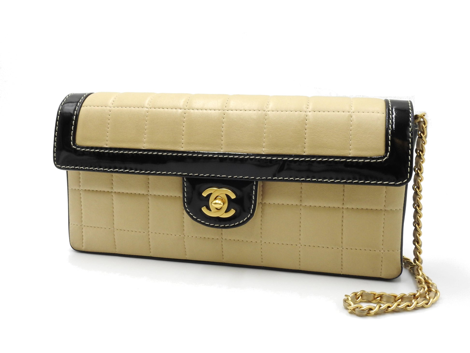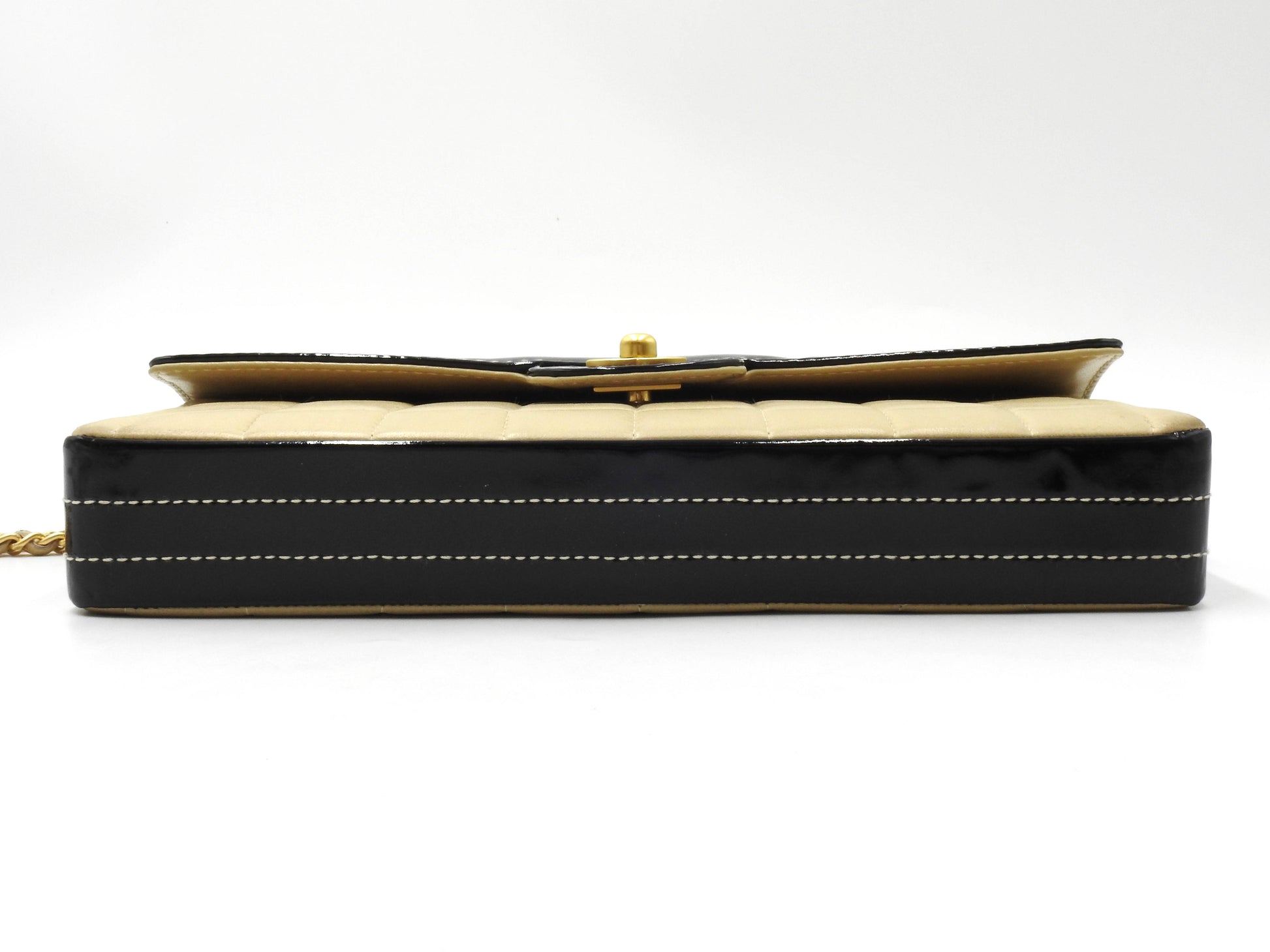 CHANEL Chocolate Bar Chain Shoulder Bag Lambskin Patent Beige Black A15316