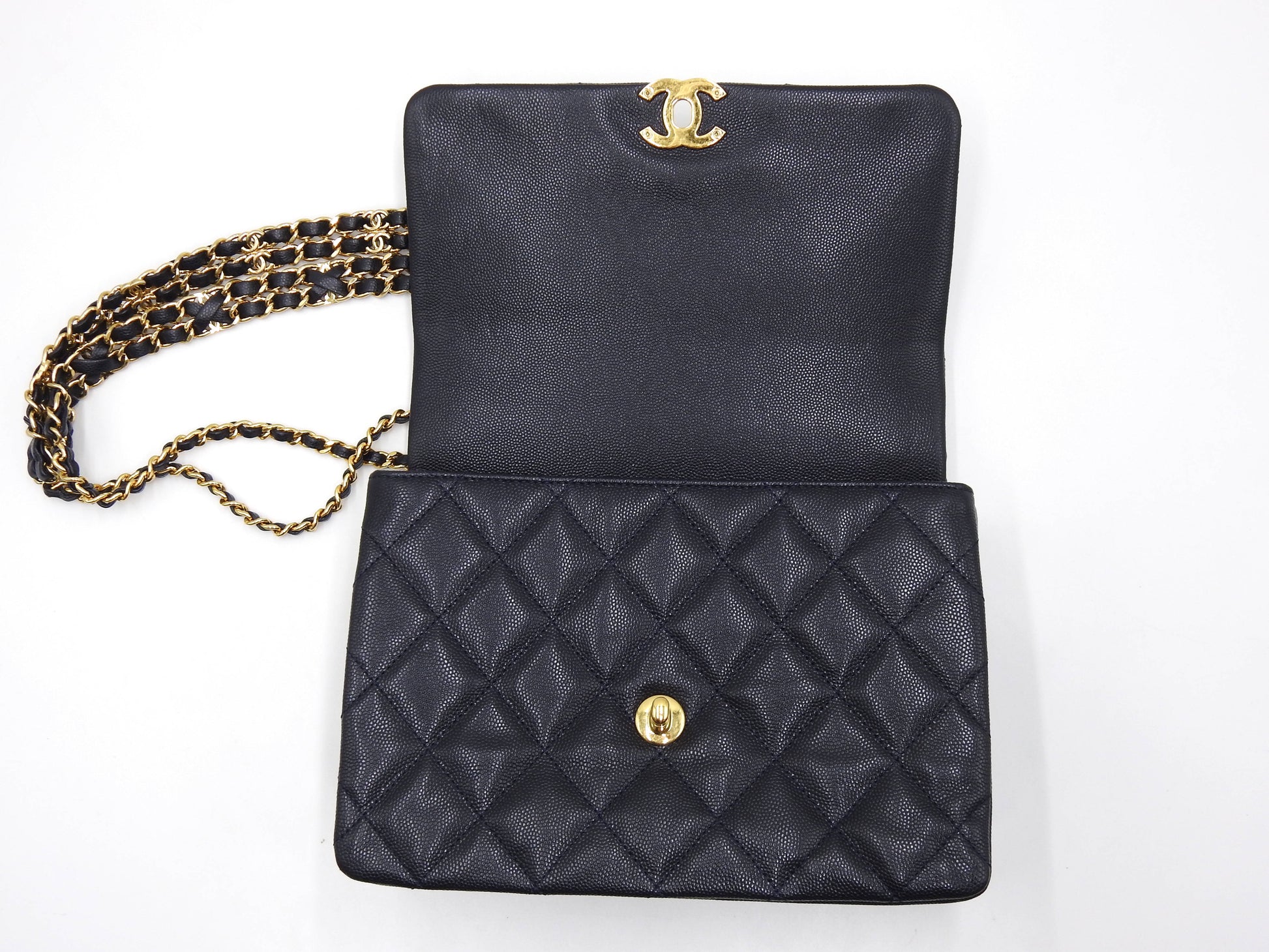 CHANEL Coco First Matelasse Flap Chain Shoulder Bag Caviarskin Navy AS3580