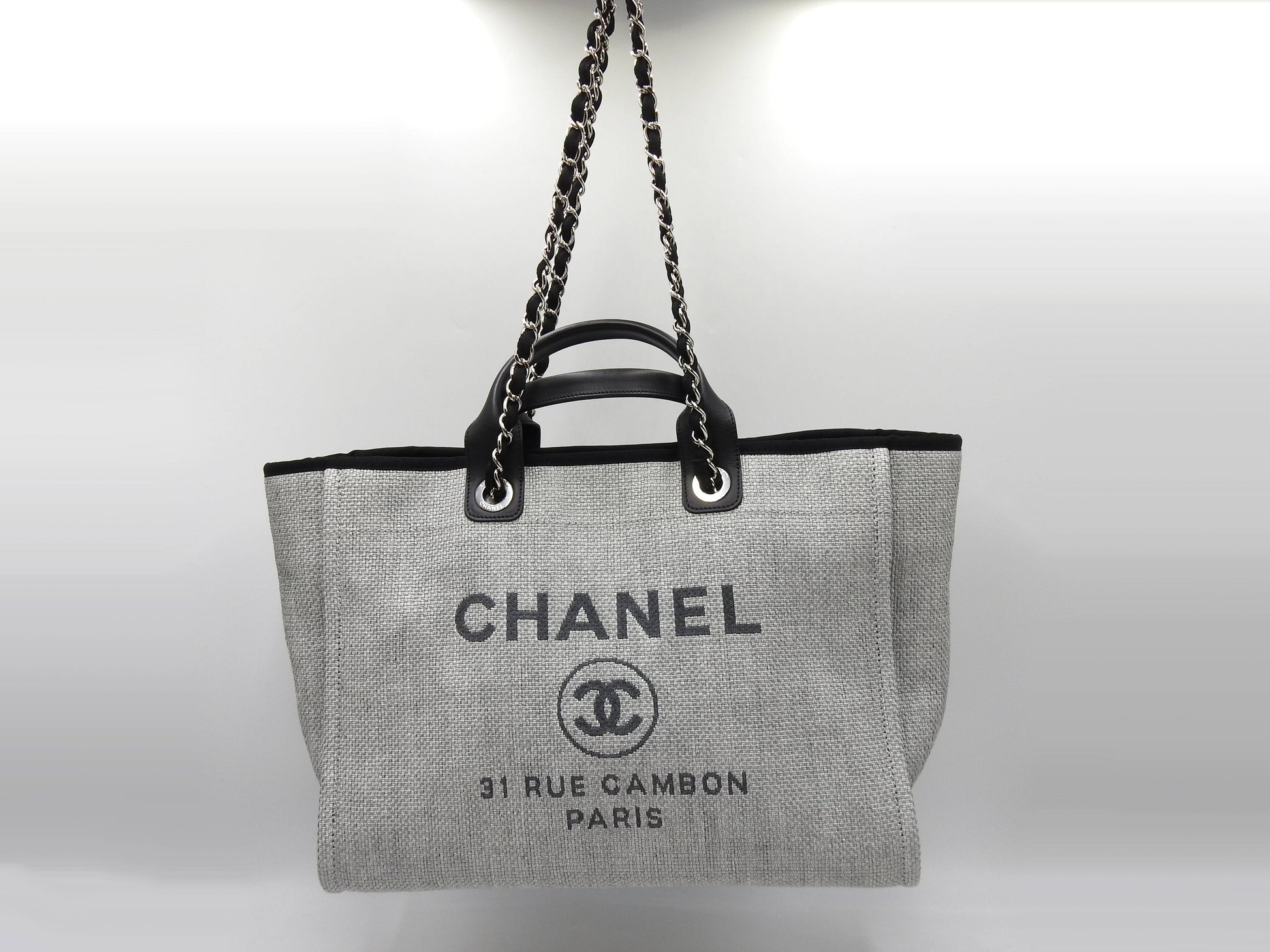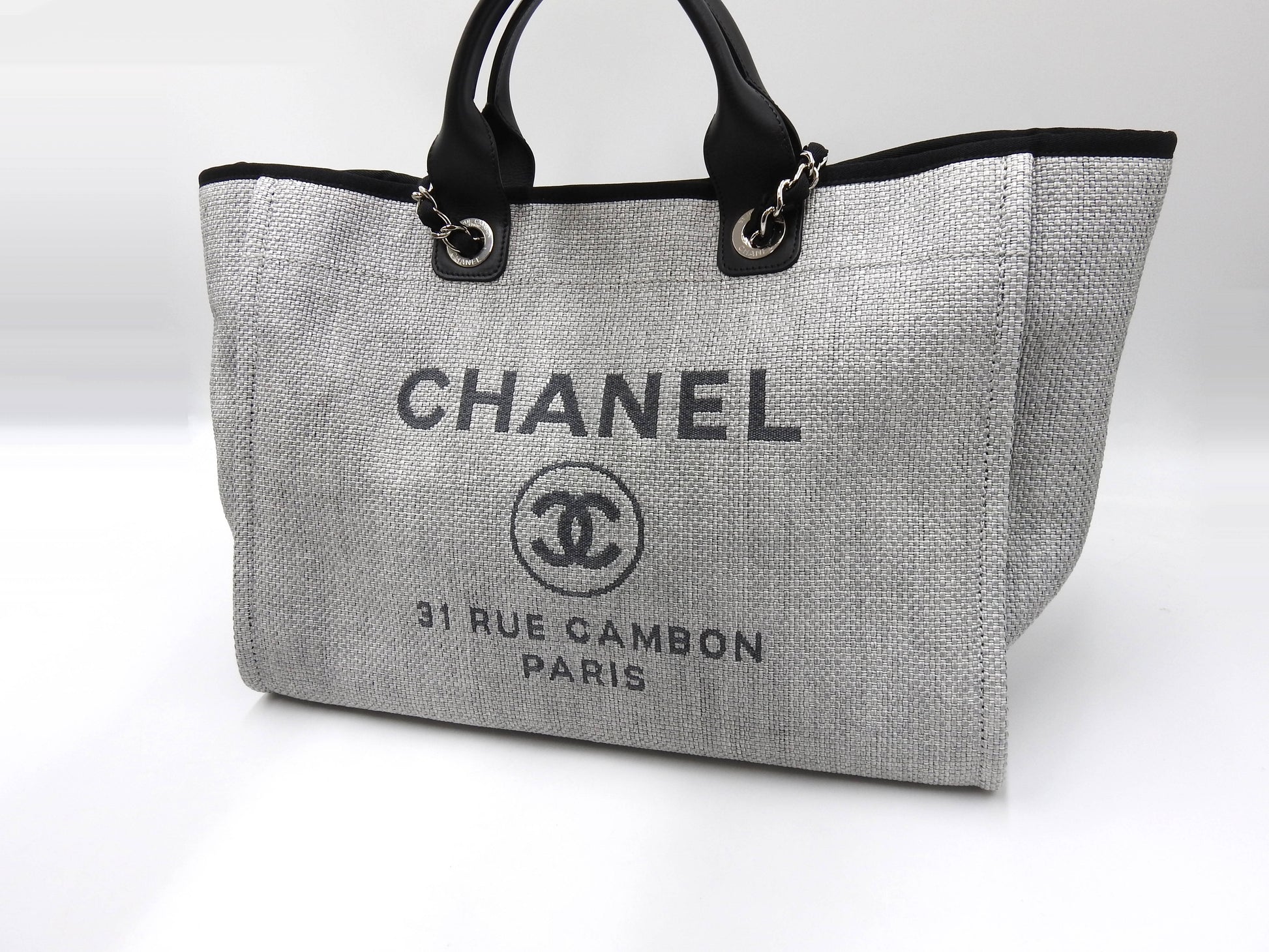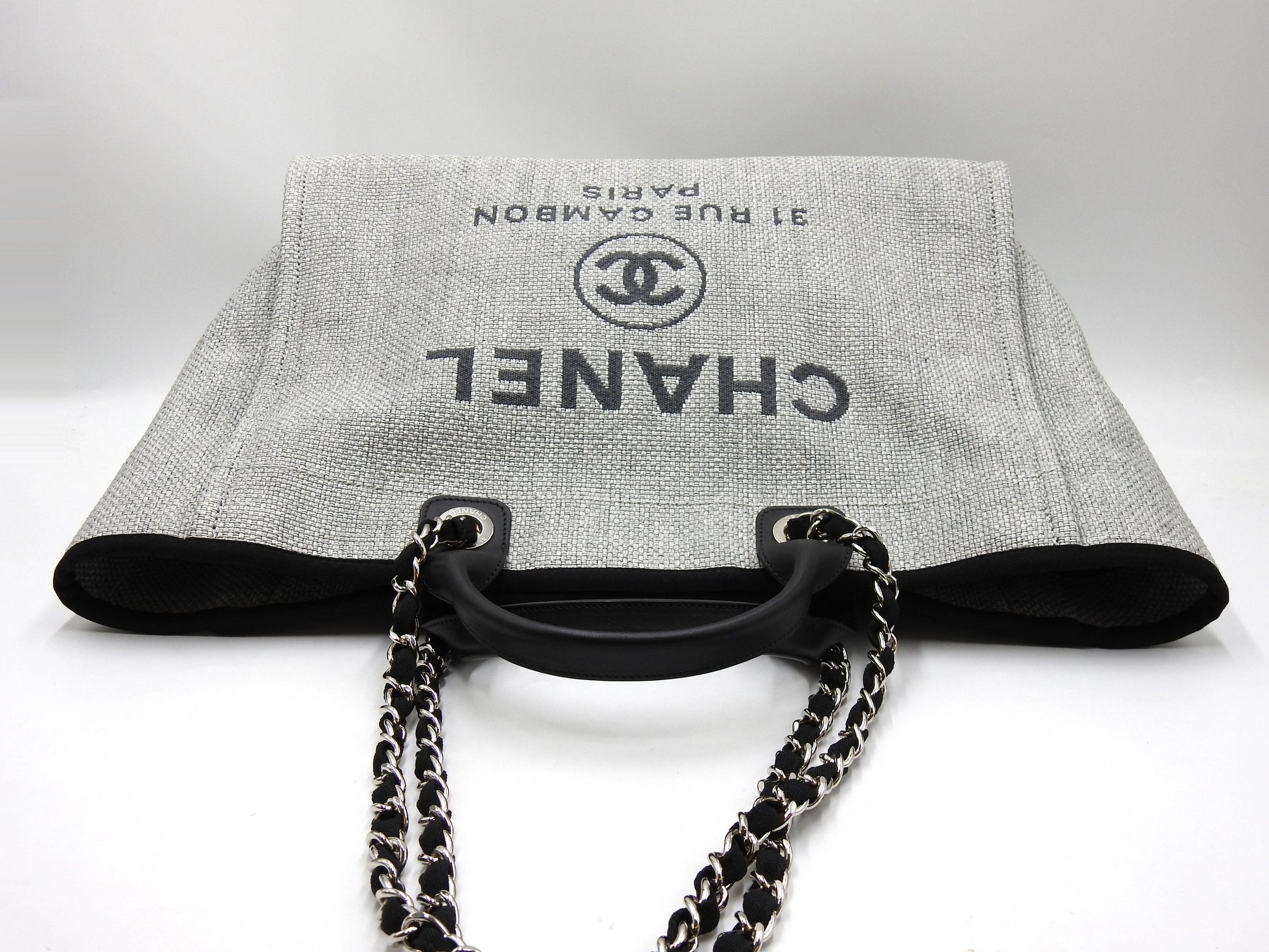 Chanel Deauville Large 2way Chain Shoulder Tote Bag Straw Canvas A66941