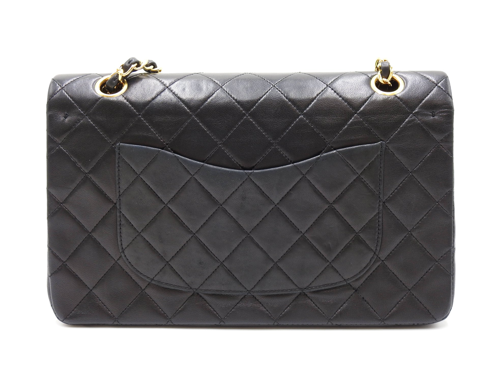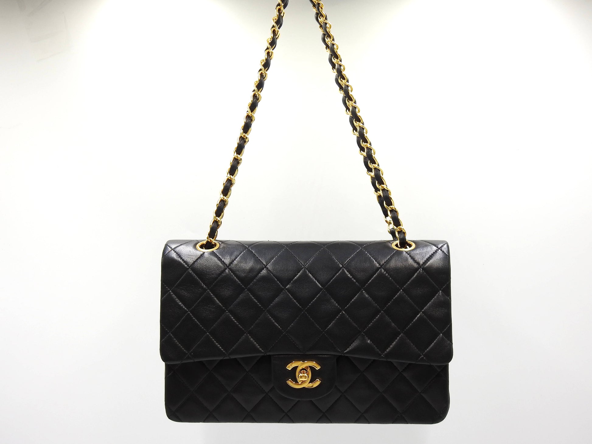 CHANEL Matelasse 25 Double Flap Chain Shoulder Bag Lambskin Black A01112
