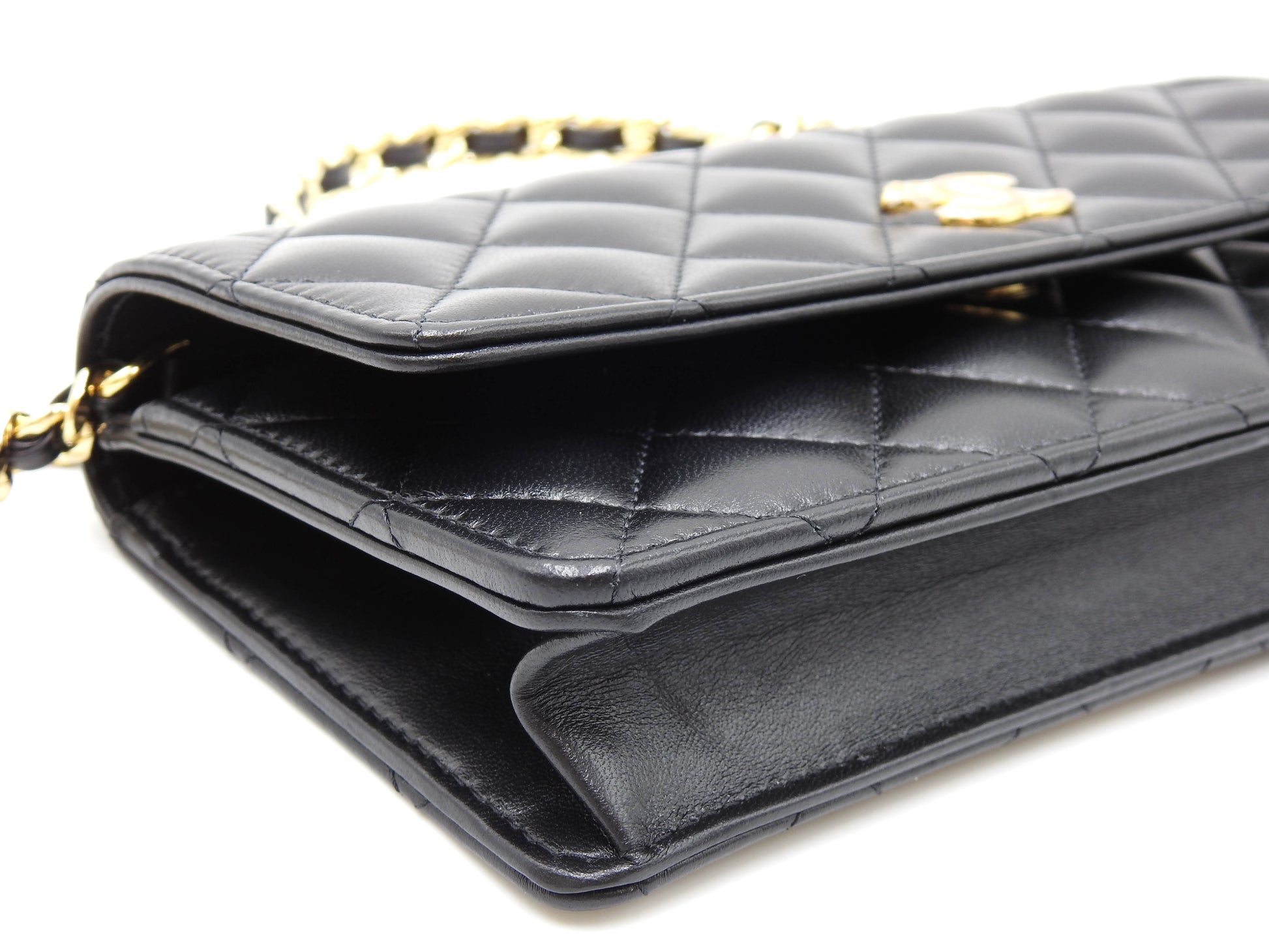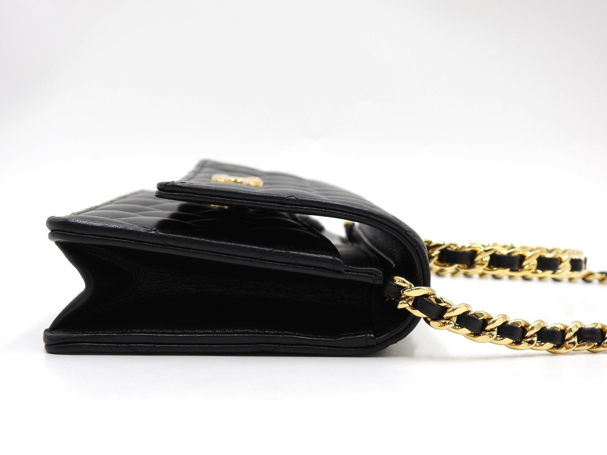 CHANEL Matelasse Chain Phone Holder Shoulder Bag Lambskin Black AP3764