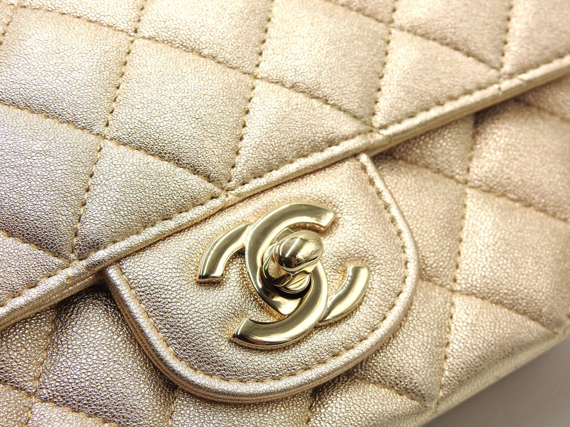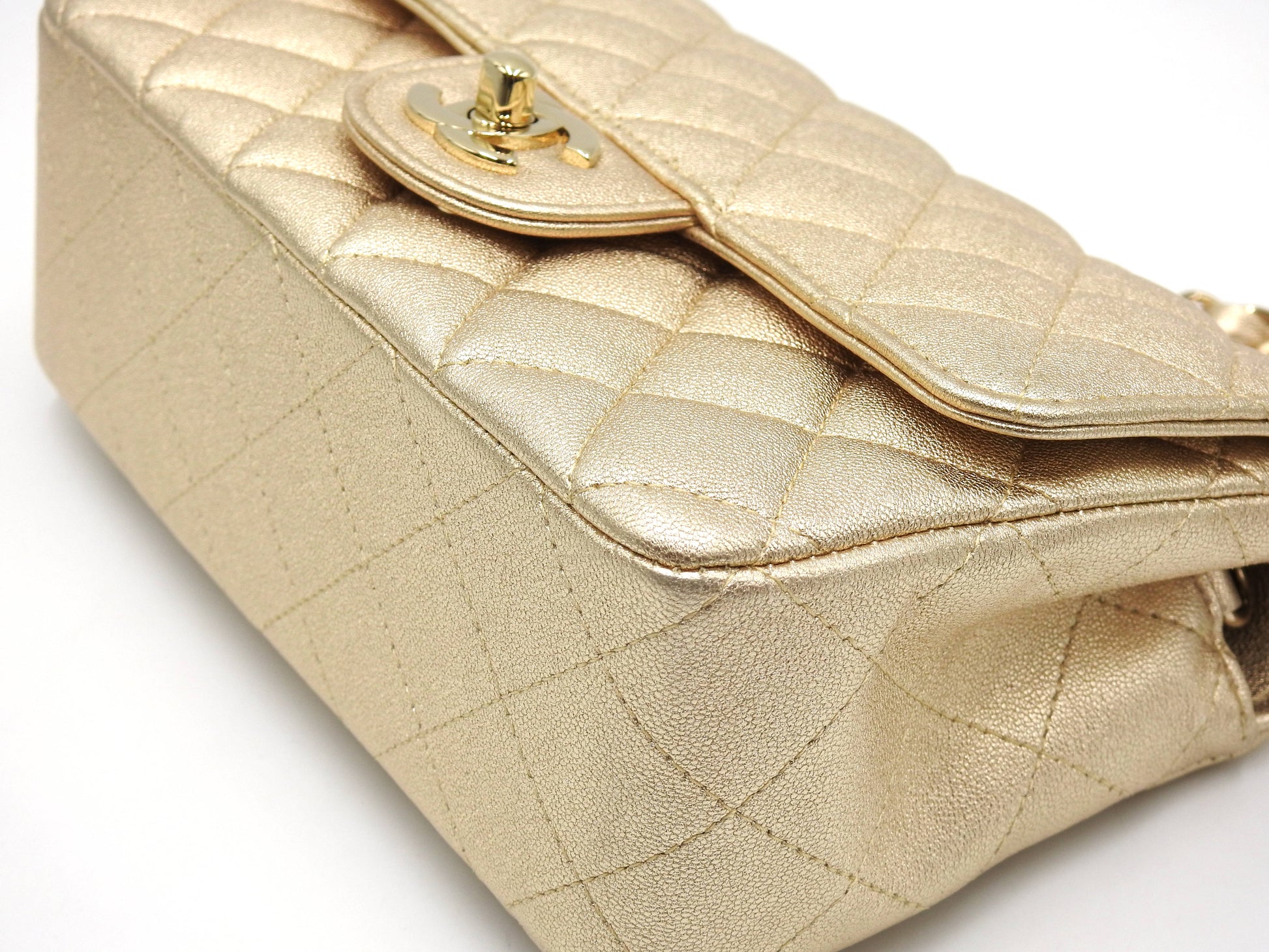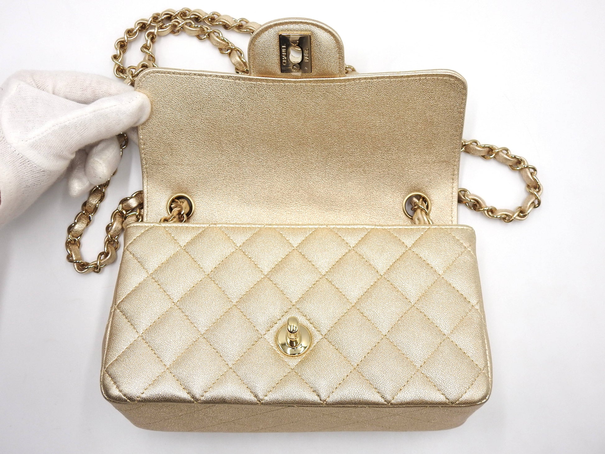 CHANEL Matelasse Mini Rectangular Flap Chain Shoulder Bag Lambskin Gold