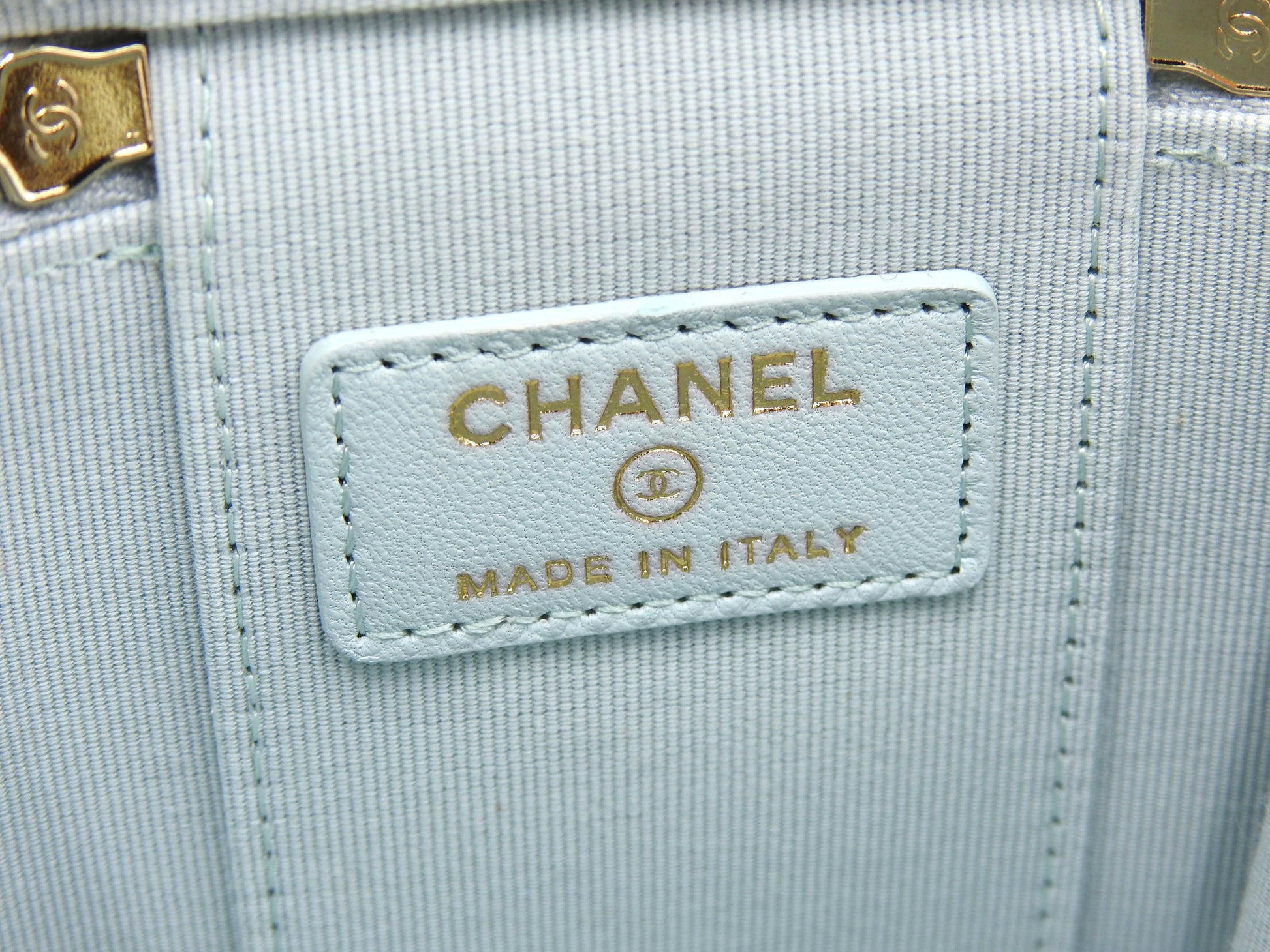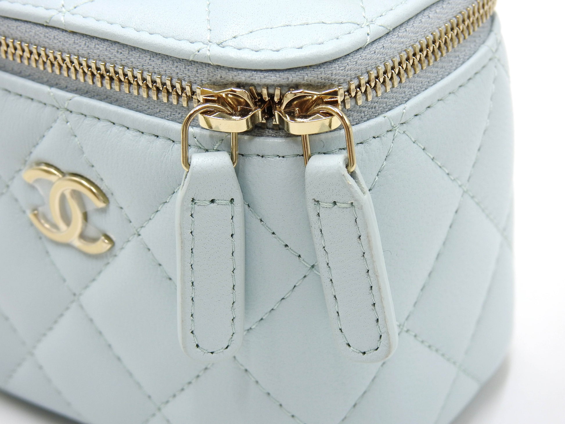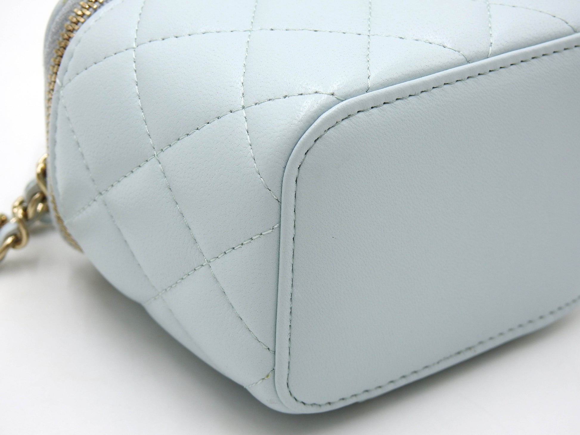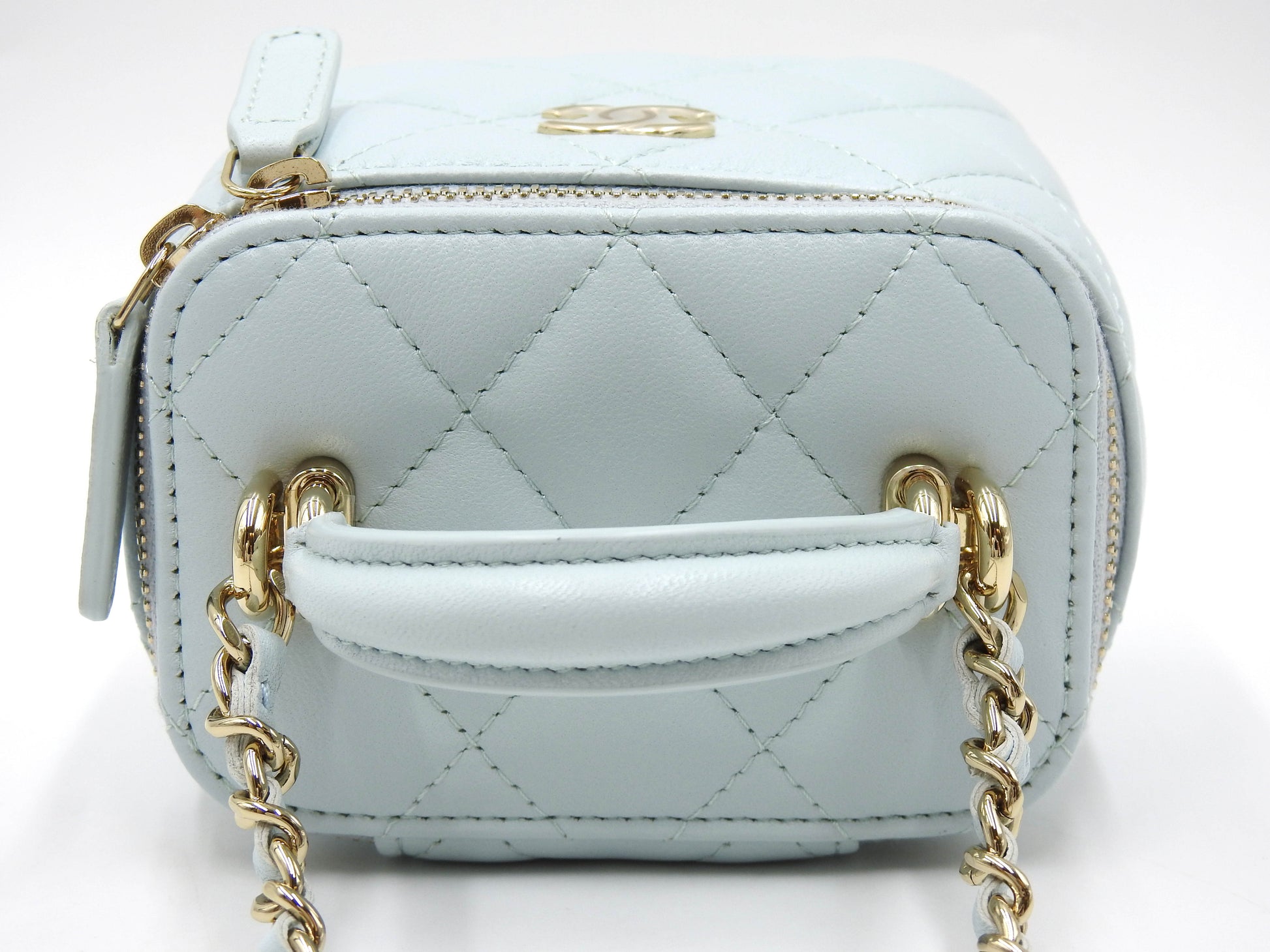 CHANEL Matelasse Top Handle Small Vanity Shoulder Bag Lambskin Blue AP2198