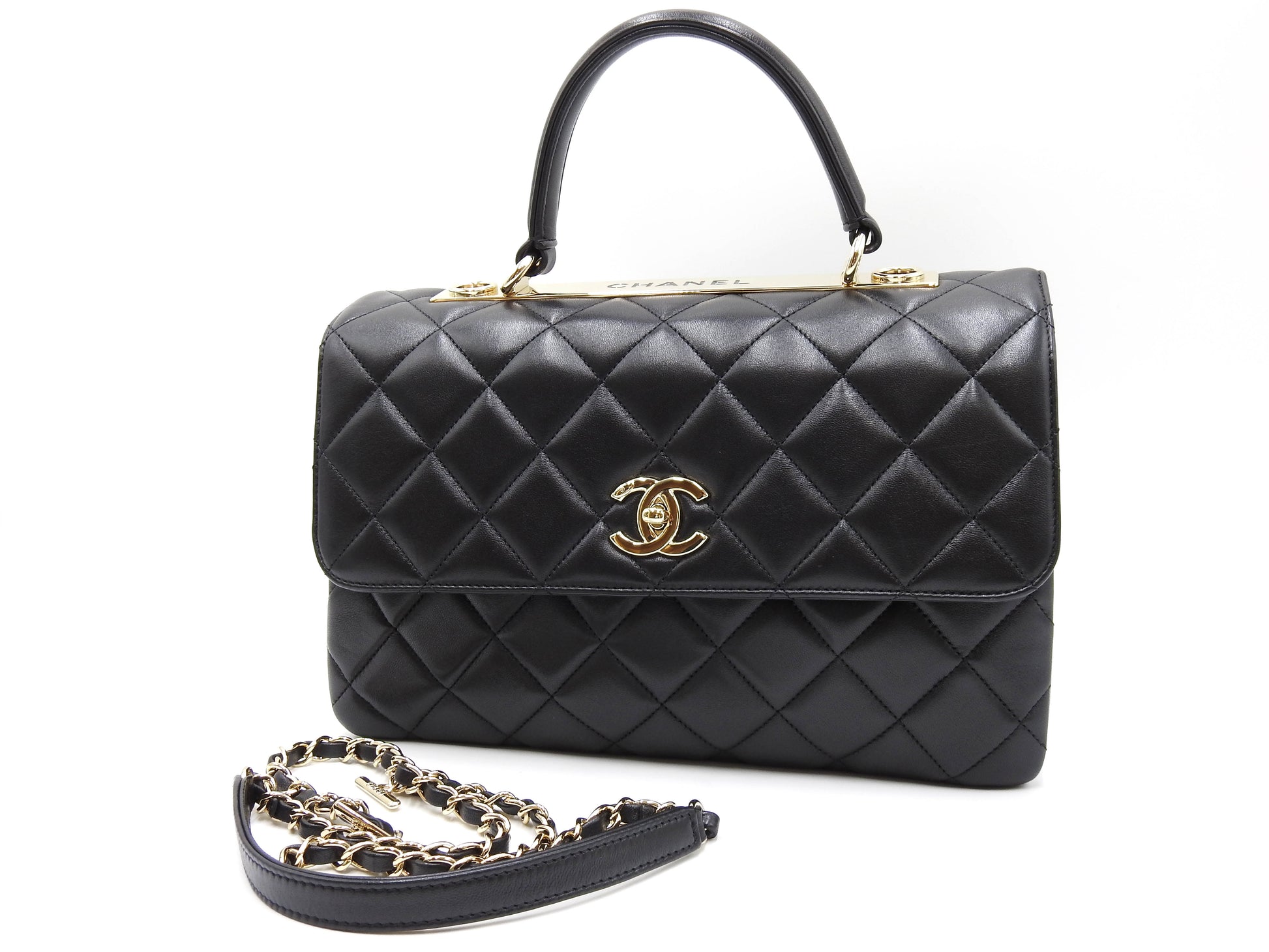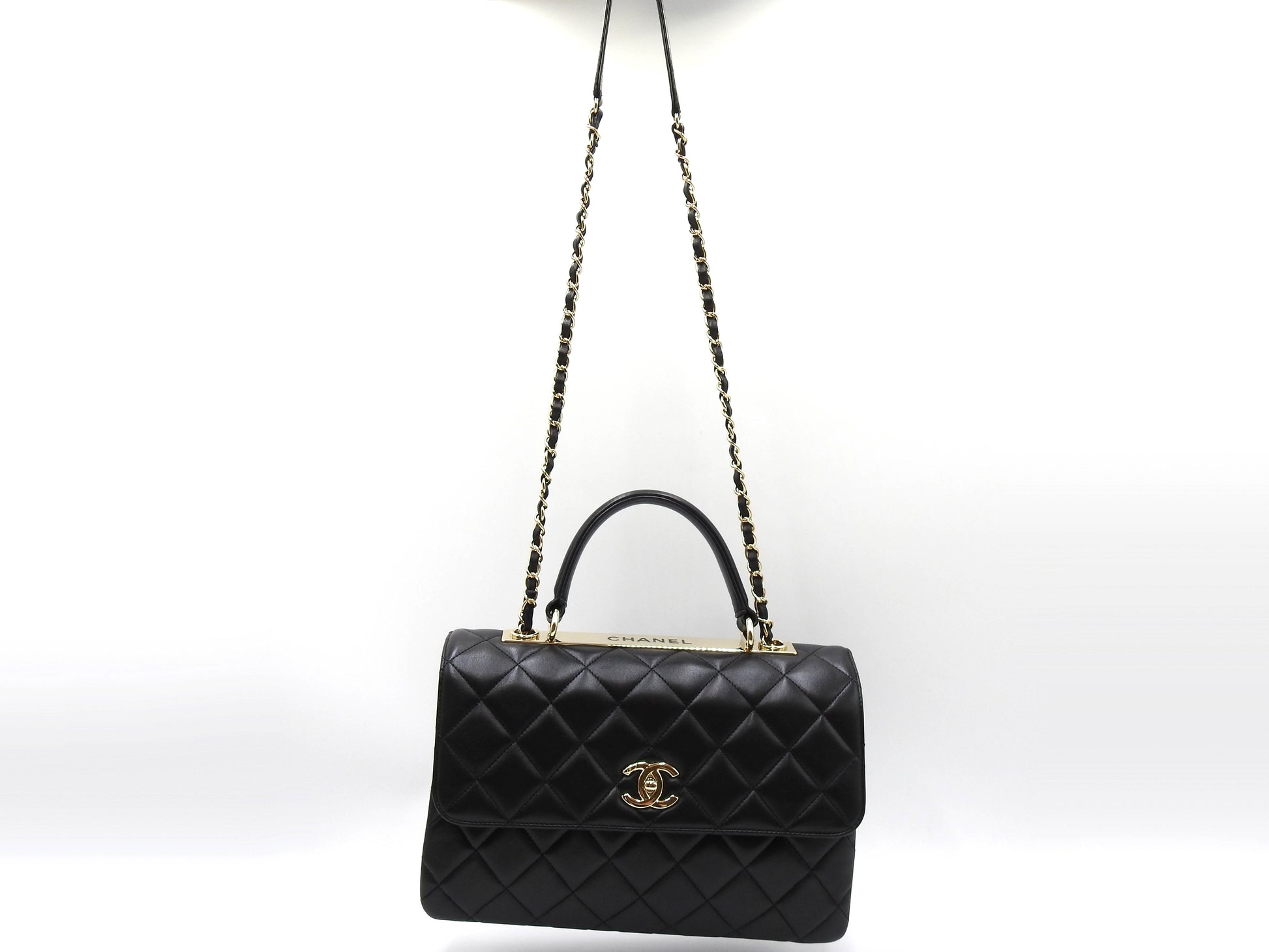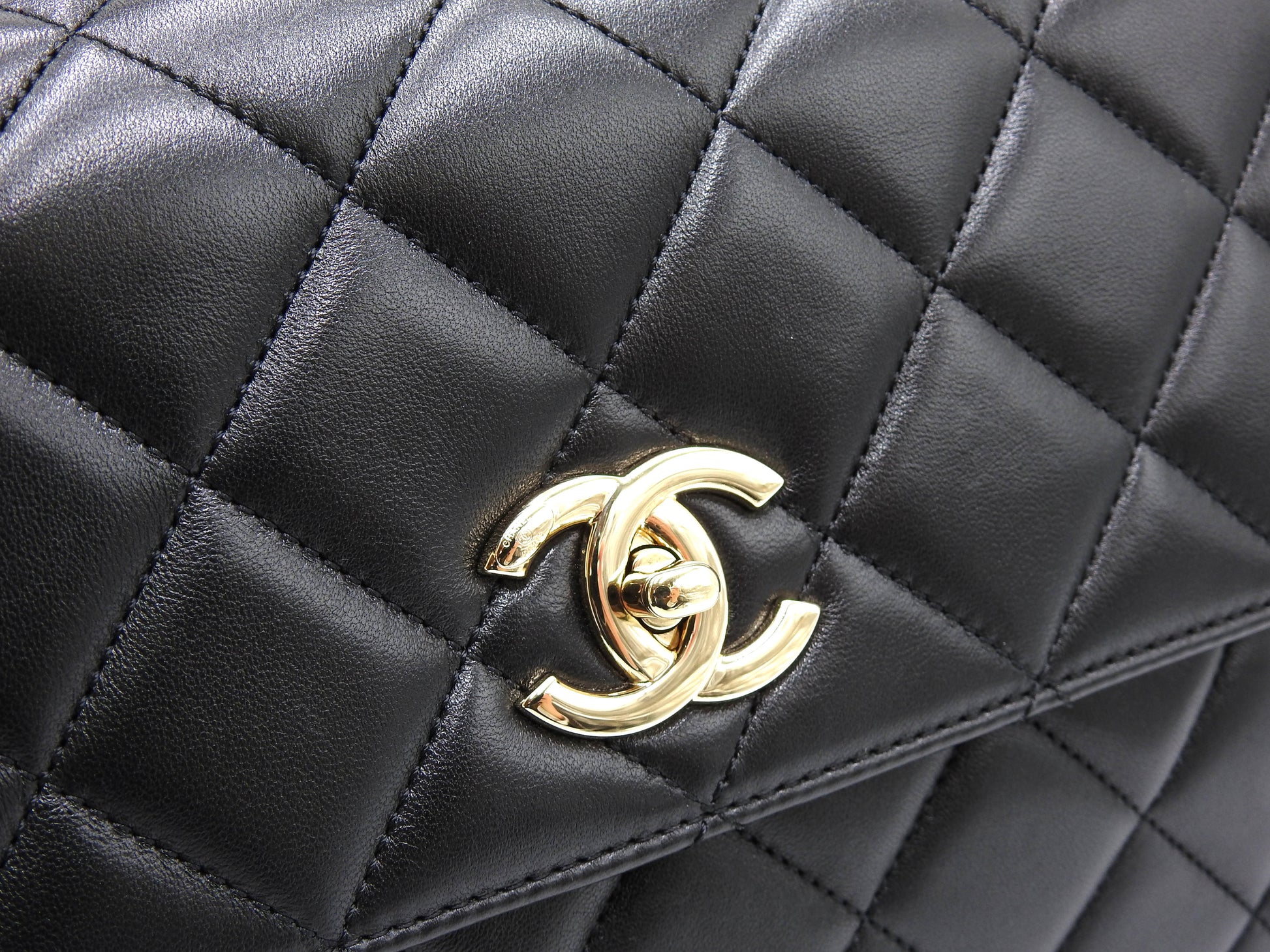 CHANEL Medium Trendy CC Top Handle Flap Shoulder Bag Lambskin Black A92237