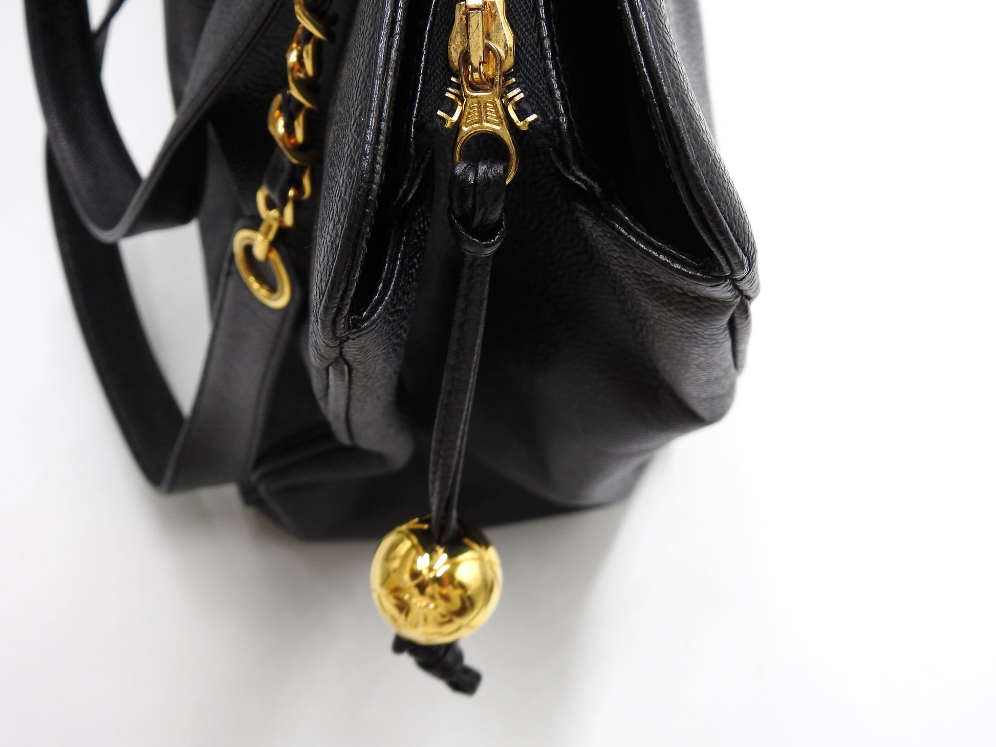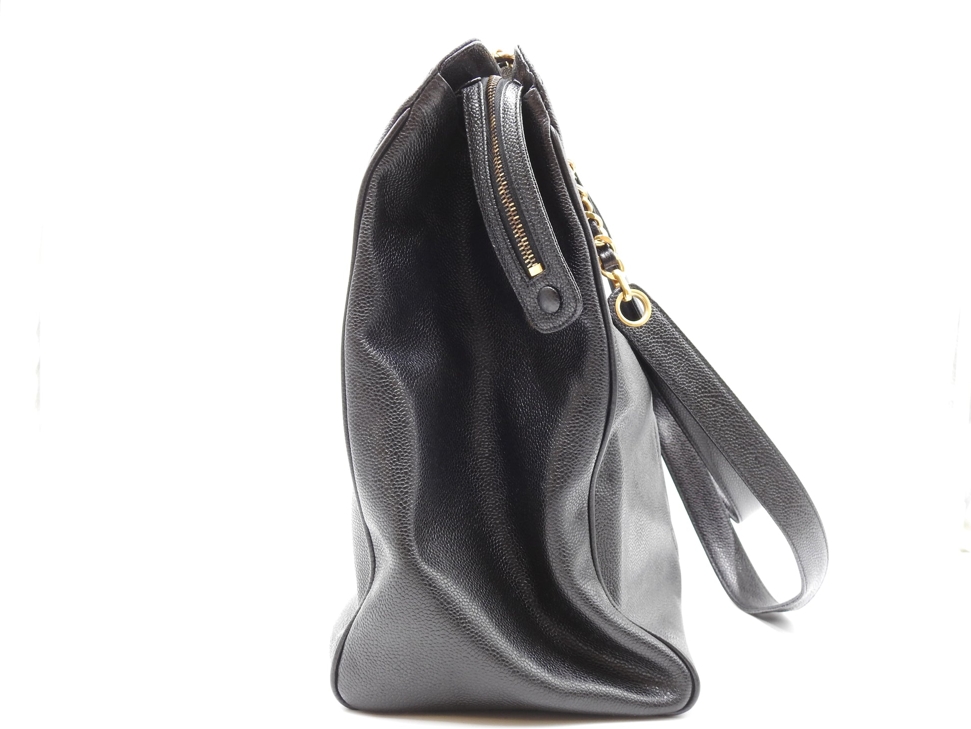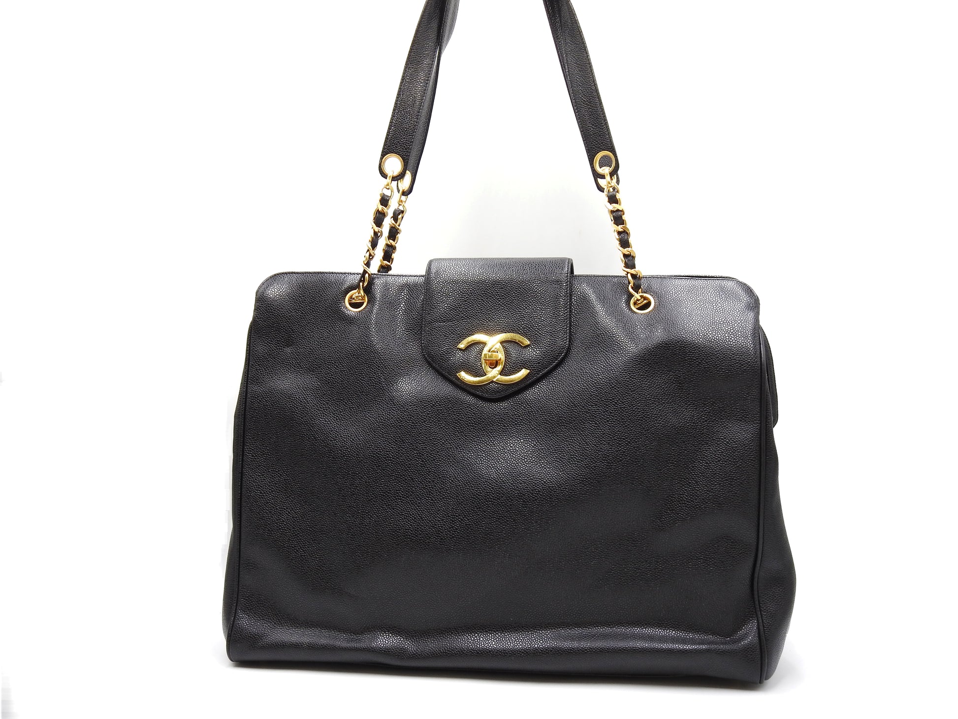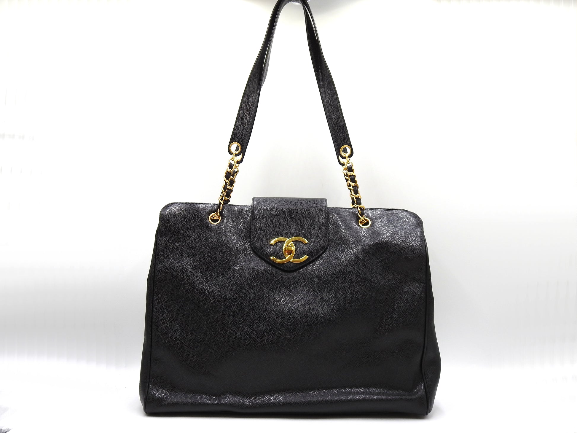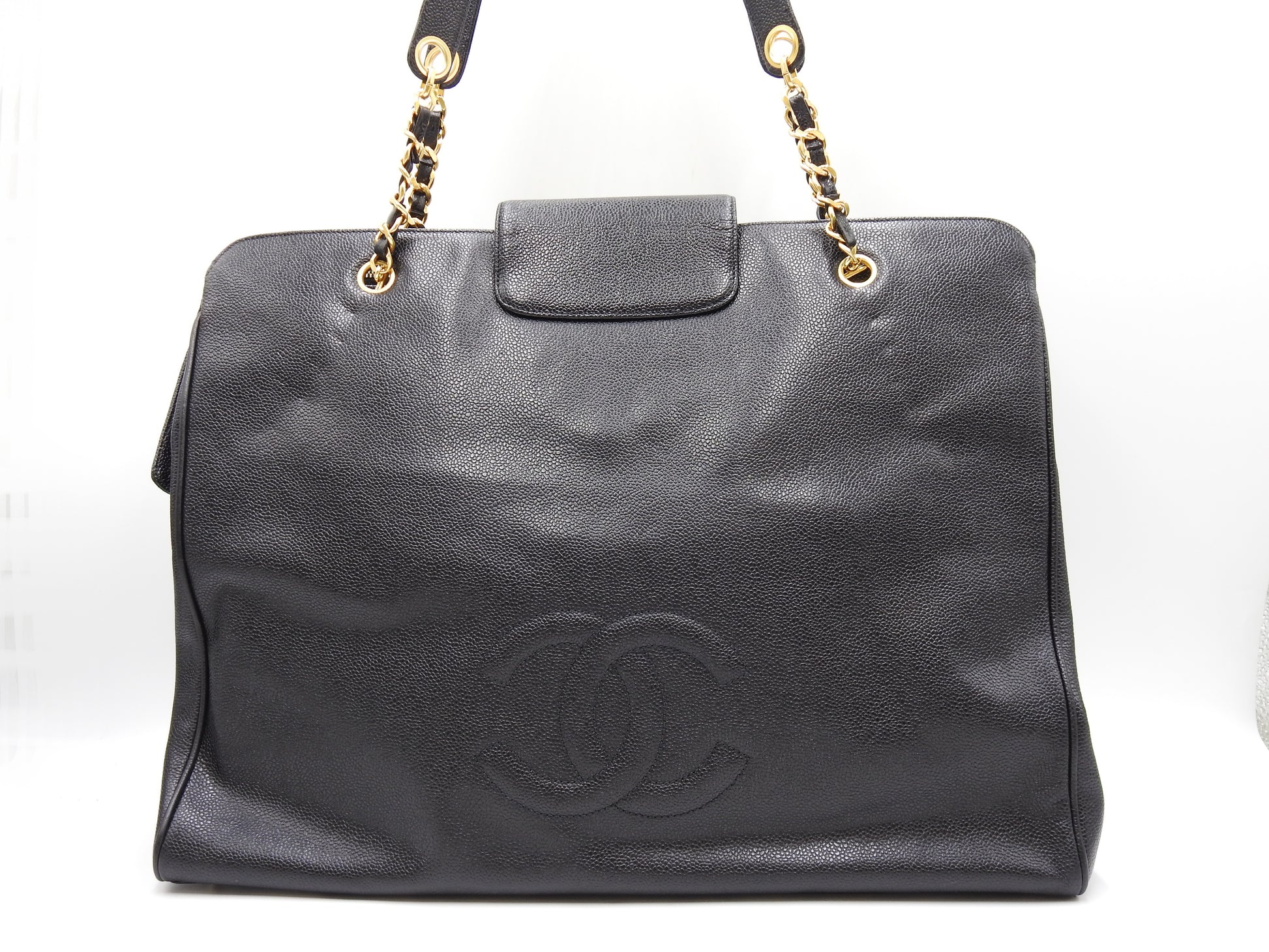 CHANEL Vintage Super Model Chain Shoulder Bag Tote Bag Caviarskin Black