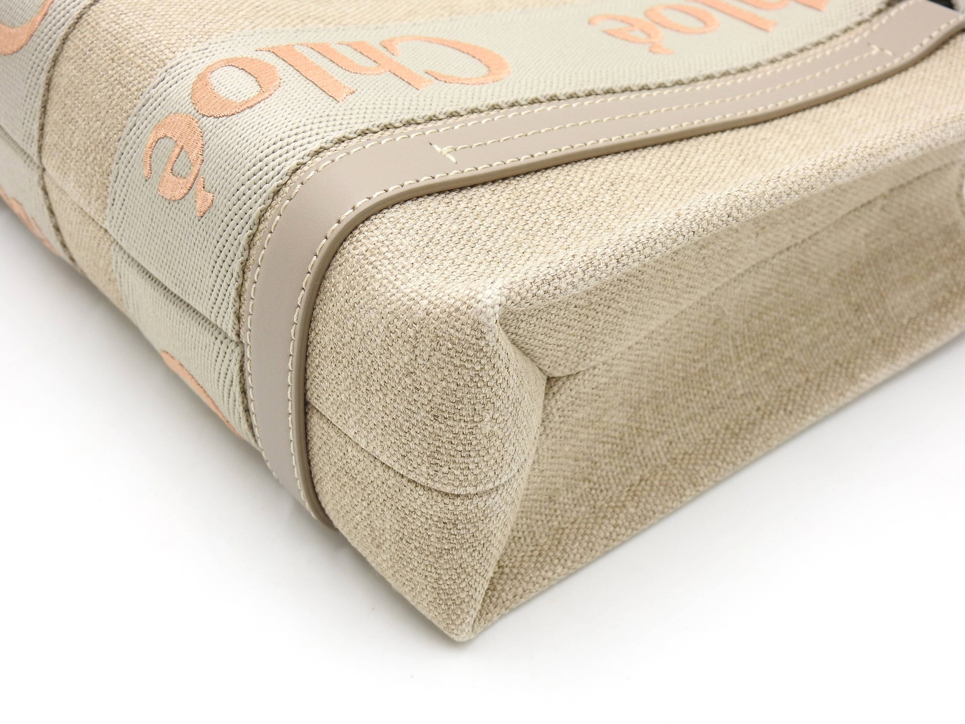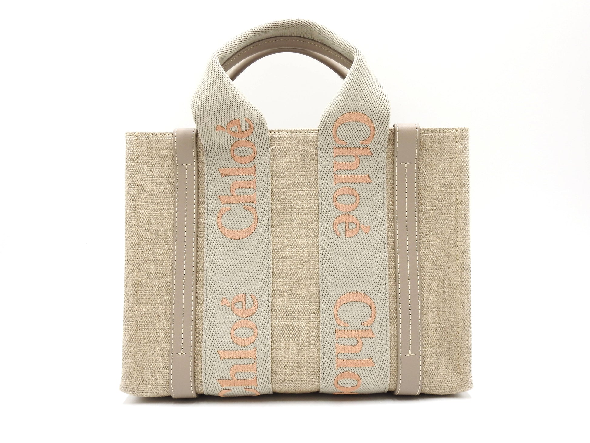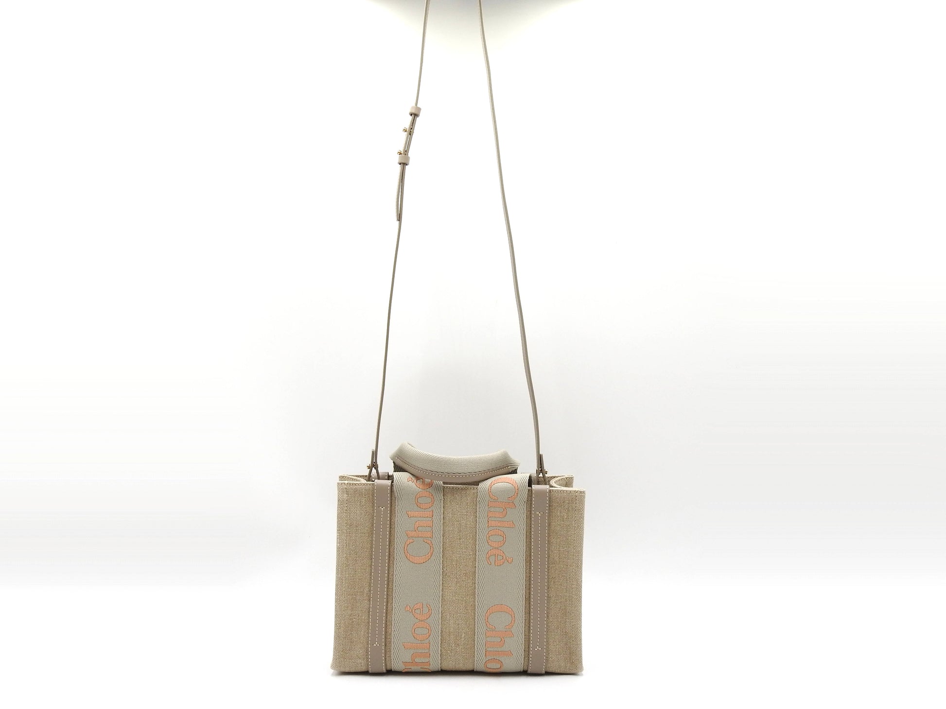 CHLOE Woody 2way Small Tote Bag Shoulder Bag Canvas Beige Gray