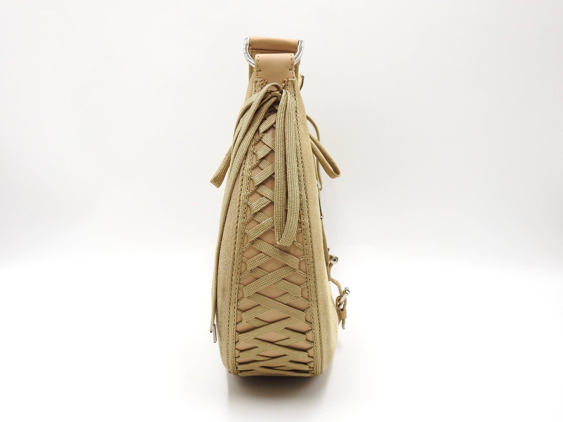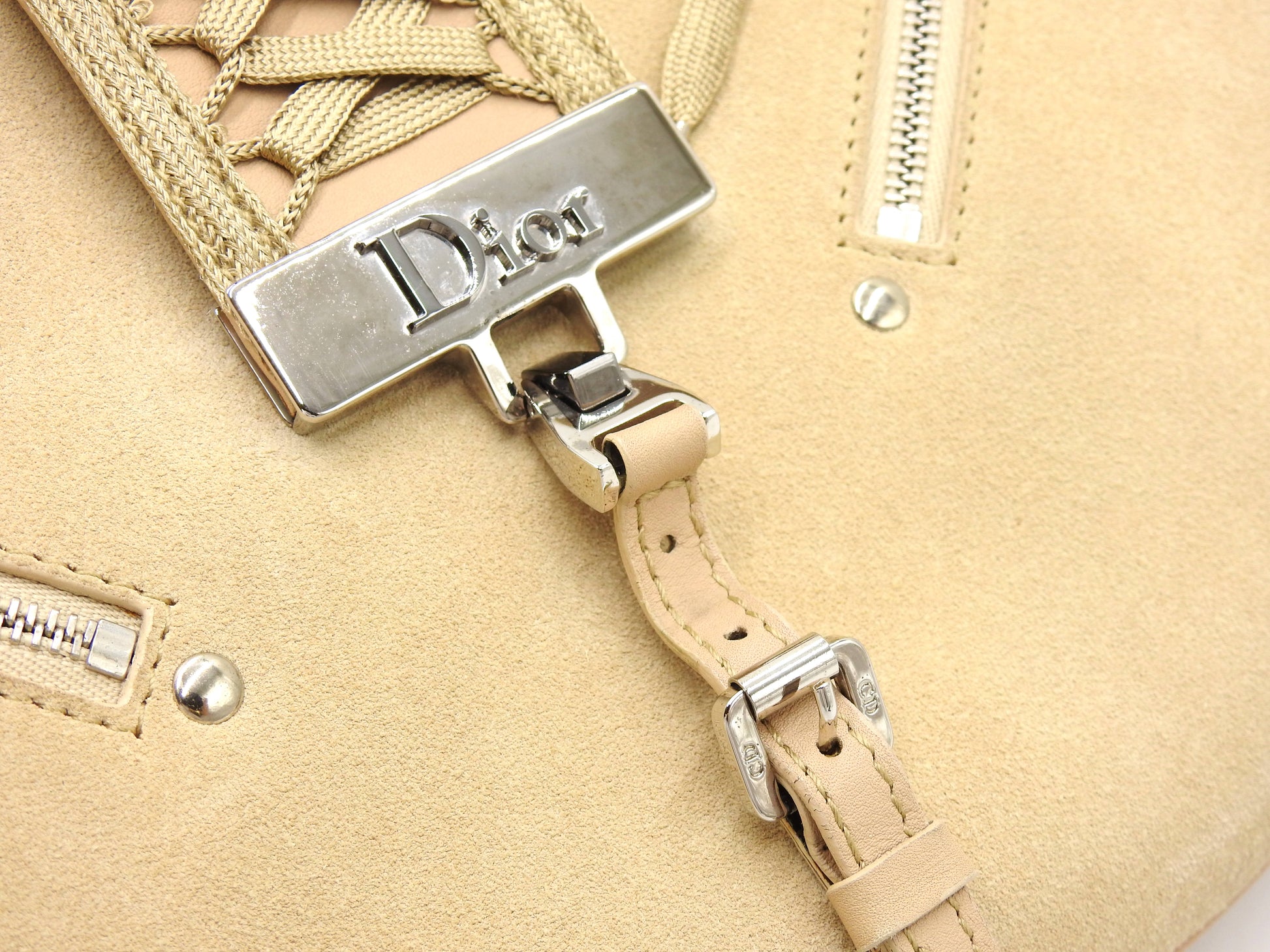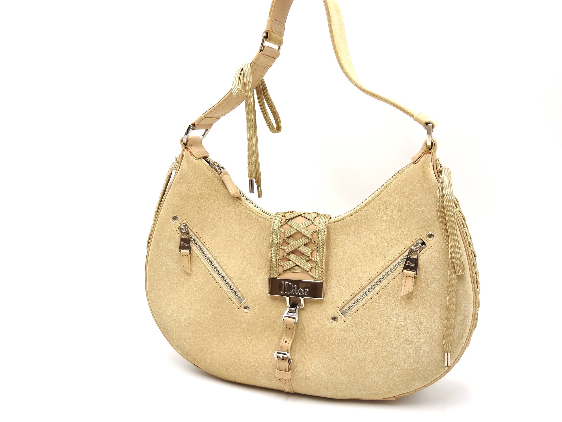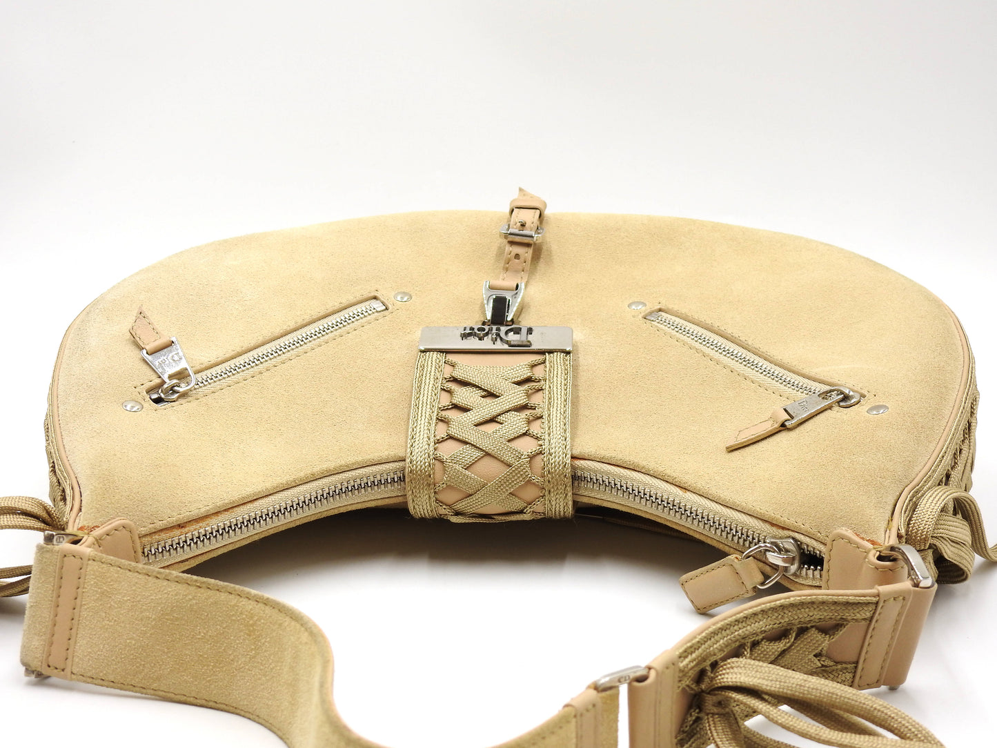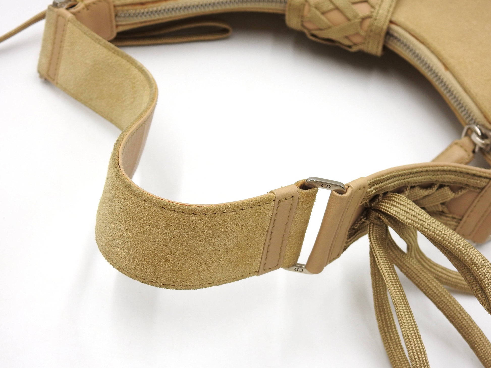 Christian Dior Admit It Lace-Up Hobo One Shoulder Bag Suede Leather Beige