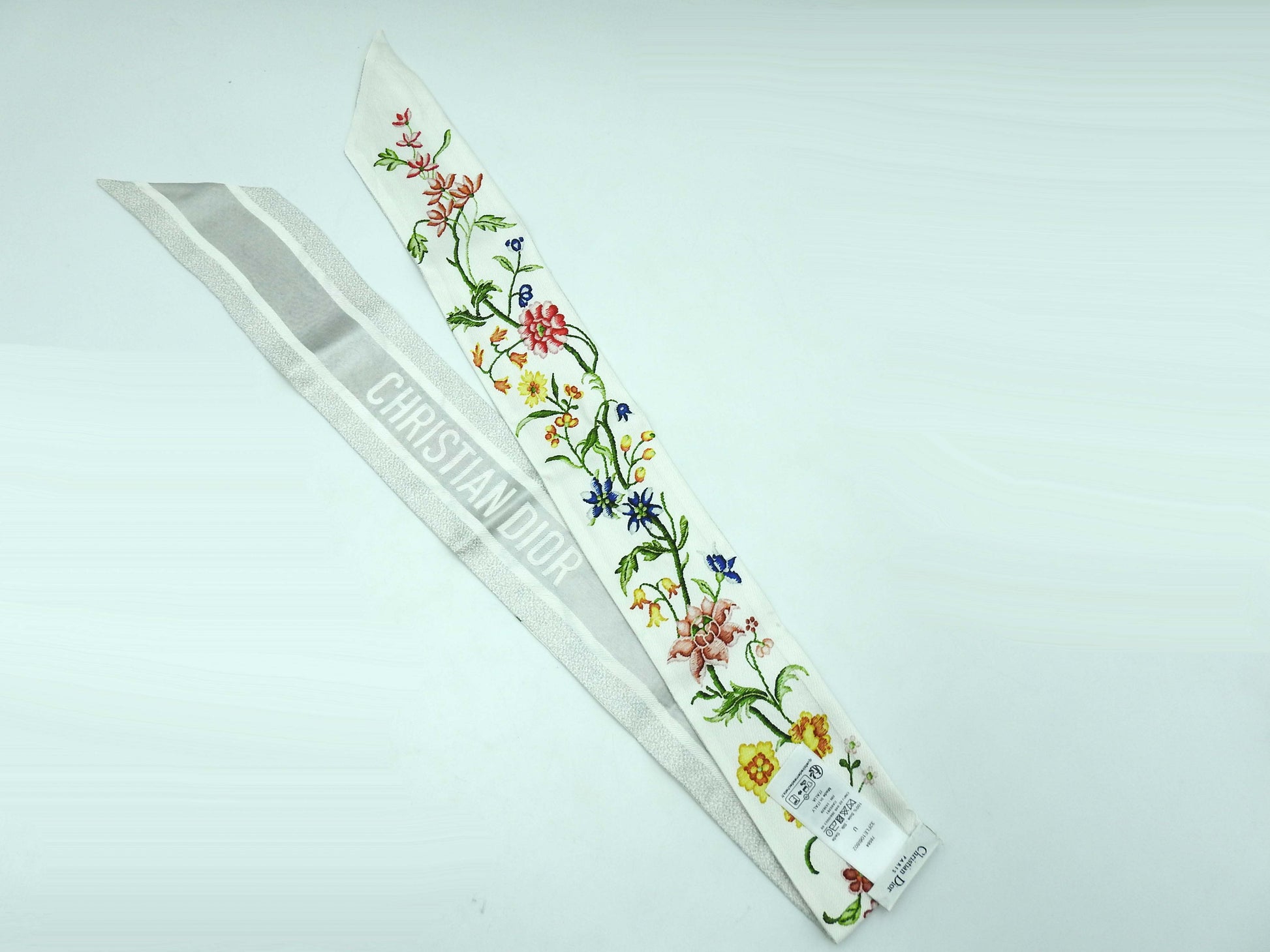 CHRISTIAN DIOR Mitzah Bandeau Scarf 100% Silk Gray White 32FLE106I602
