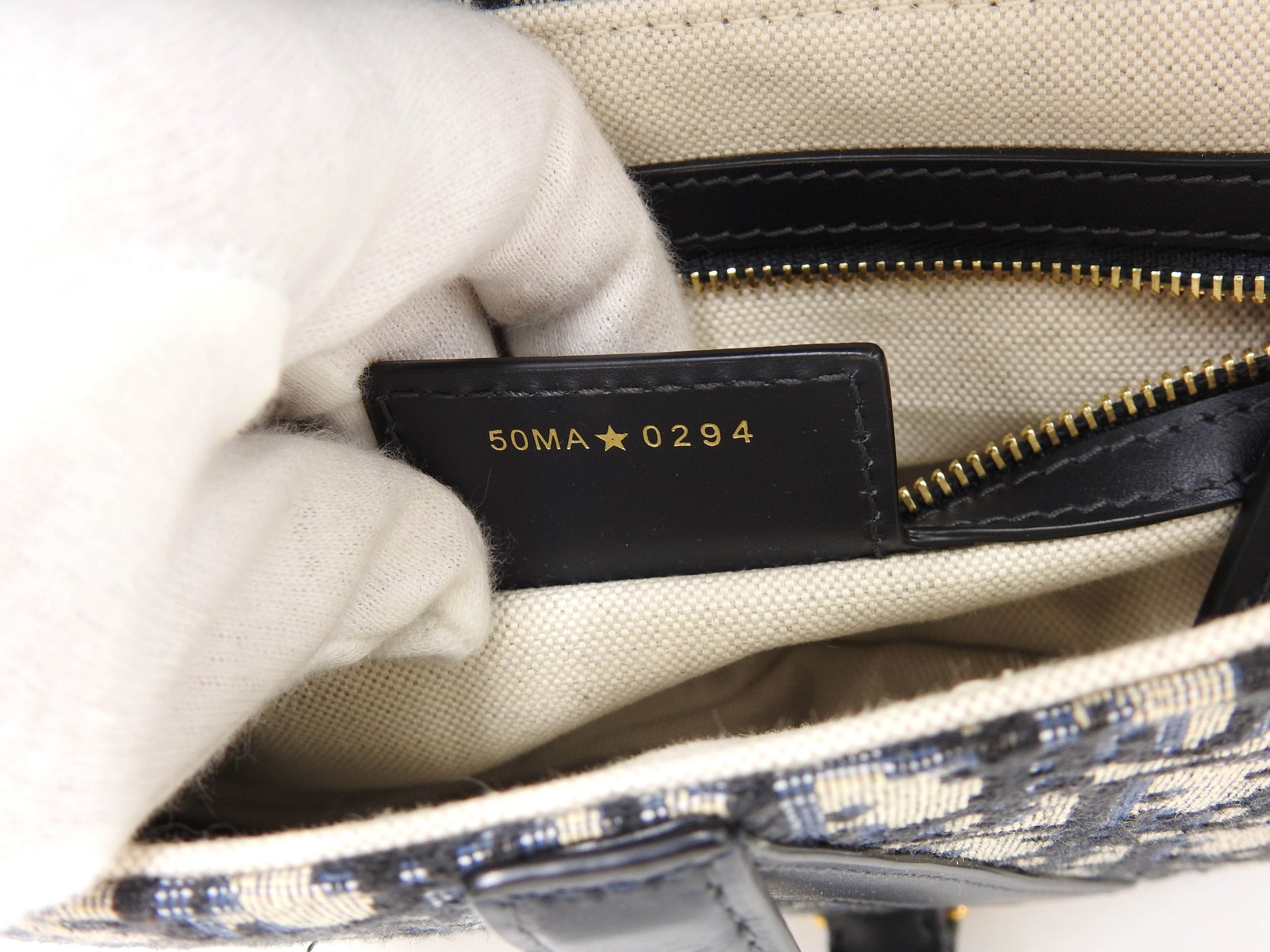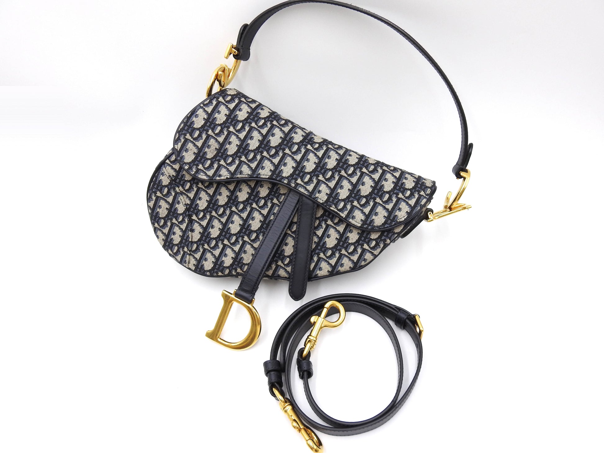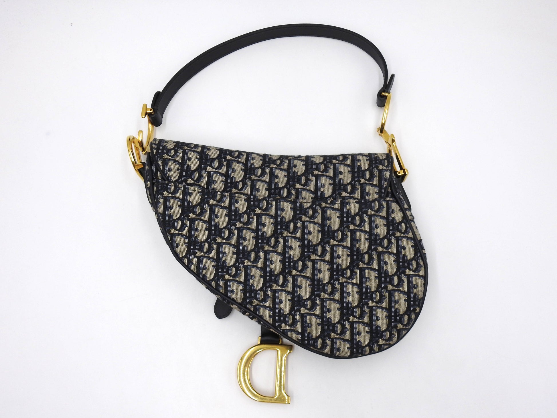 Christian Dior Oblique Jacquard Saddle Bag Shoulder Hand Bag Leather Navy