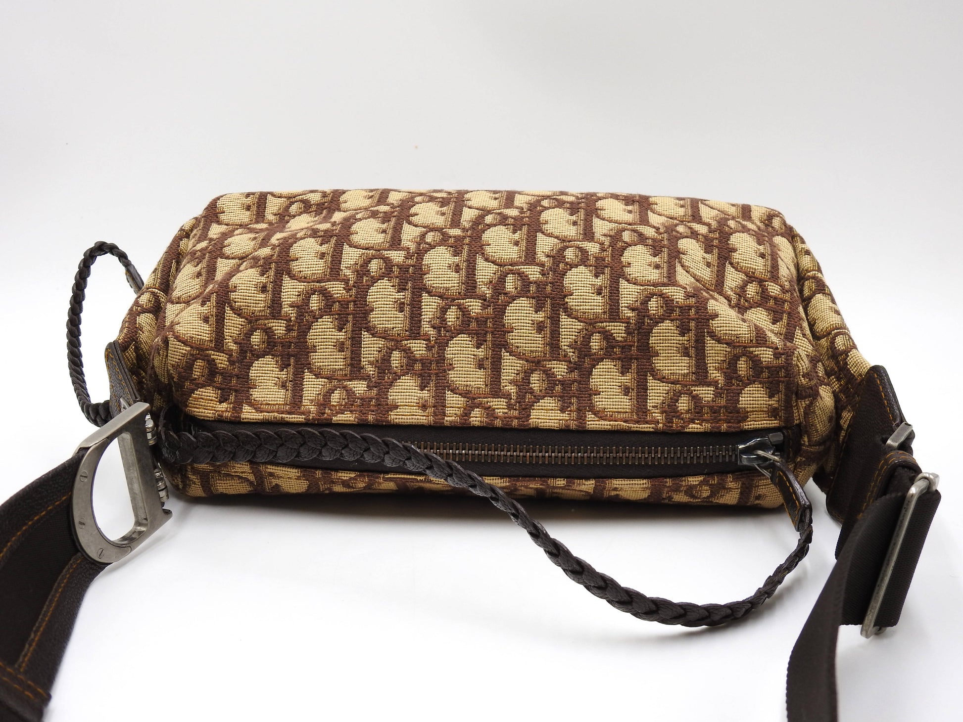 Christian Dior Trotter Flight Crossbody Shoulder Bag Canvas Leather Brown