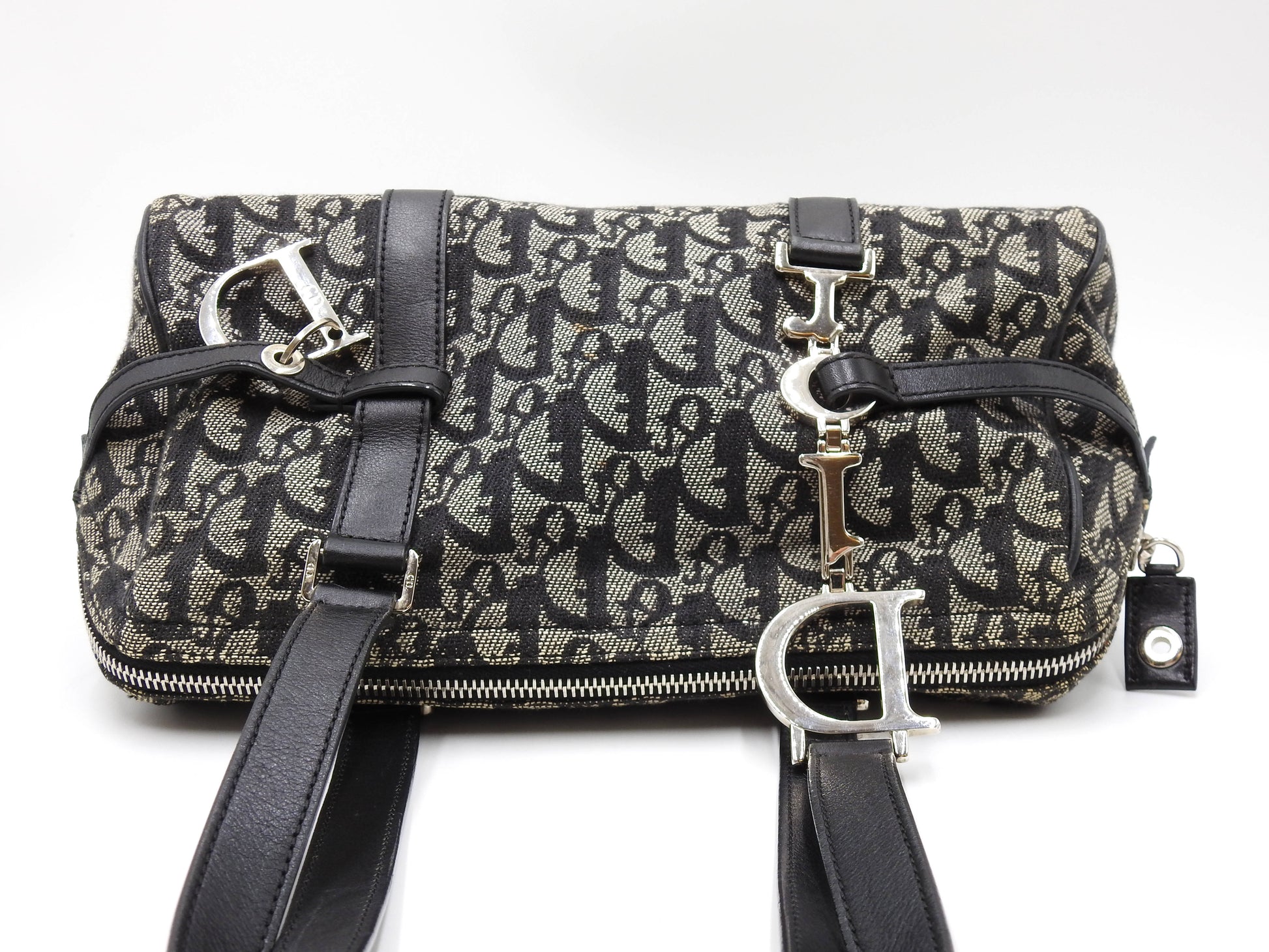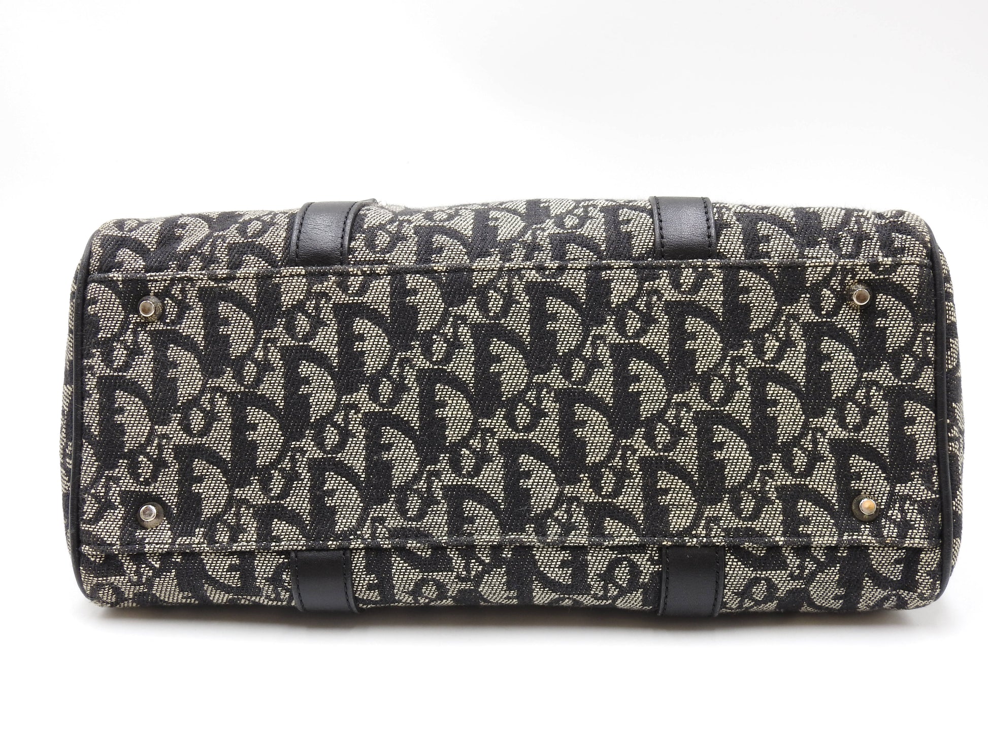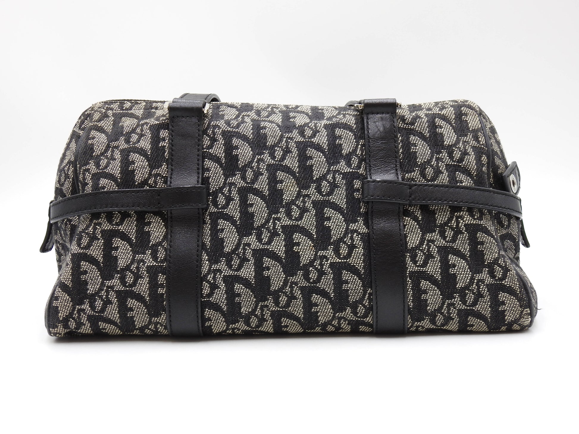 Christian Dior Trotter Oblique Boston Hand Bag Canvas Leather Black