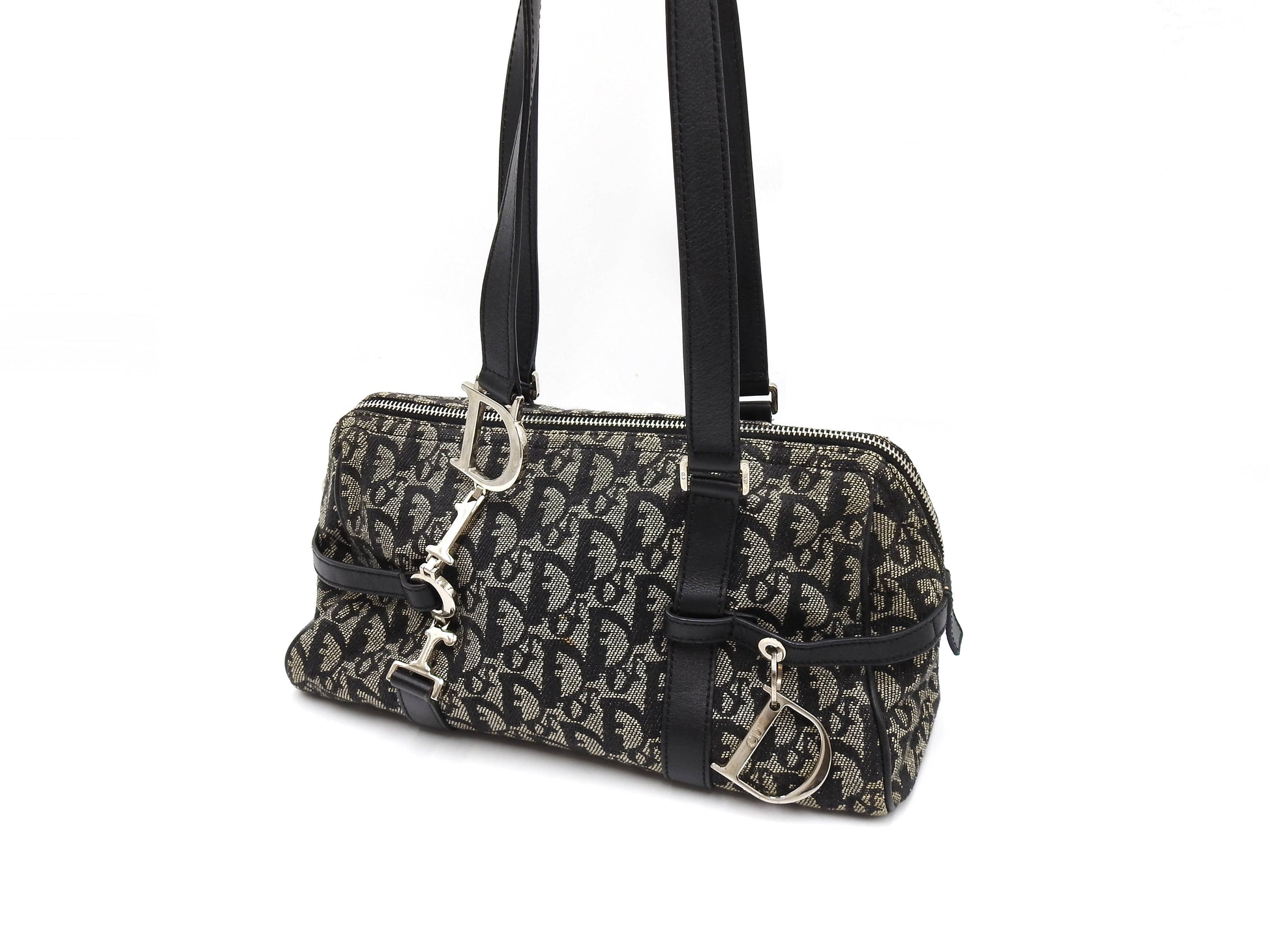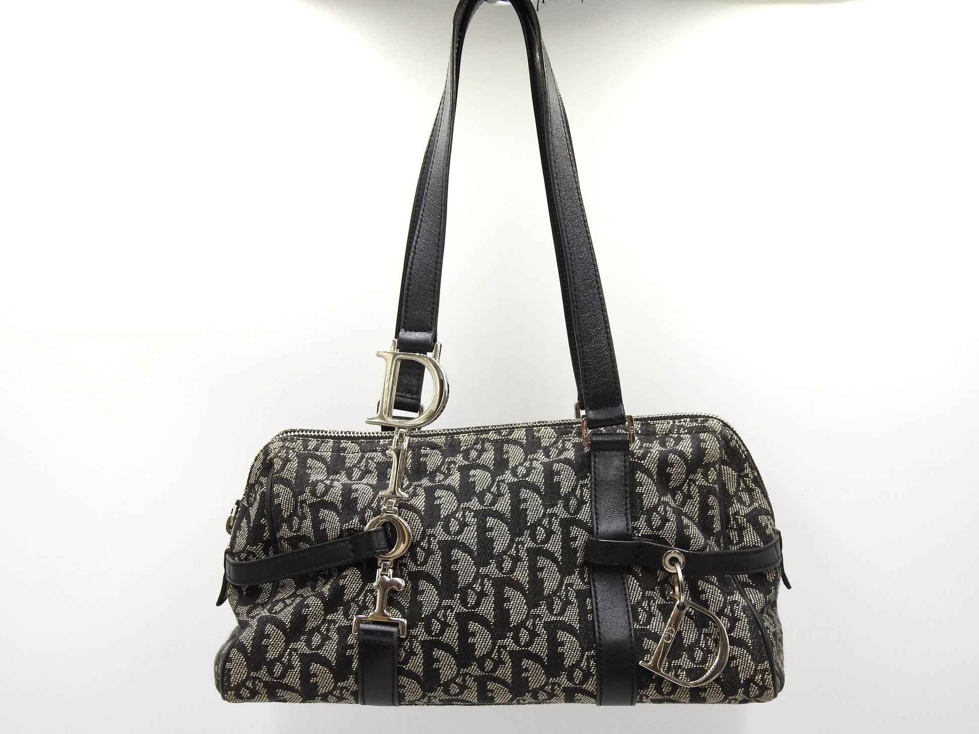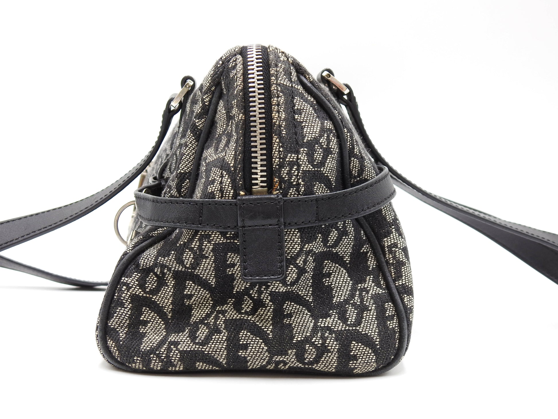 Christian Dior Trotter Oblique Boston Hand Bag Canvas Leather Black