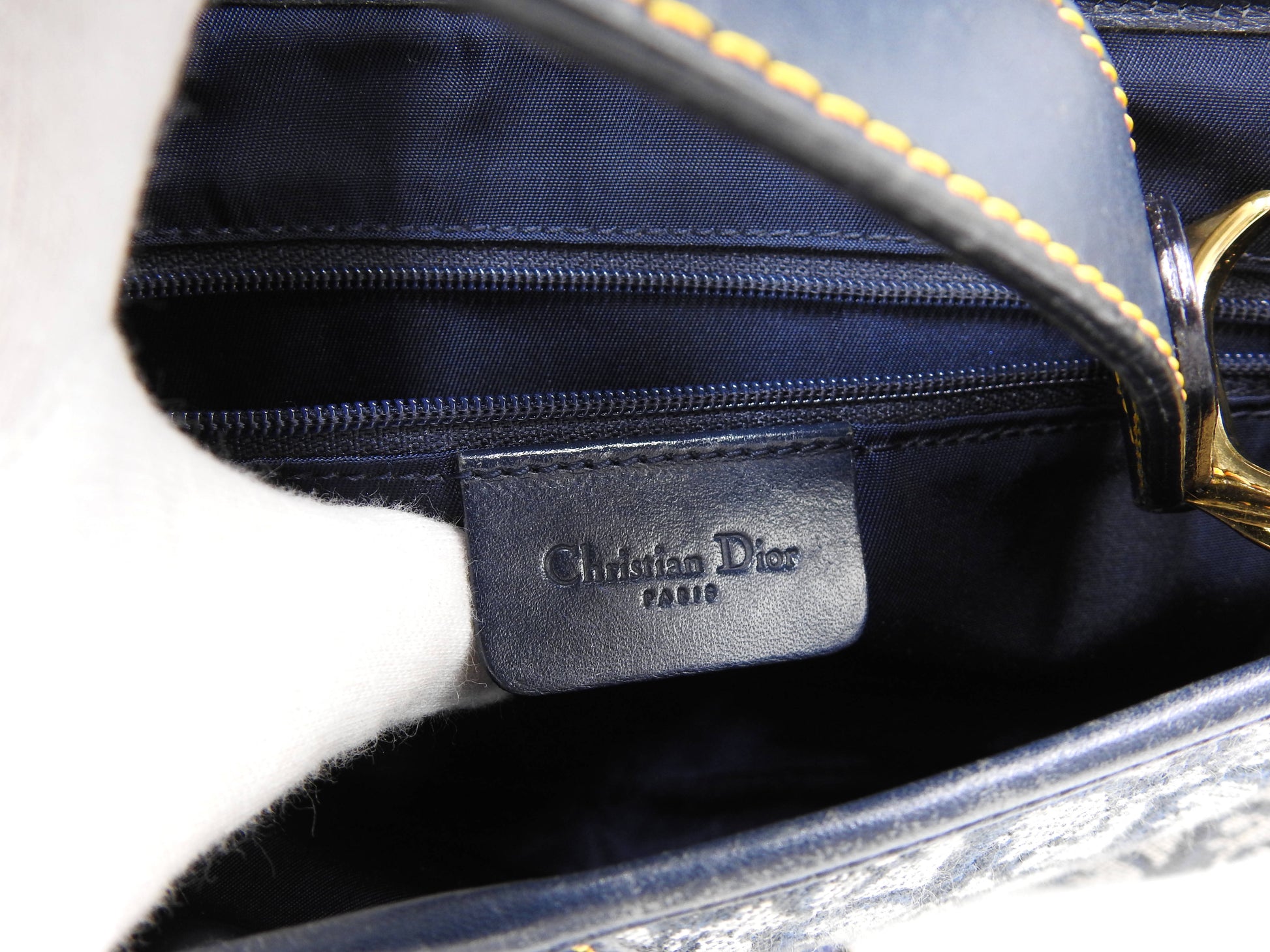 Christian Dior Trotter Oblique W Saddle Bag Shoulder Hand Bag Canvas Navy