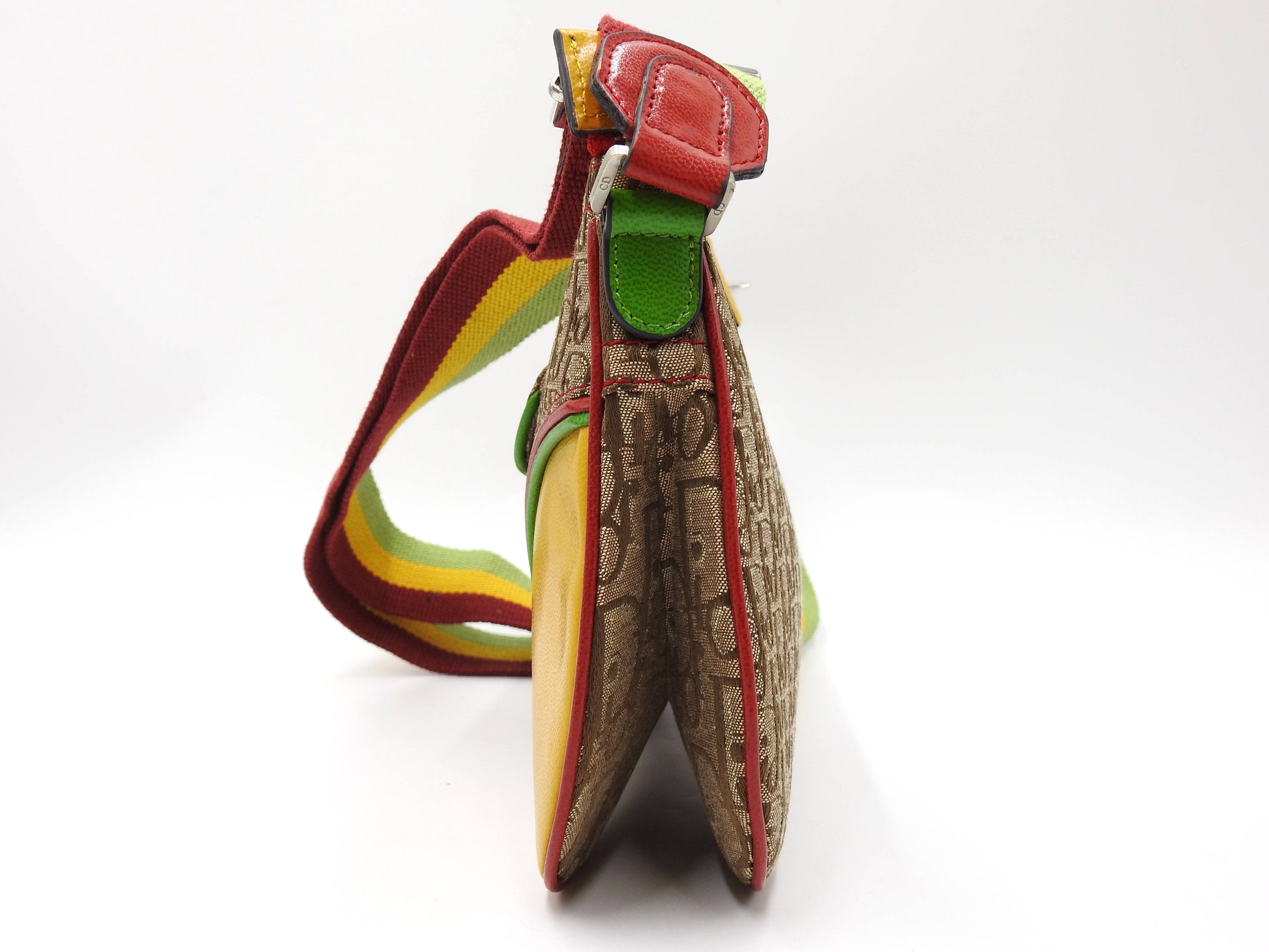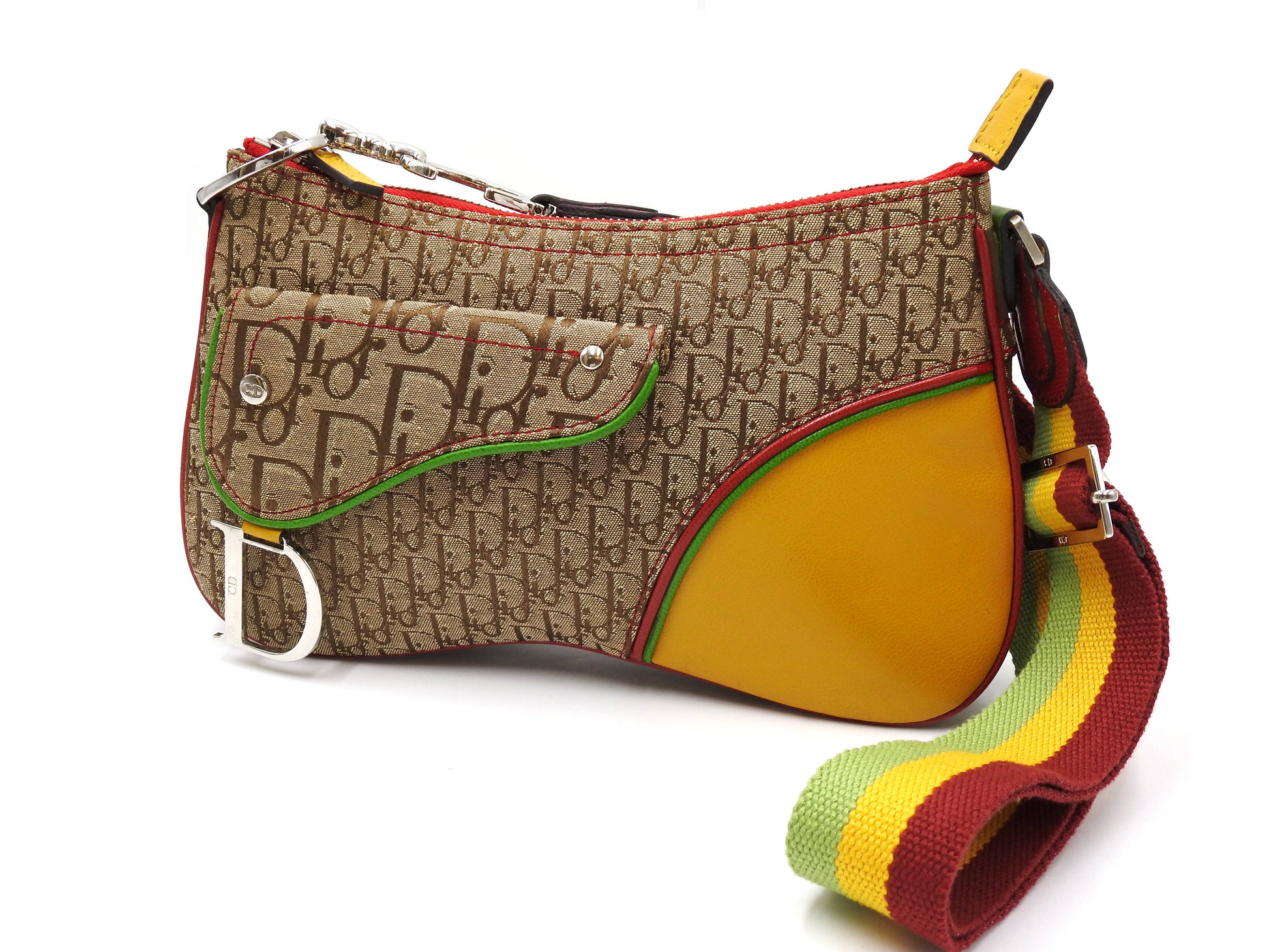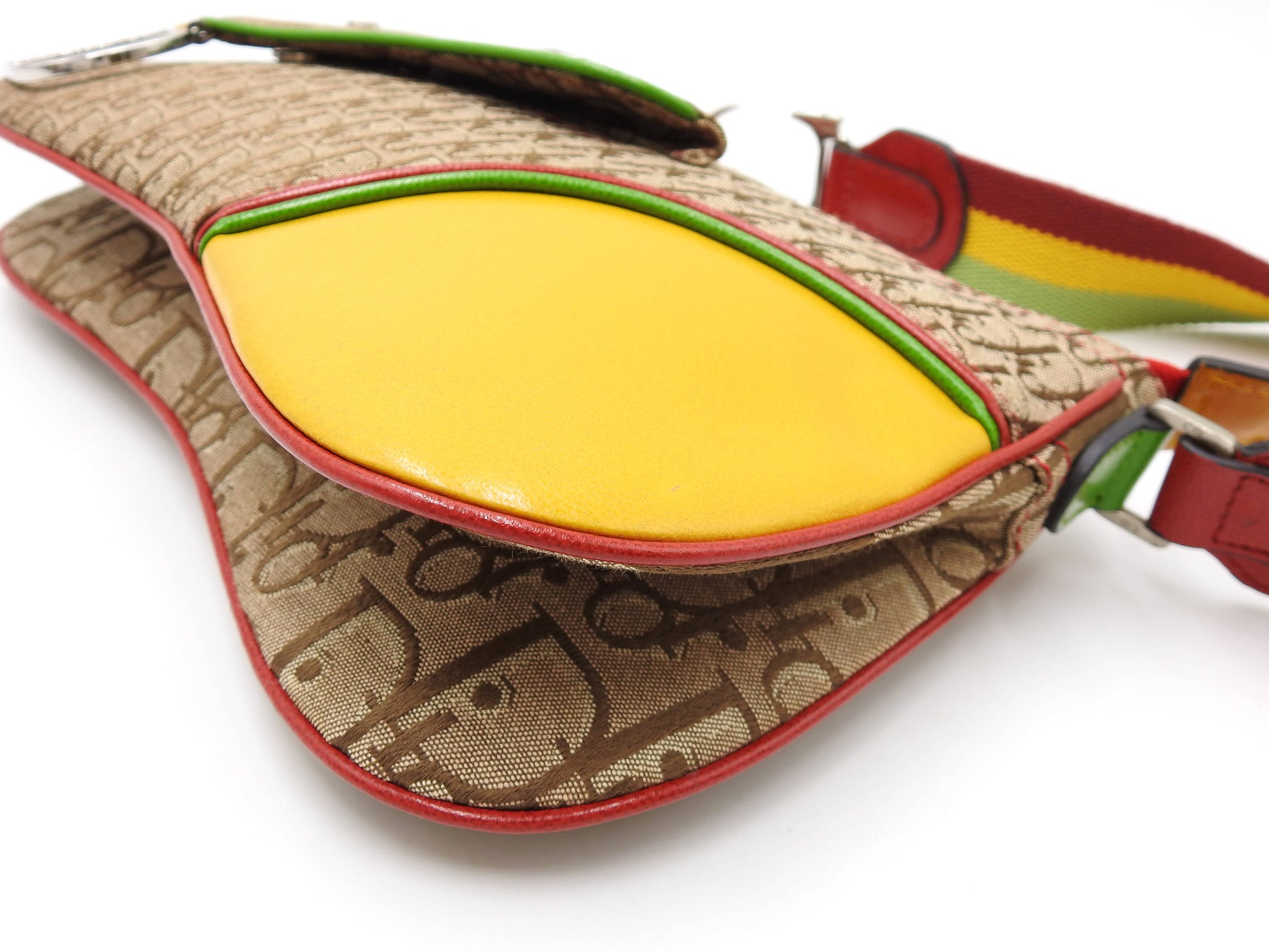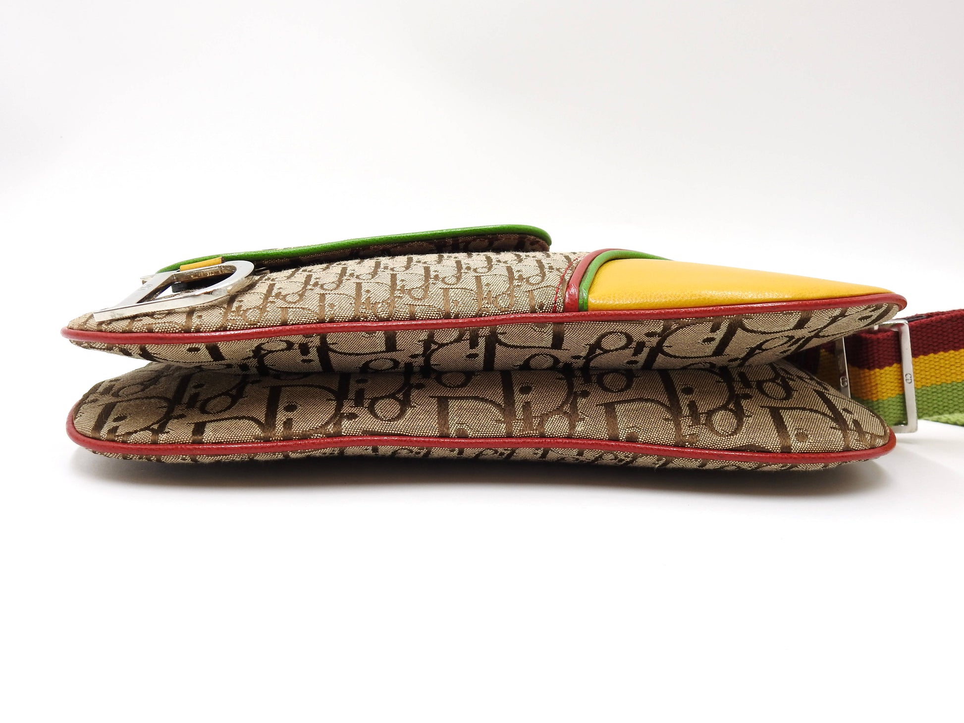 Christian Dior Trotter Rasta Saddle Crossbody Shoulder Bag Canvas Beige