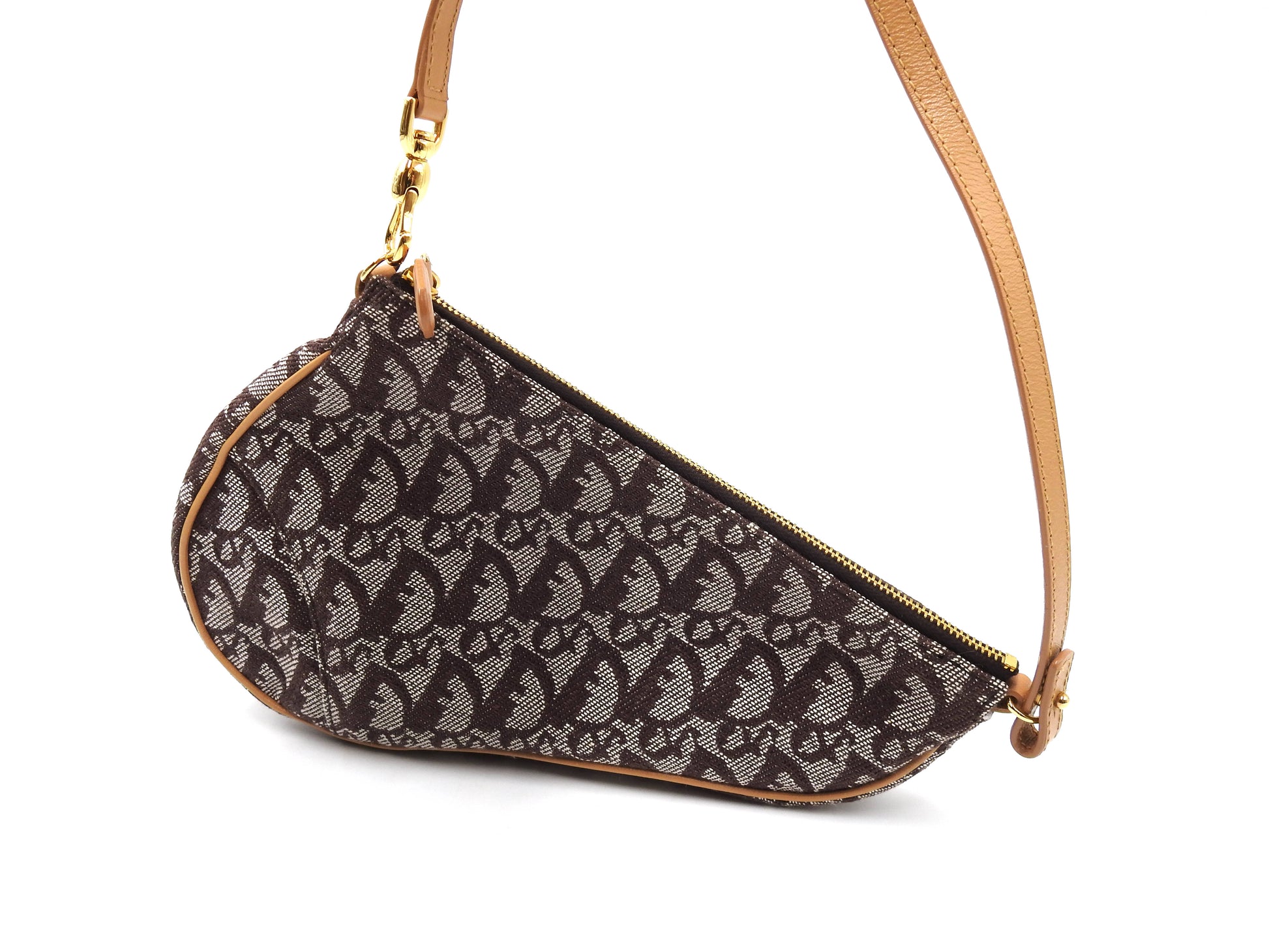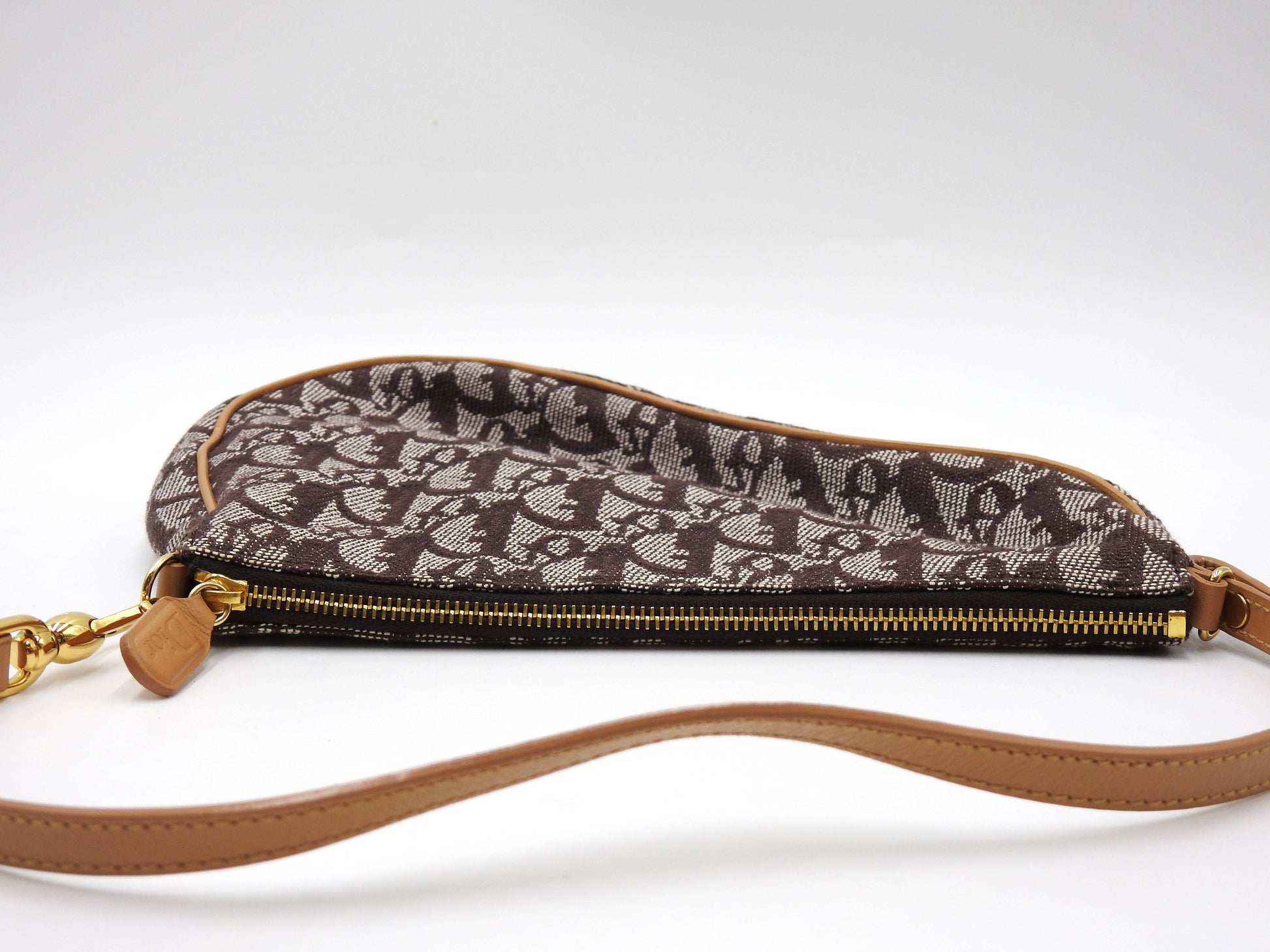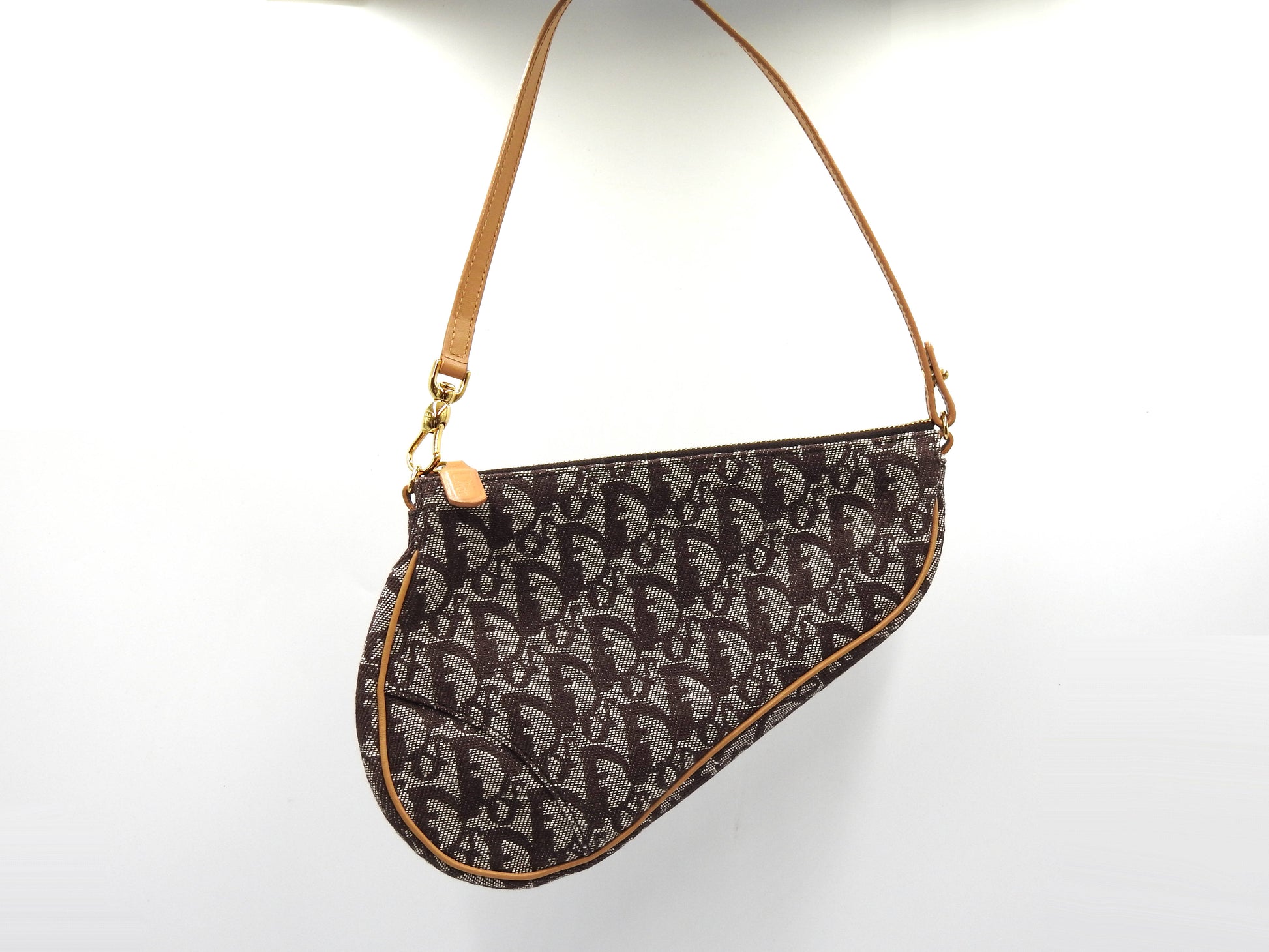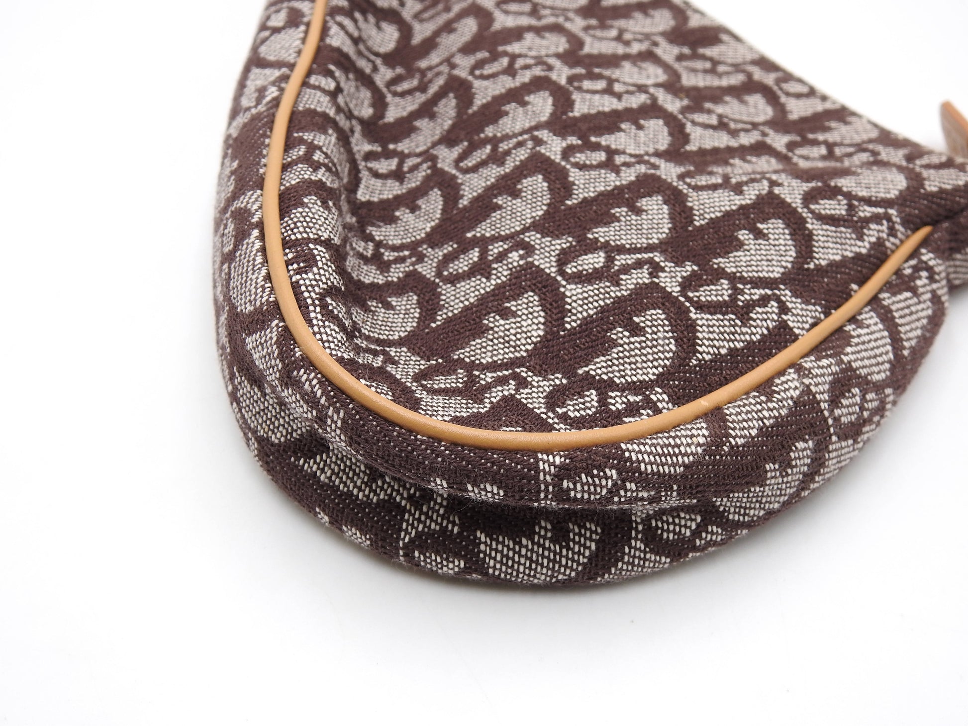 Christian Dior Trotter Saddle Pouch Shoulder Hand Bag Canvas Leather Brown