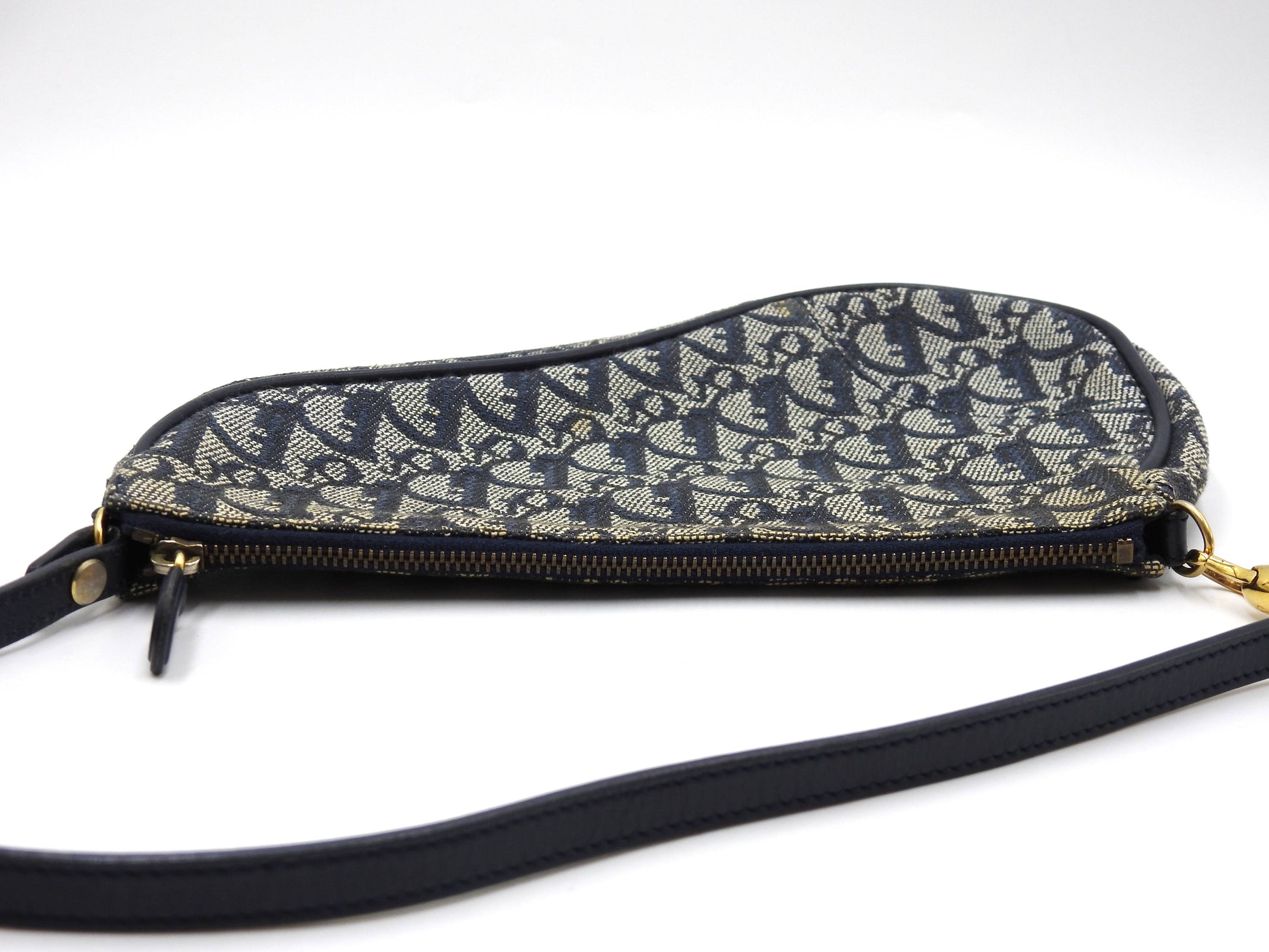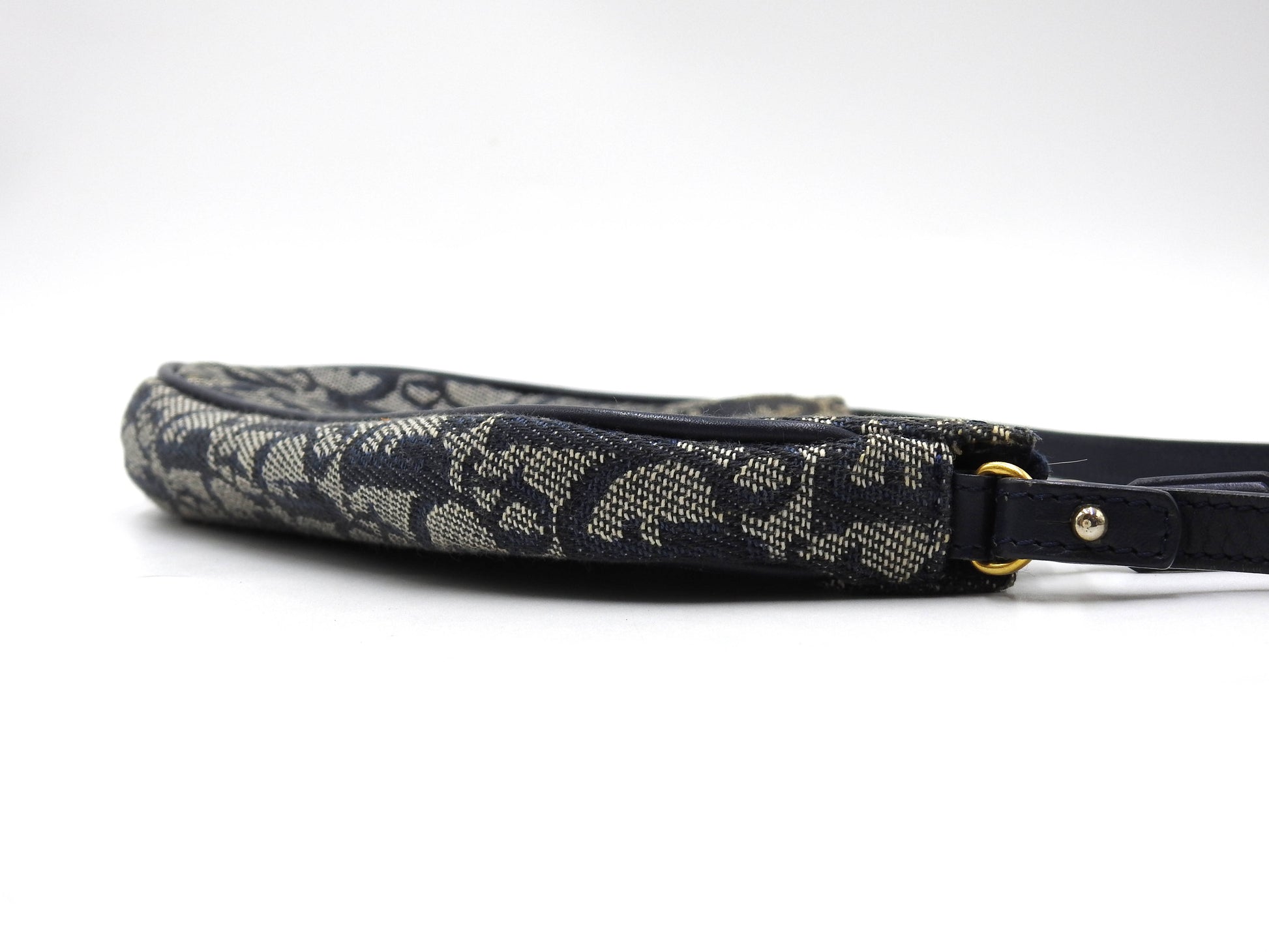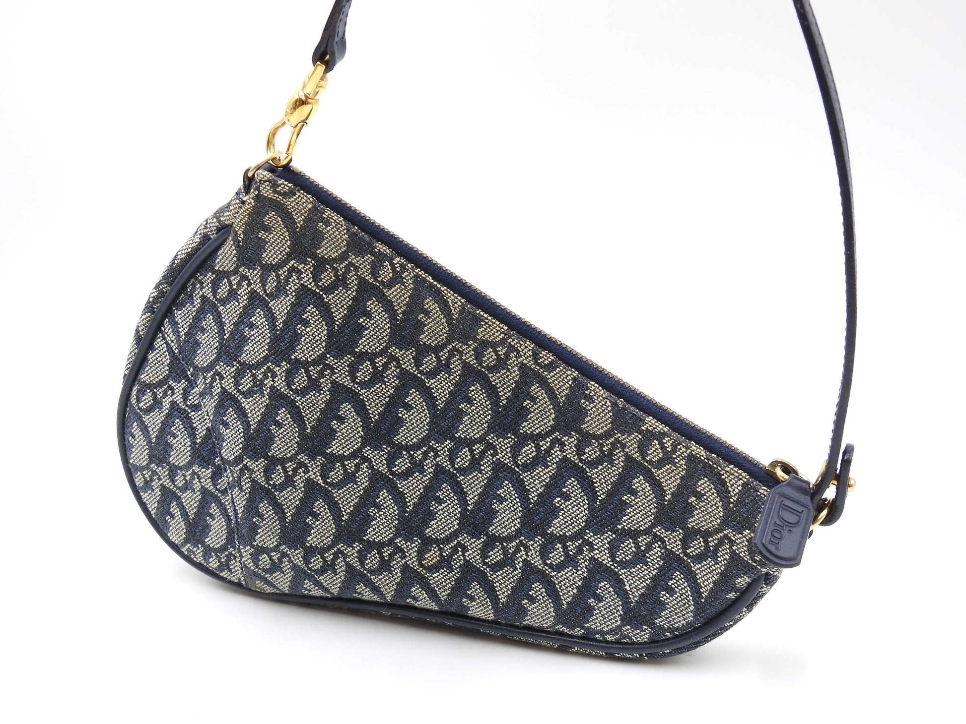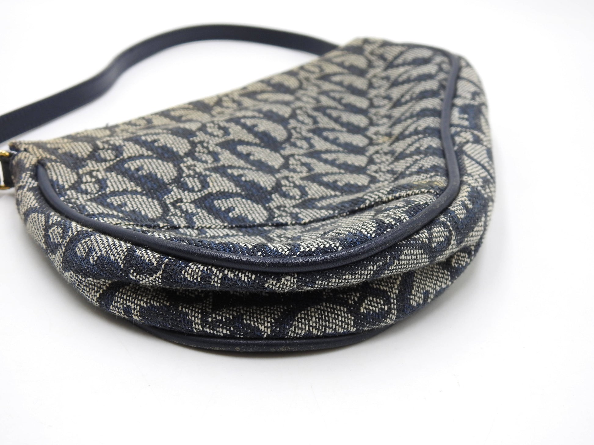 Christian Dior Trotter Saddle Pouch Shoulder Hand Bag Canvas Leather Navy
