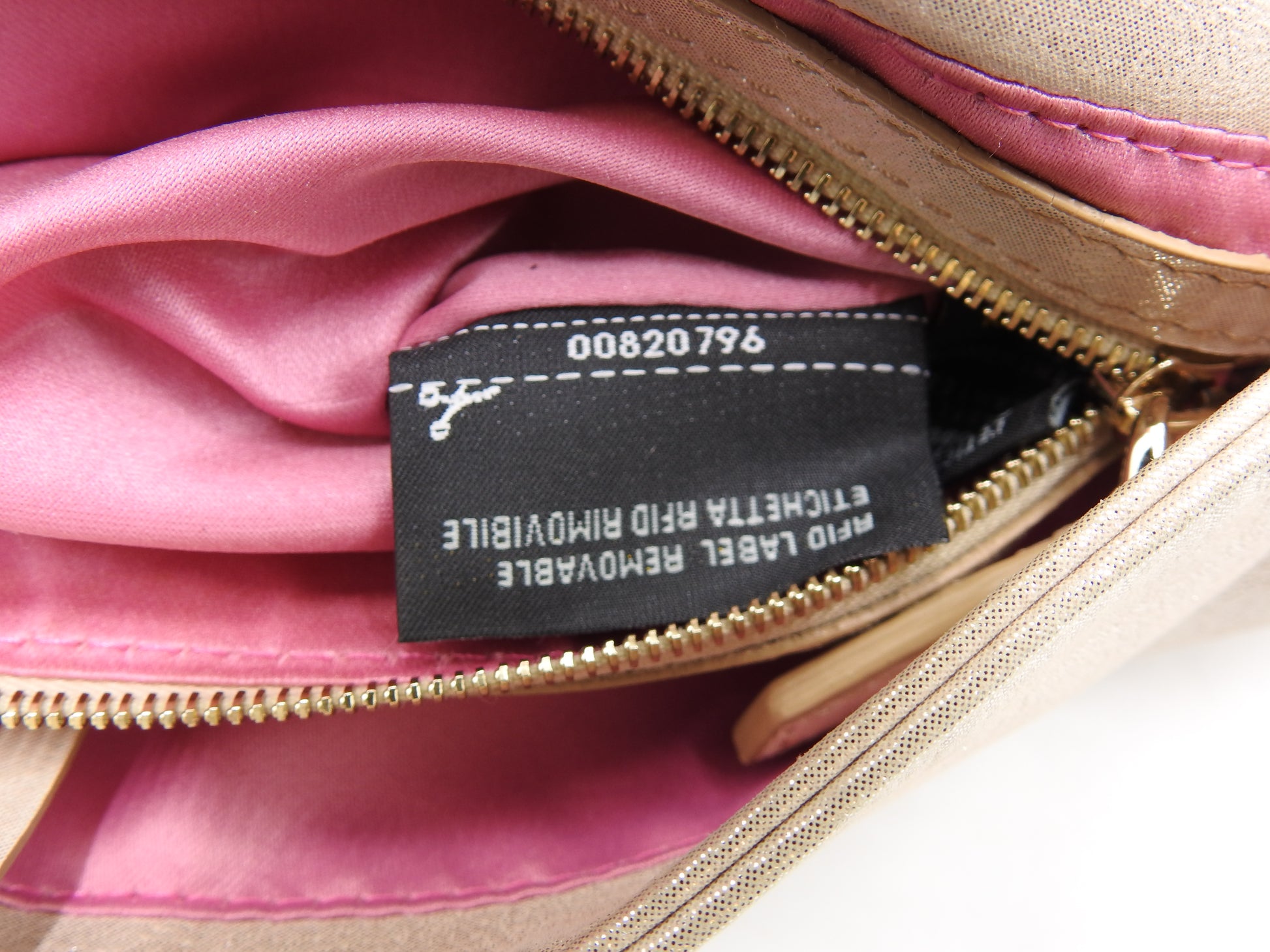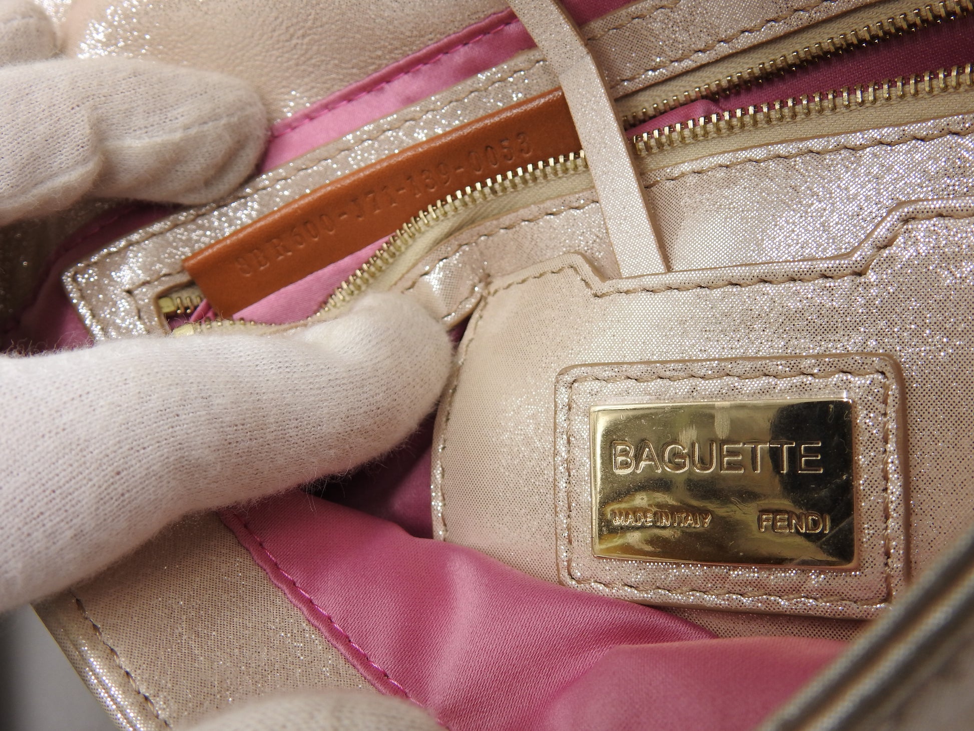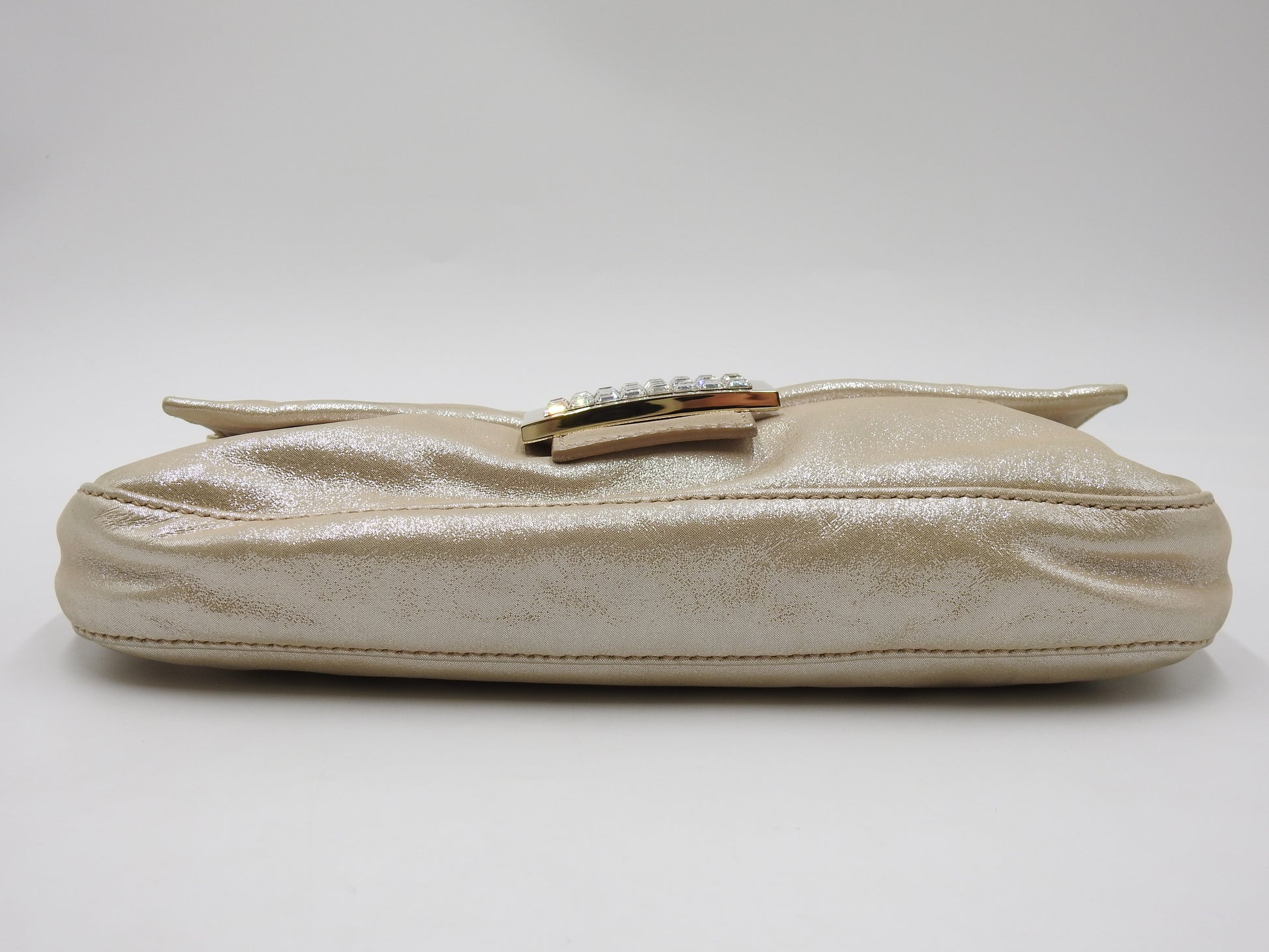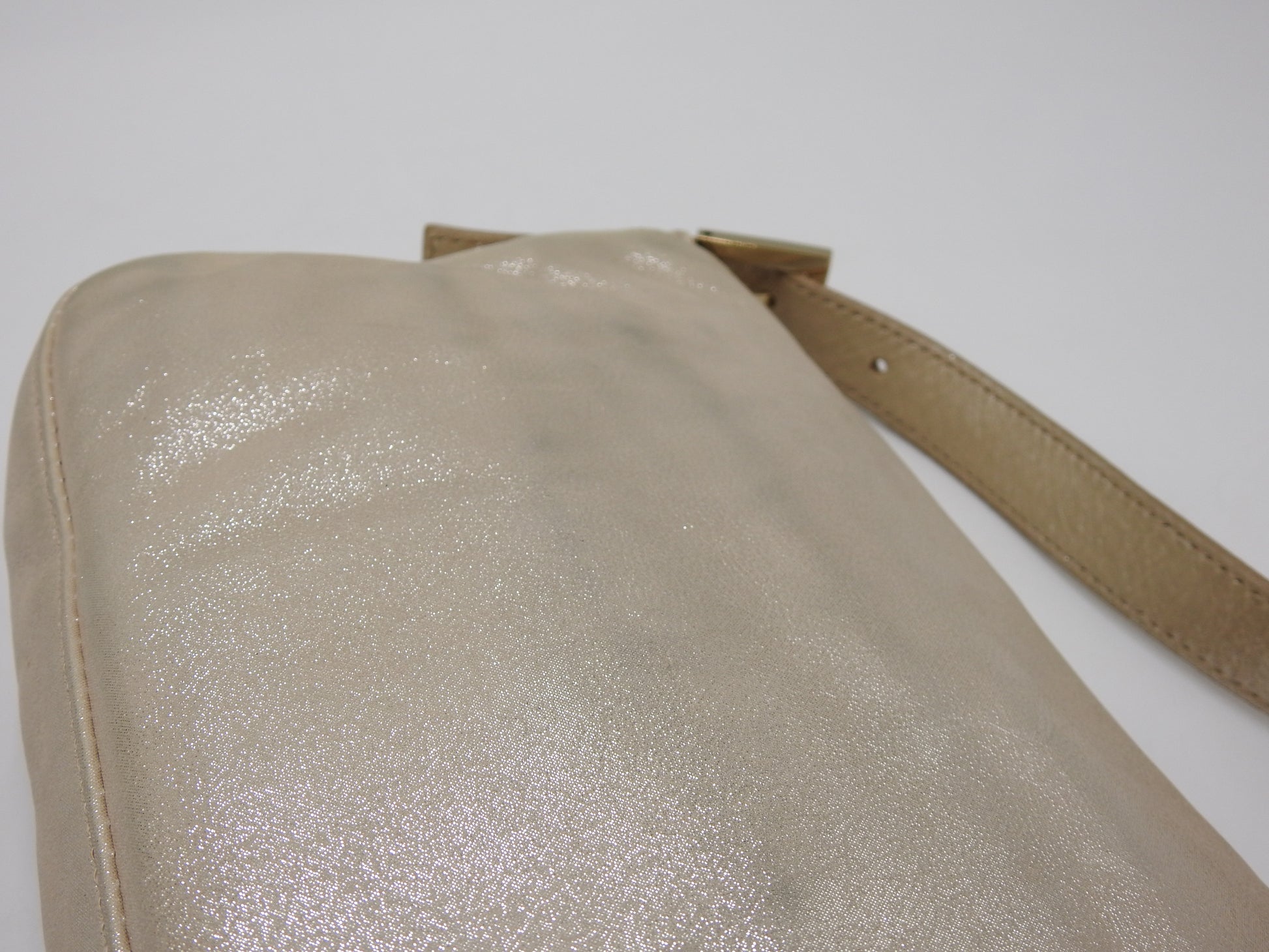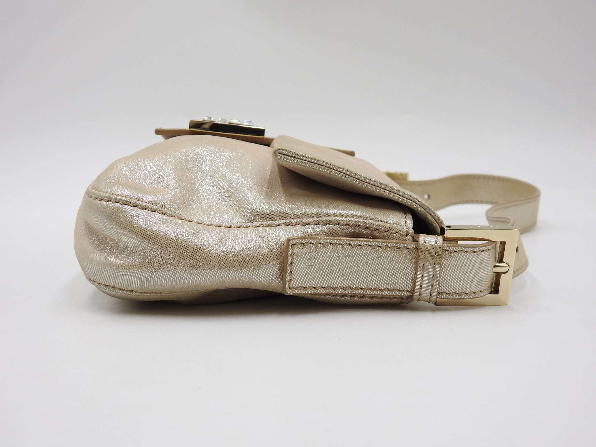 FENDI Crystal Mamma Baguette Shoulder Hand Bag Leather Beige Gold 8BR600