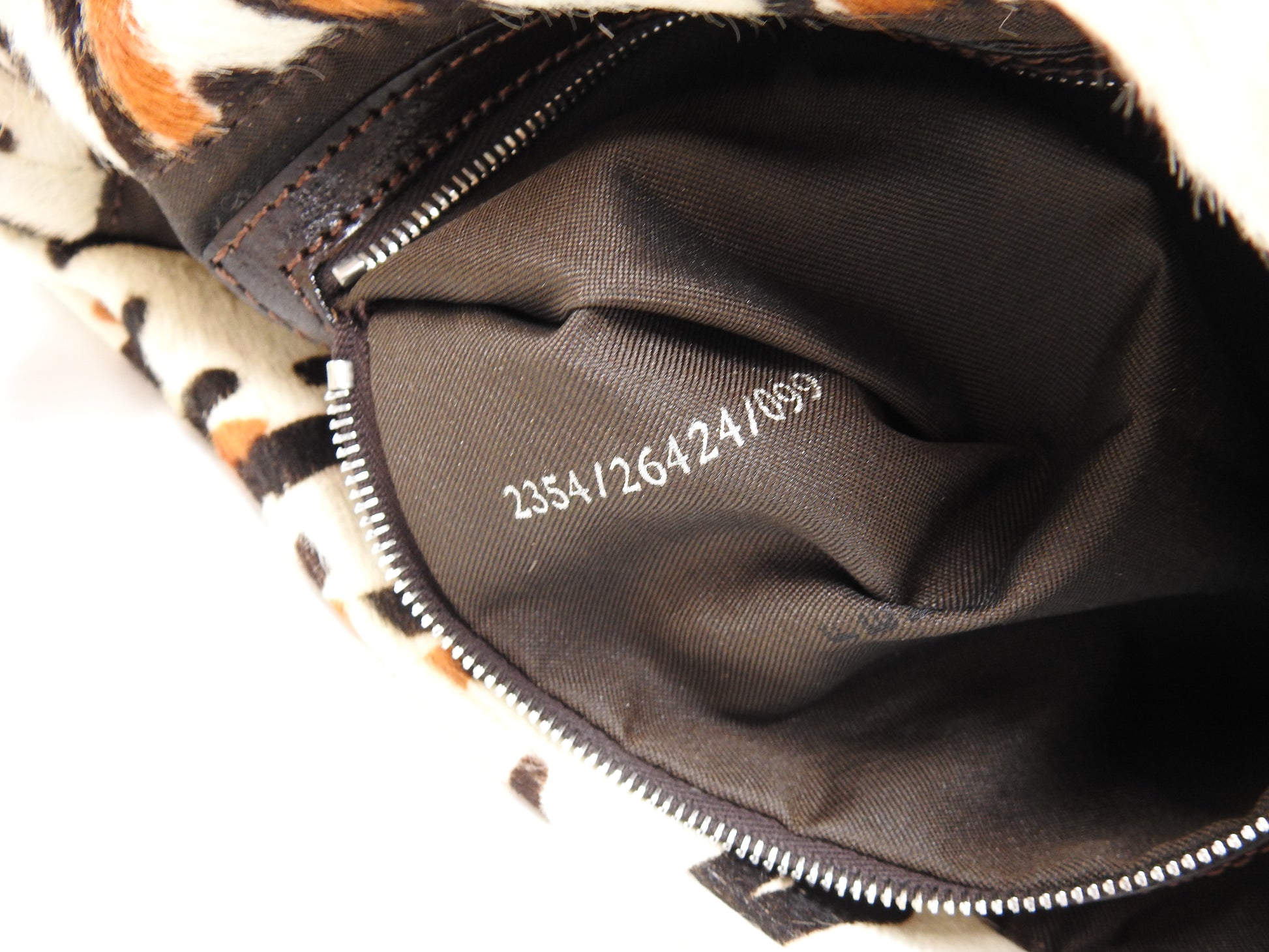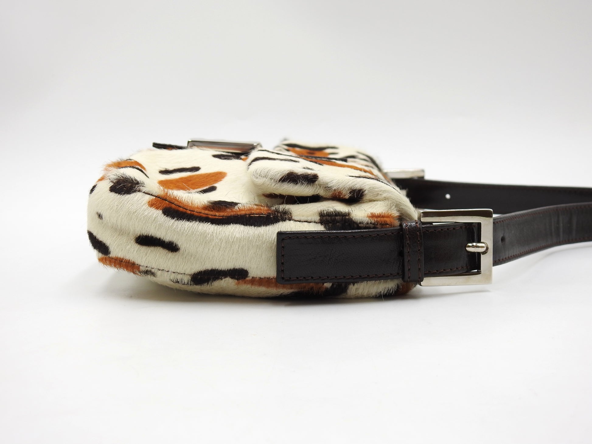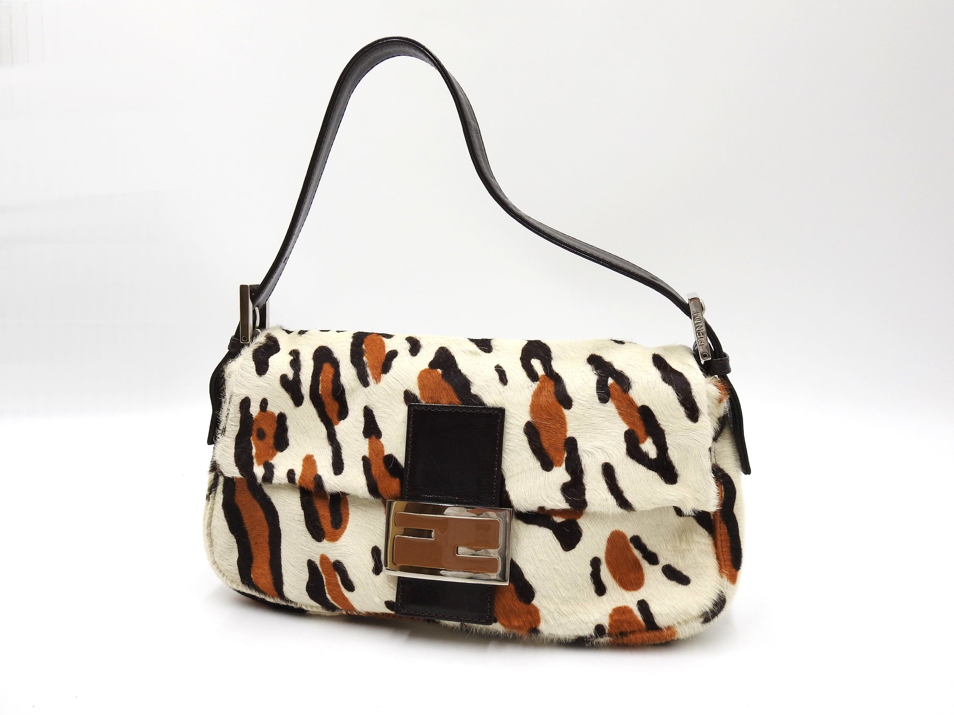FENDI Leopard Mamma Baguette Shoulder Hand Bag Leather White Brown Silver