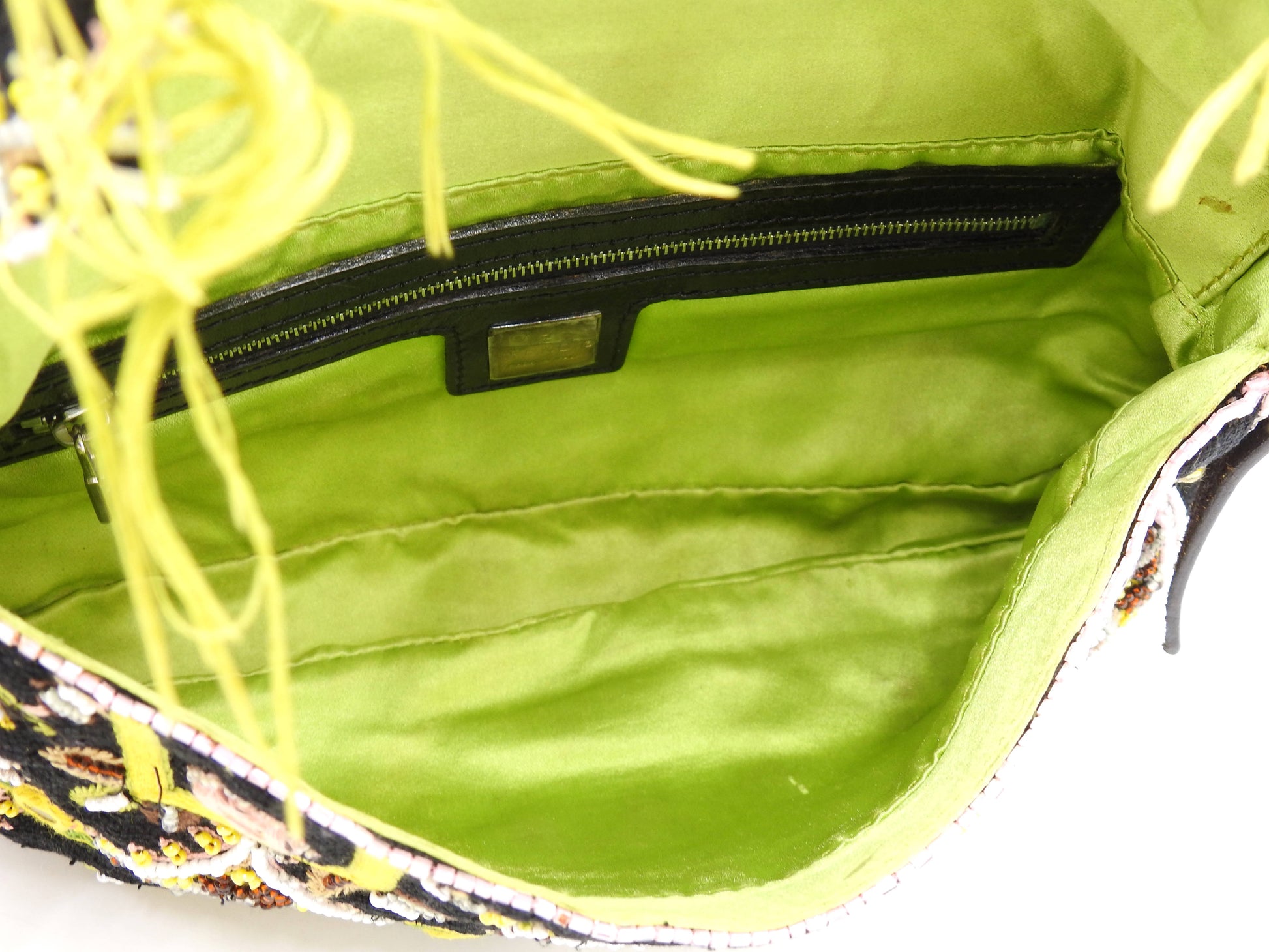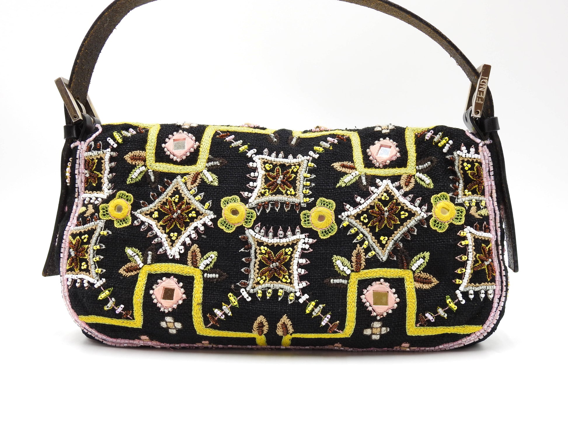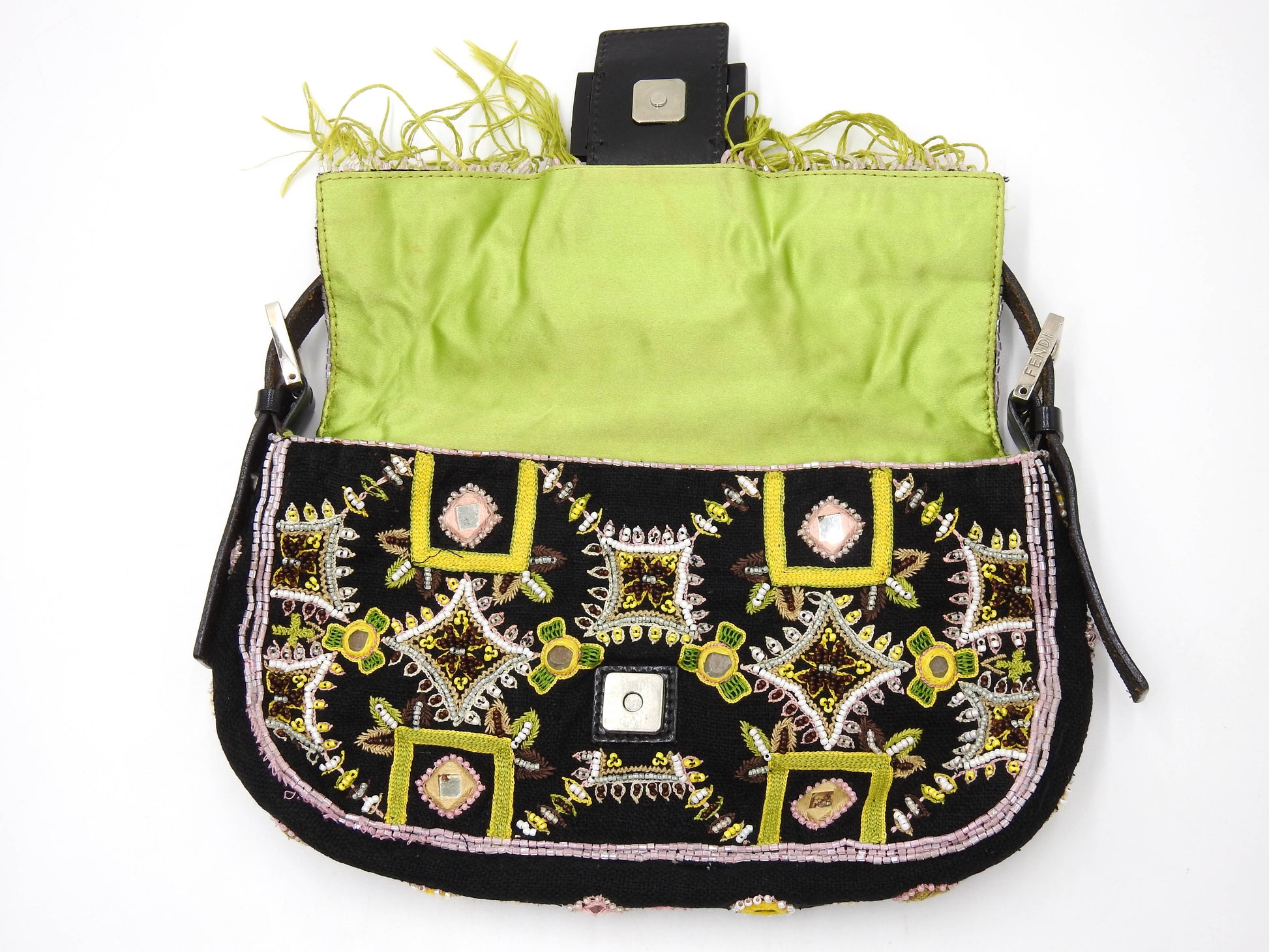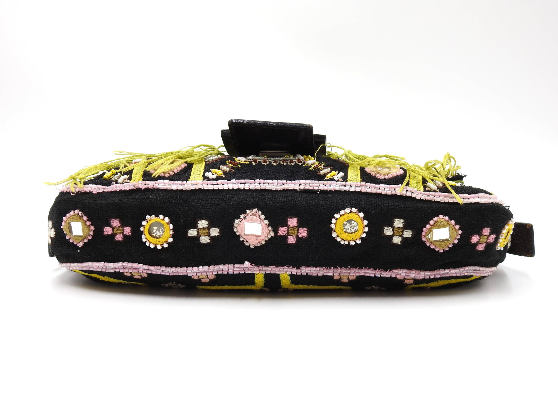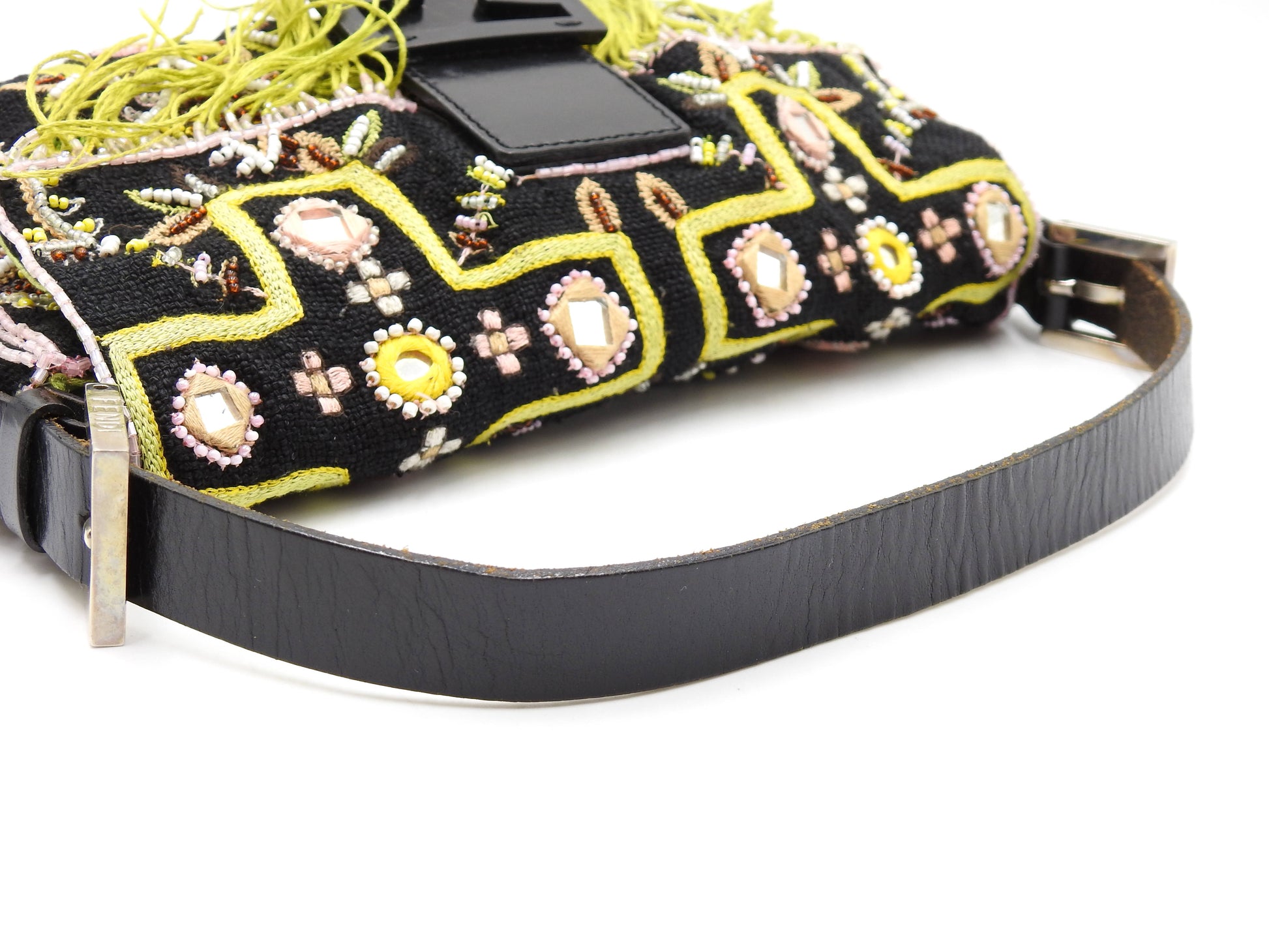 FENDI Mamma Baguette Shoulder Hand Bag Embroidered Beaded Fringe Black