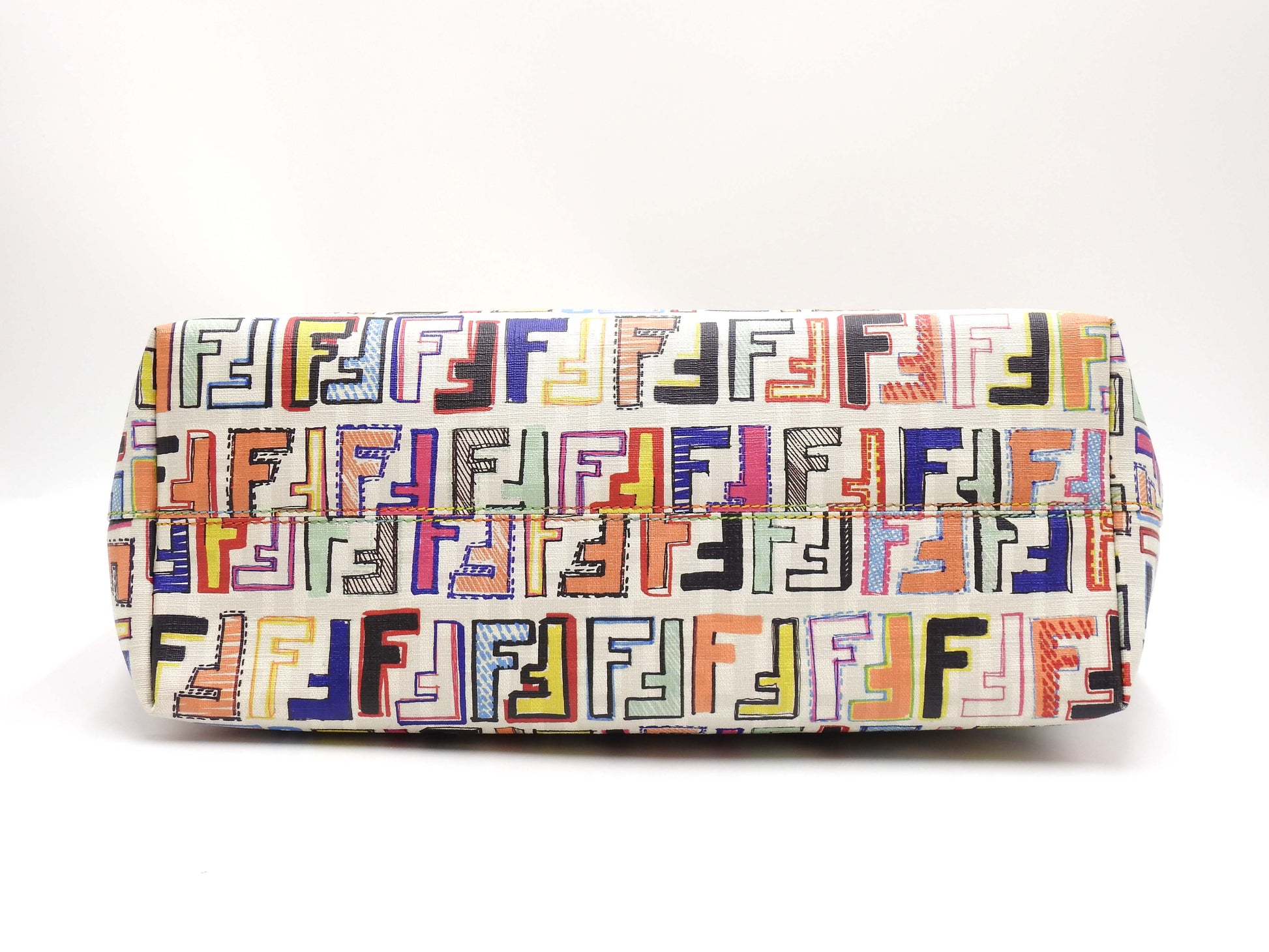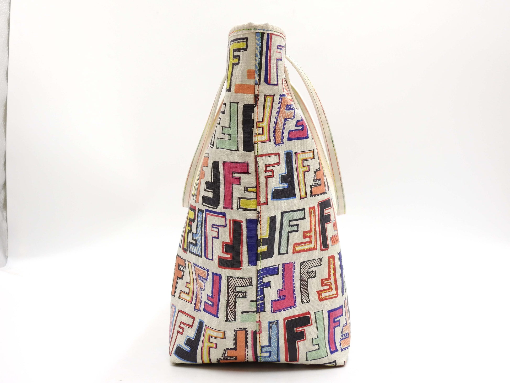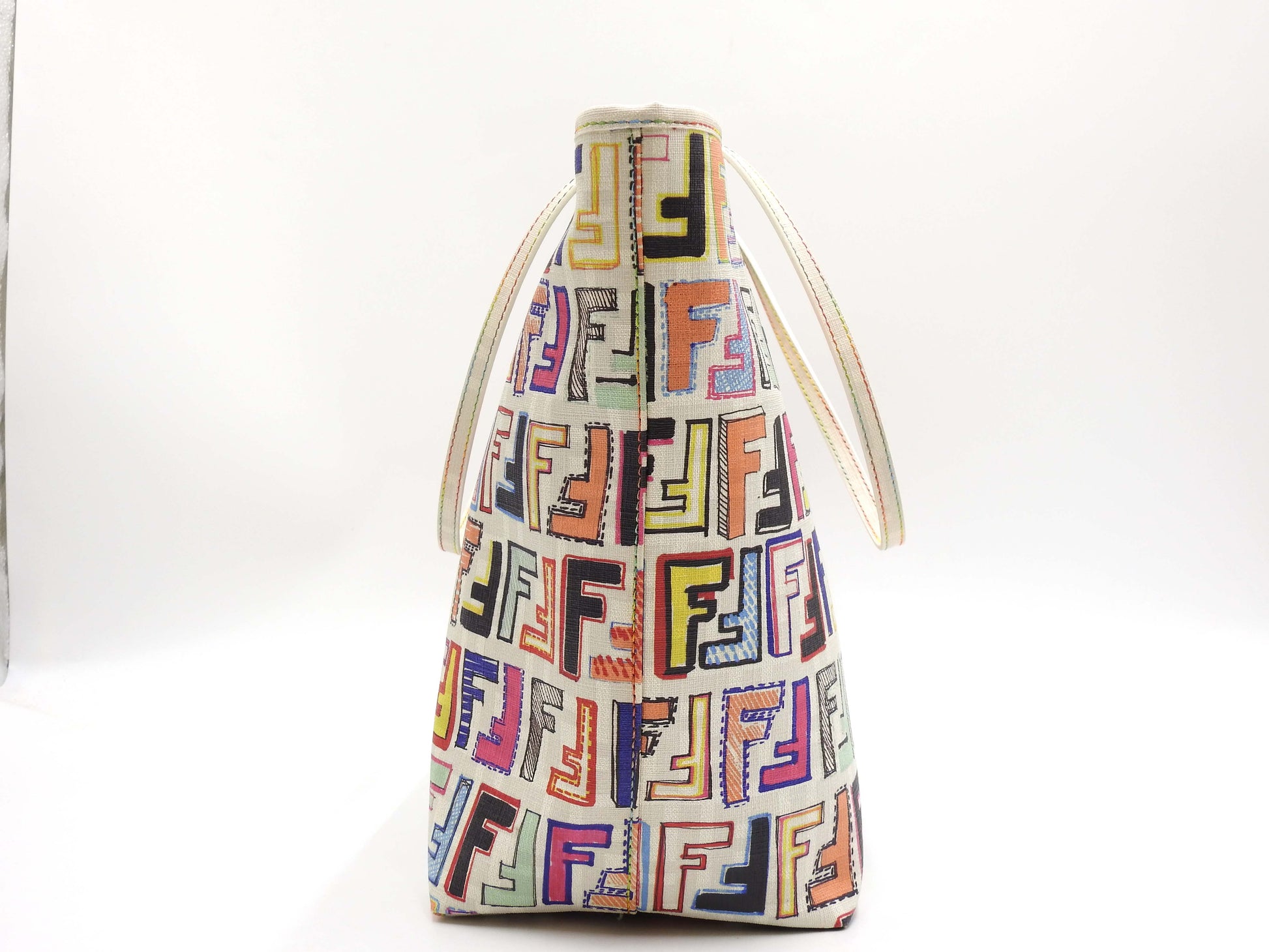 FENDI Zucca Toe Roll Bag Shoulder Bag PVC Canvas White Multicolor 8BH185