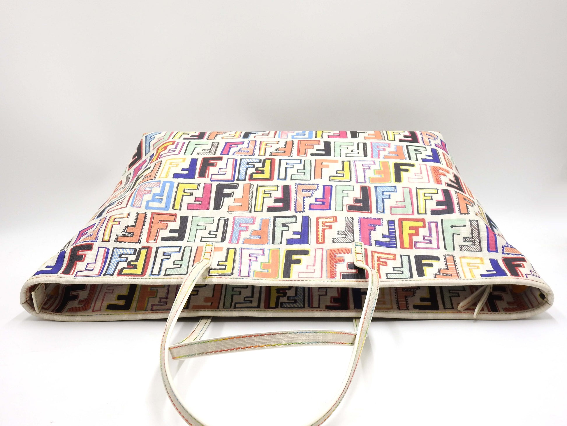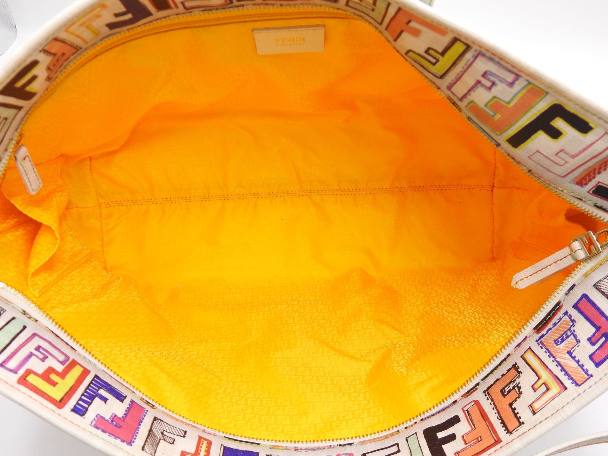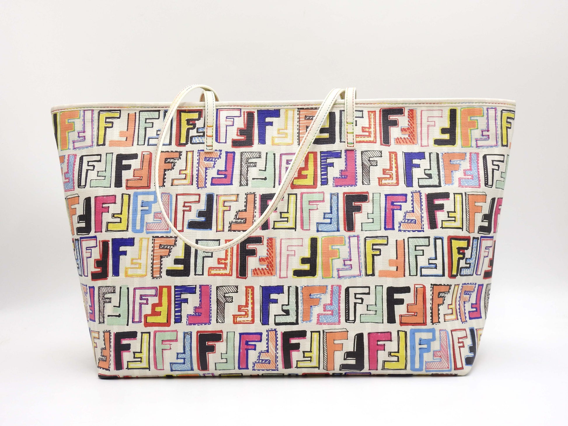 FENDI Zucca Toe Roll Bag Shoulder Bag PVC Canvas White Multicolor 8BH185