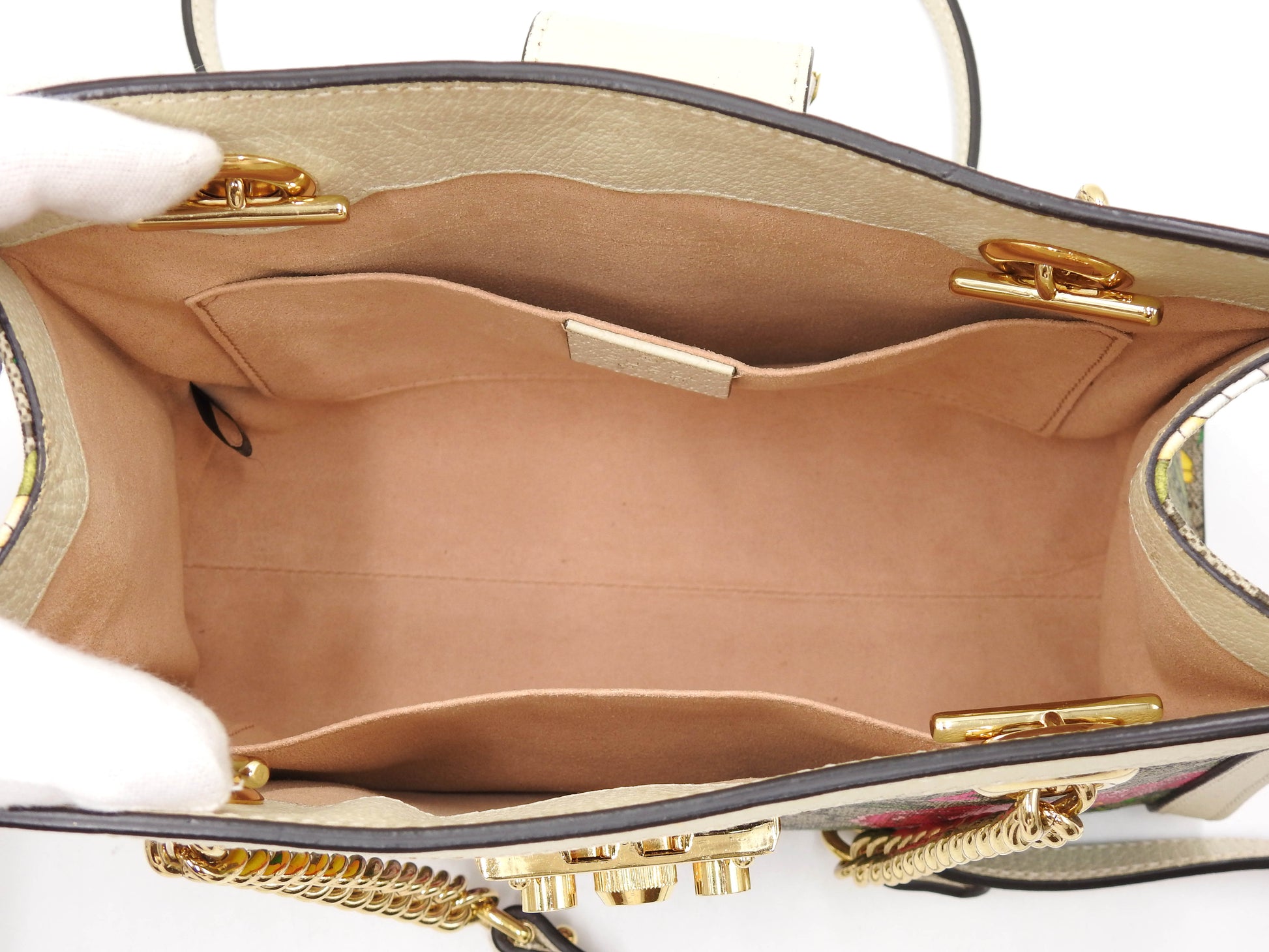 GUCCI GG Flora Supreme Padlock Small Tote Shoulder Bag Beige White 498156