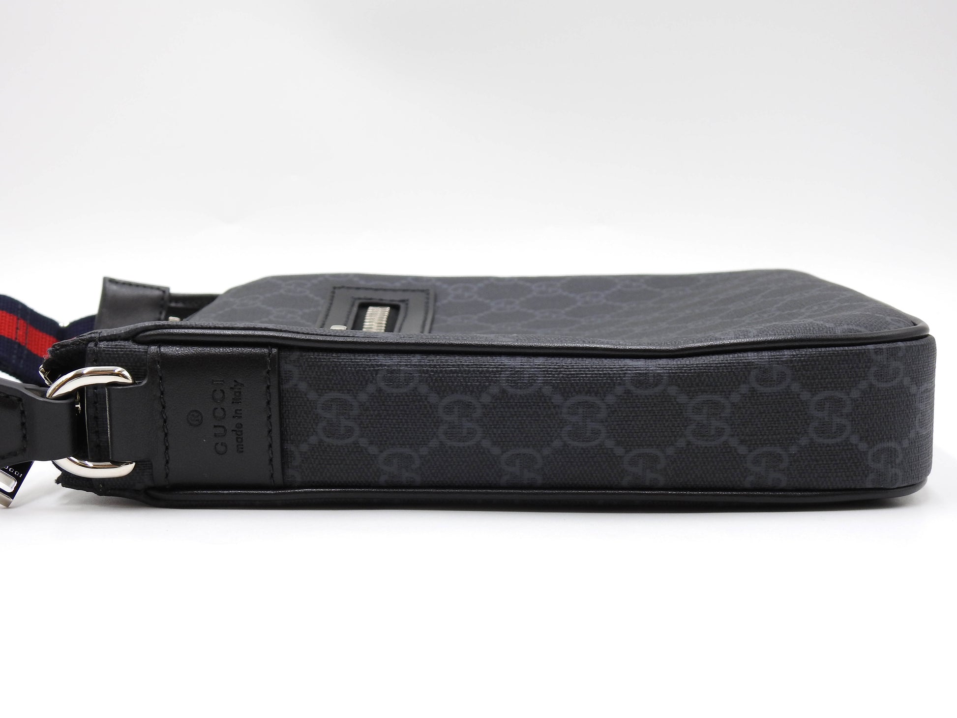 GUCCI GG Supreme Small Messenger Shoulder Bag PVC Leather Black 792082