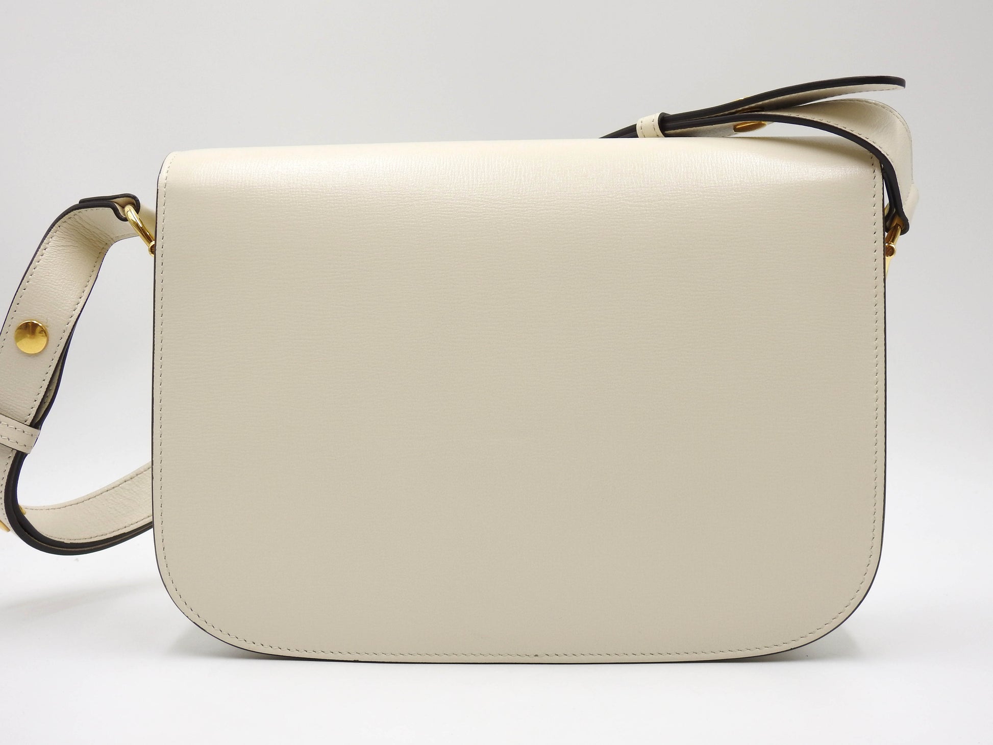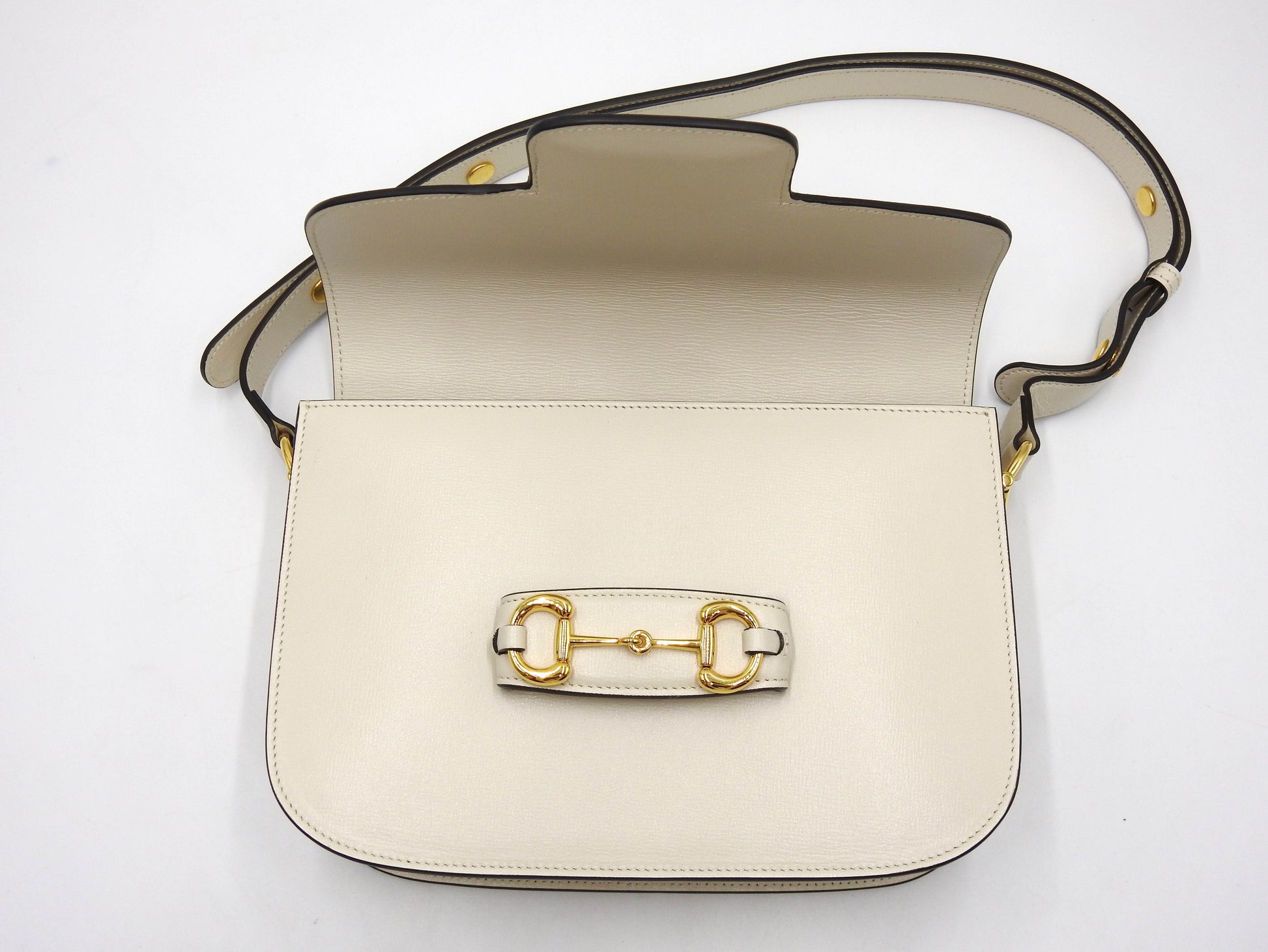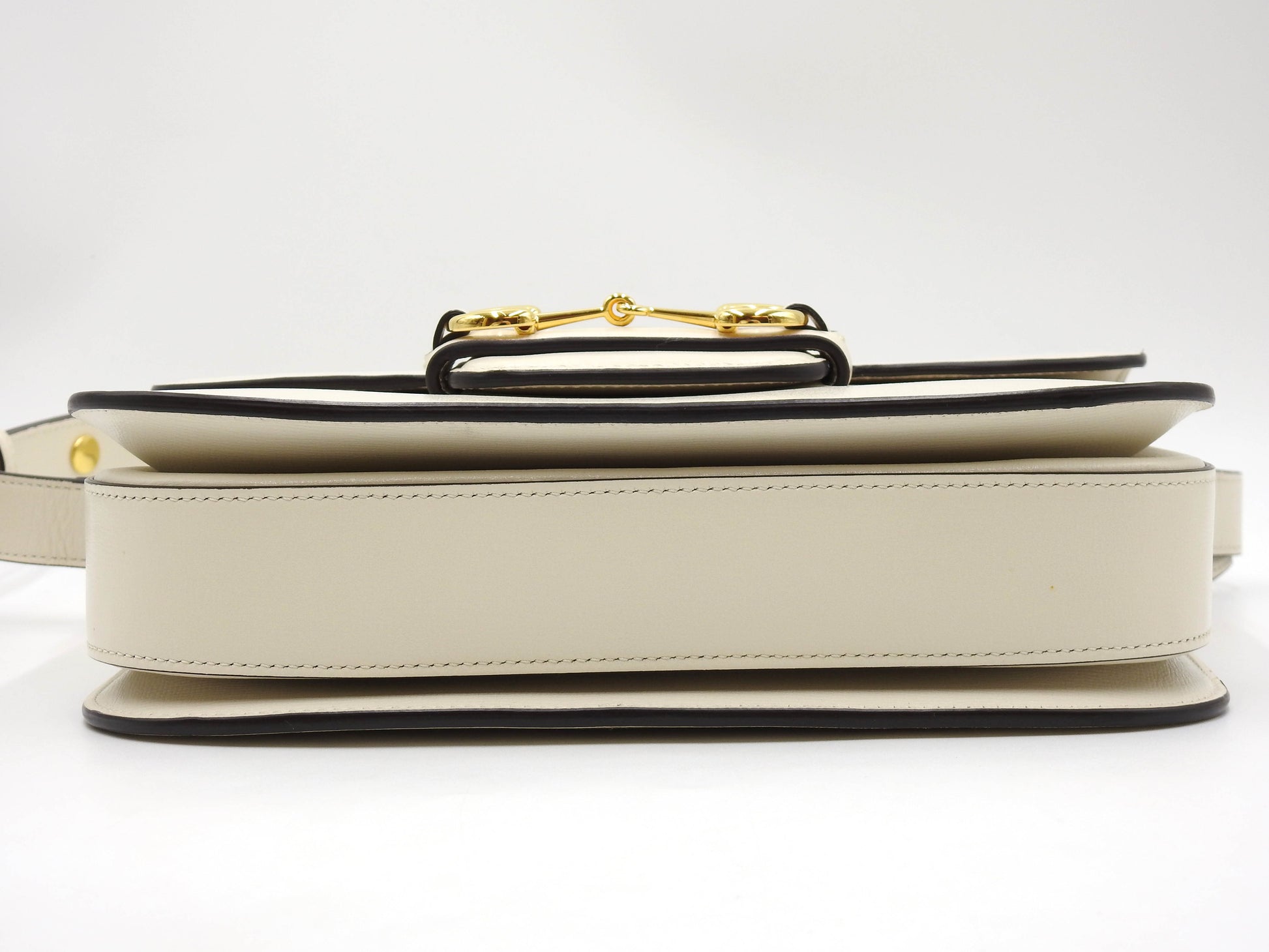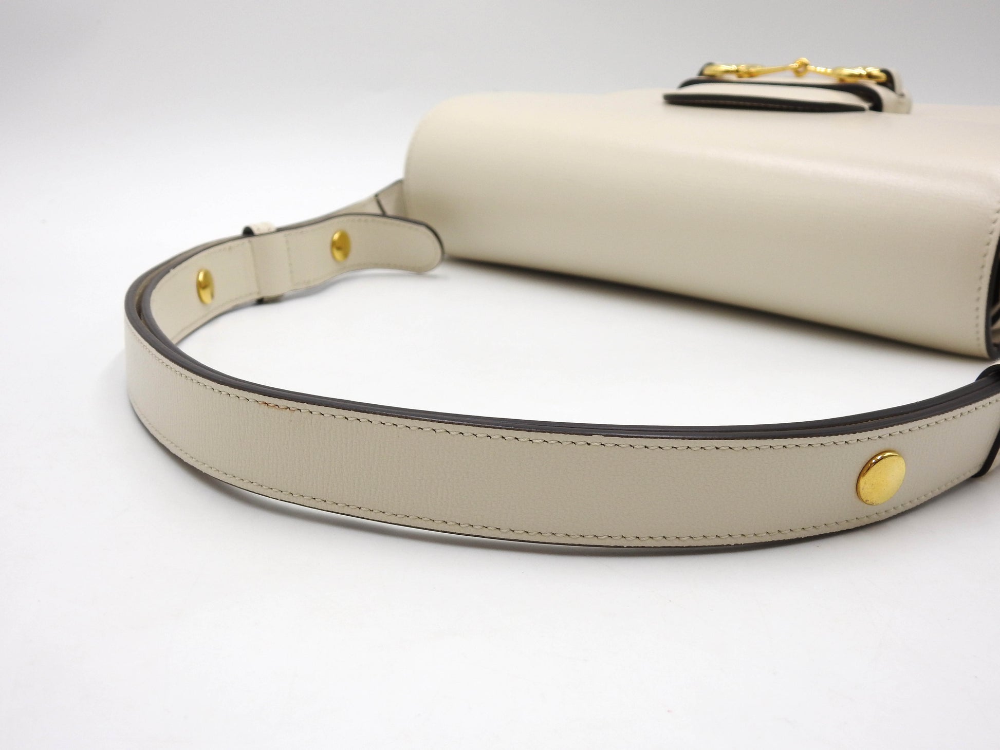 GUCCI Horsebit 1955 Shoulder Bag Leather White Gold Hardware 602204