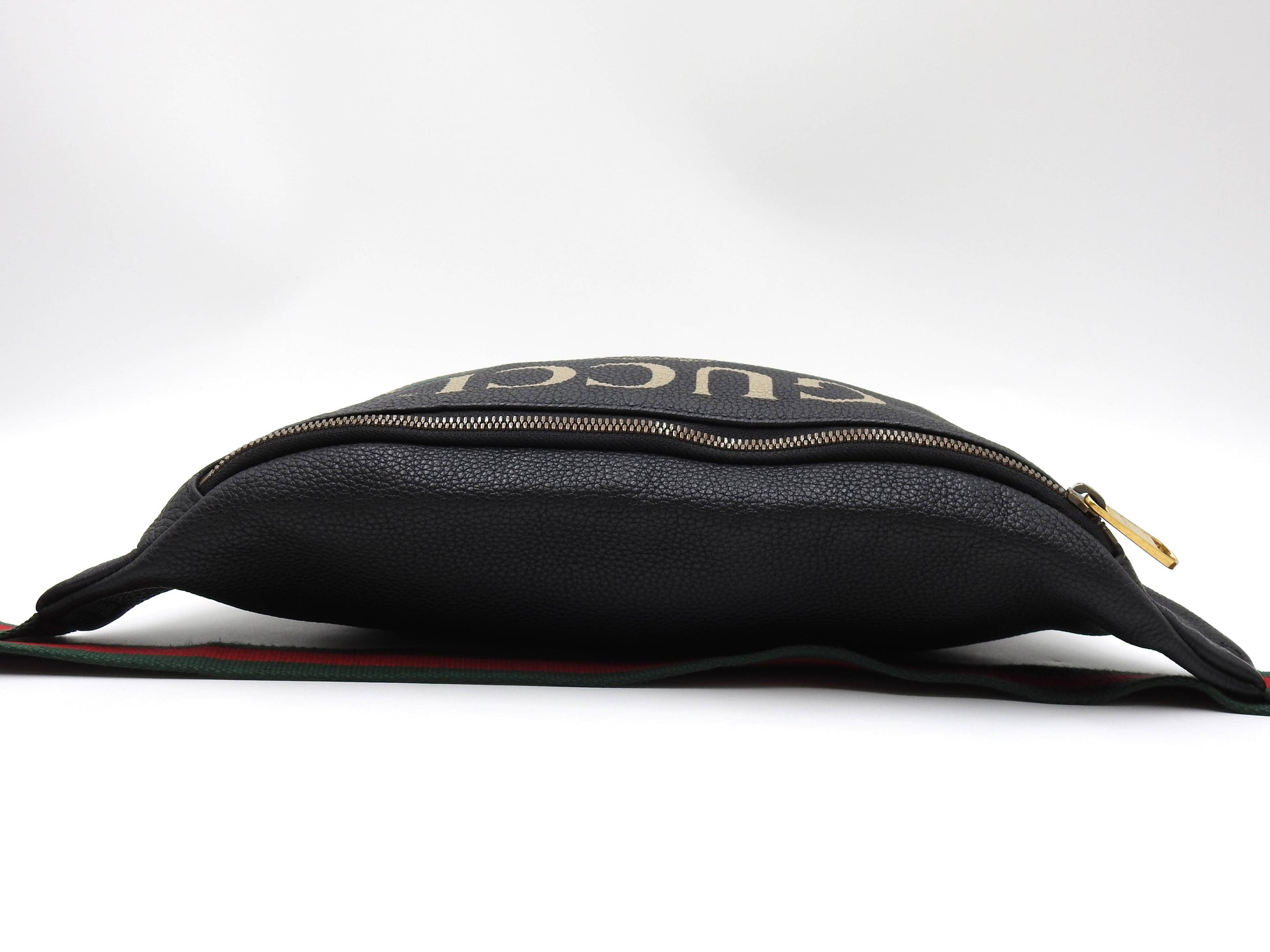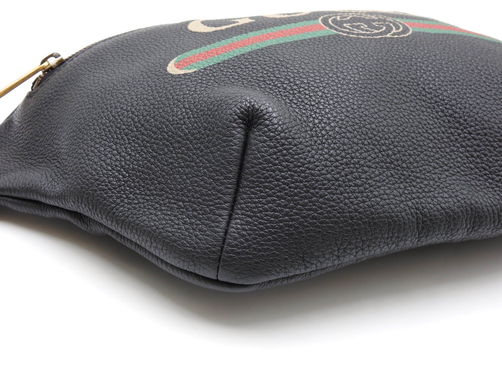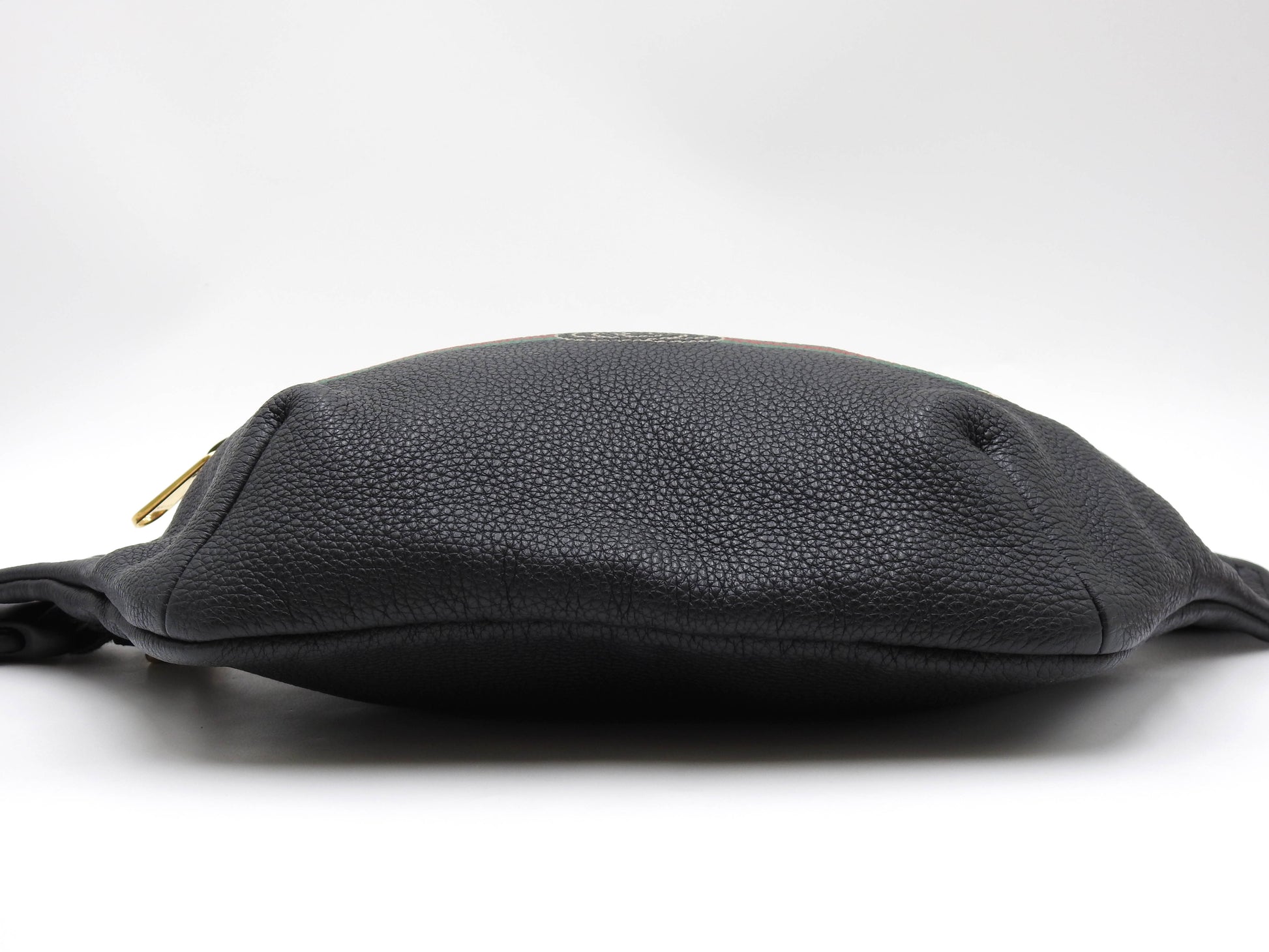 GUCCI Logo Print Web Sherry Waist Body Belt Bag Leather Black 530412