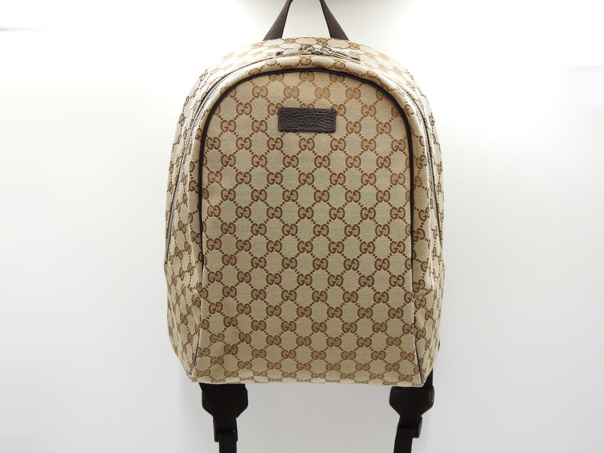 GUCCI Monogram GG Canvas Backpack Bag Beige Brown 449906 Outlet