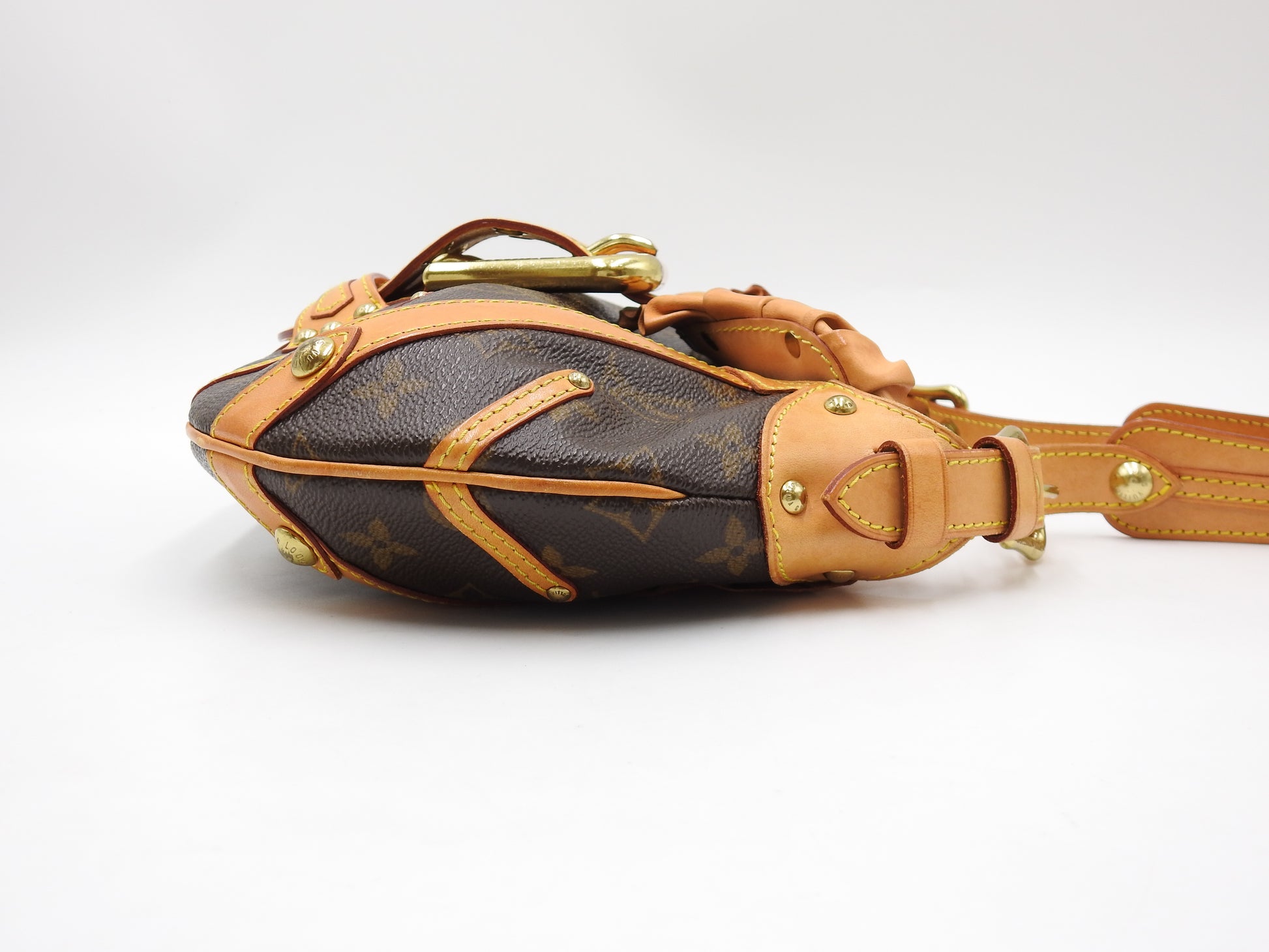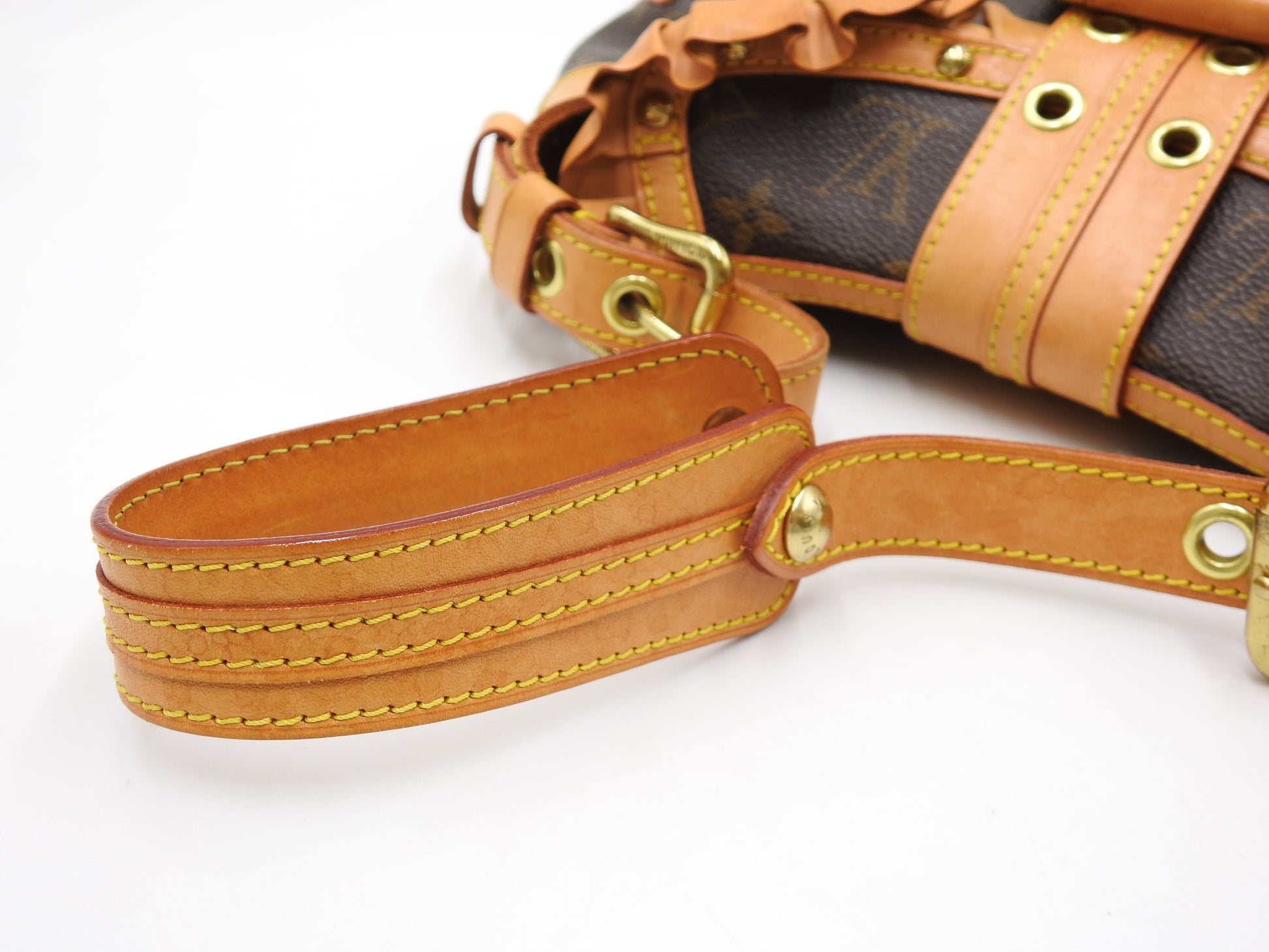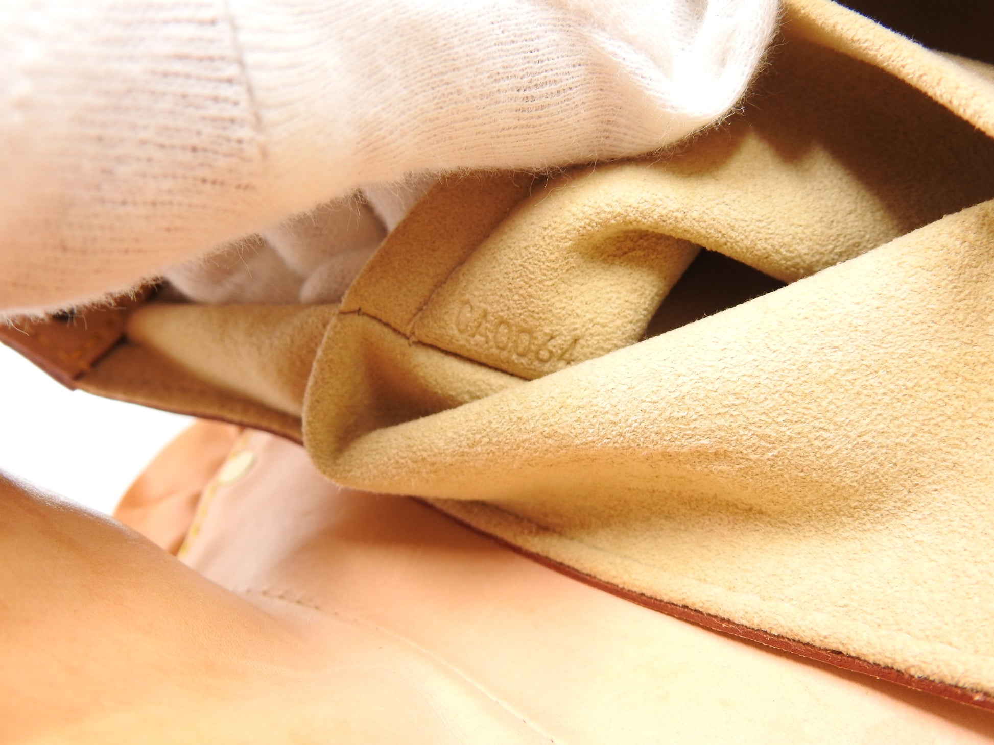 Monogram: Barely used feeling. Slight scuffs. Leather: Used feeling. Some stains, scuffs and tanning. |