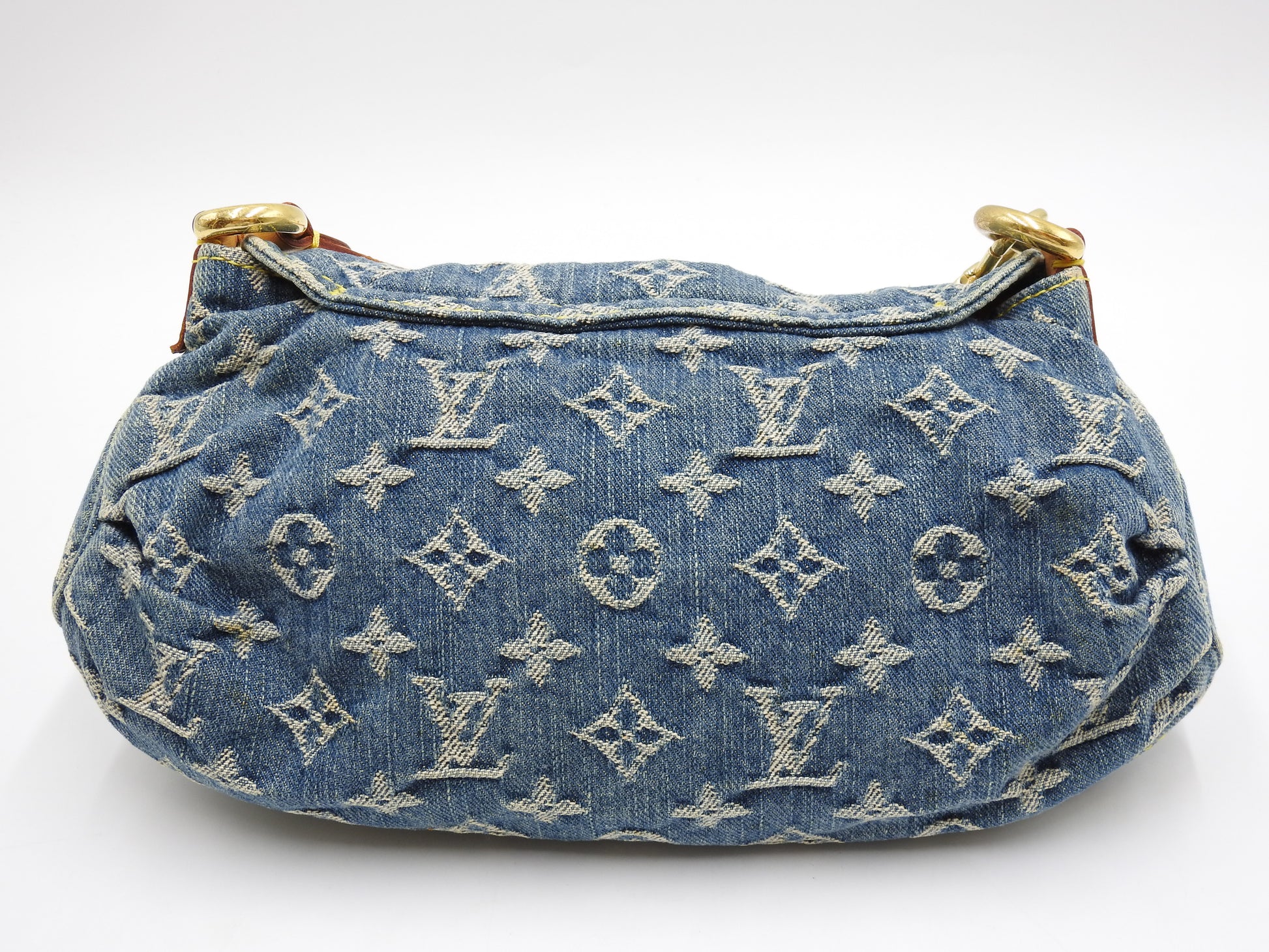 LOUIS VUITTON Mini Pleaty Monogram Denim Shoulder Hand Bag Blue M95050