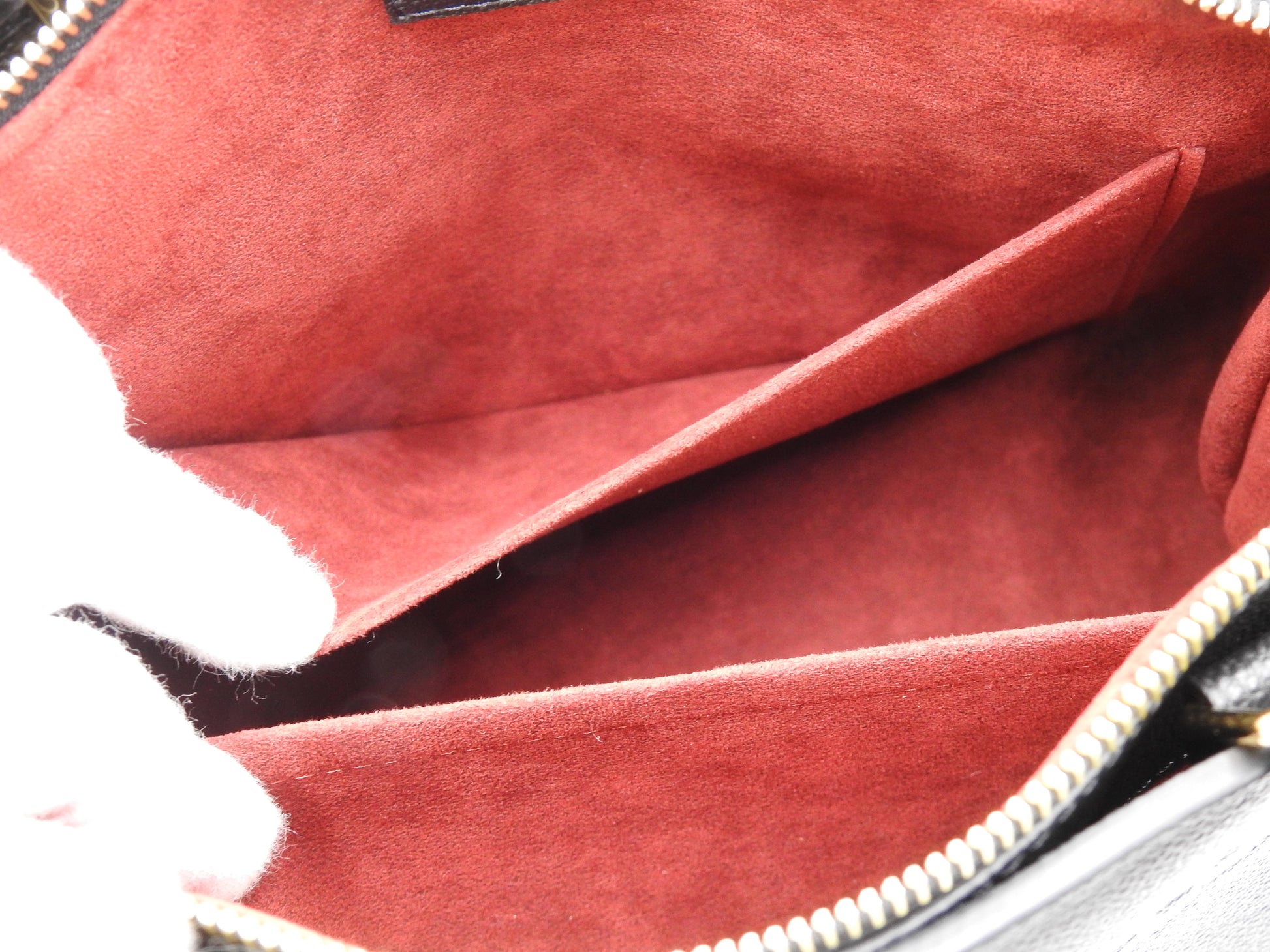 Handles | Barely used feeling. Tiny stains and scuffs. Shoulder strap: Slightly used feeling. Small stains and scuffs in the hardware. |