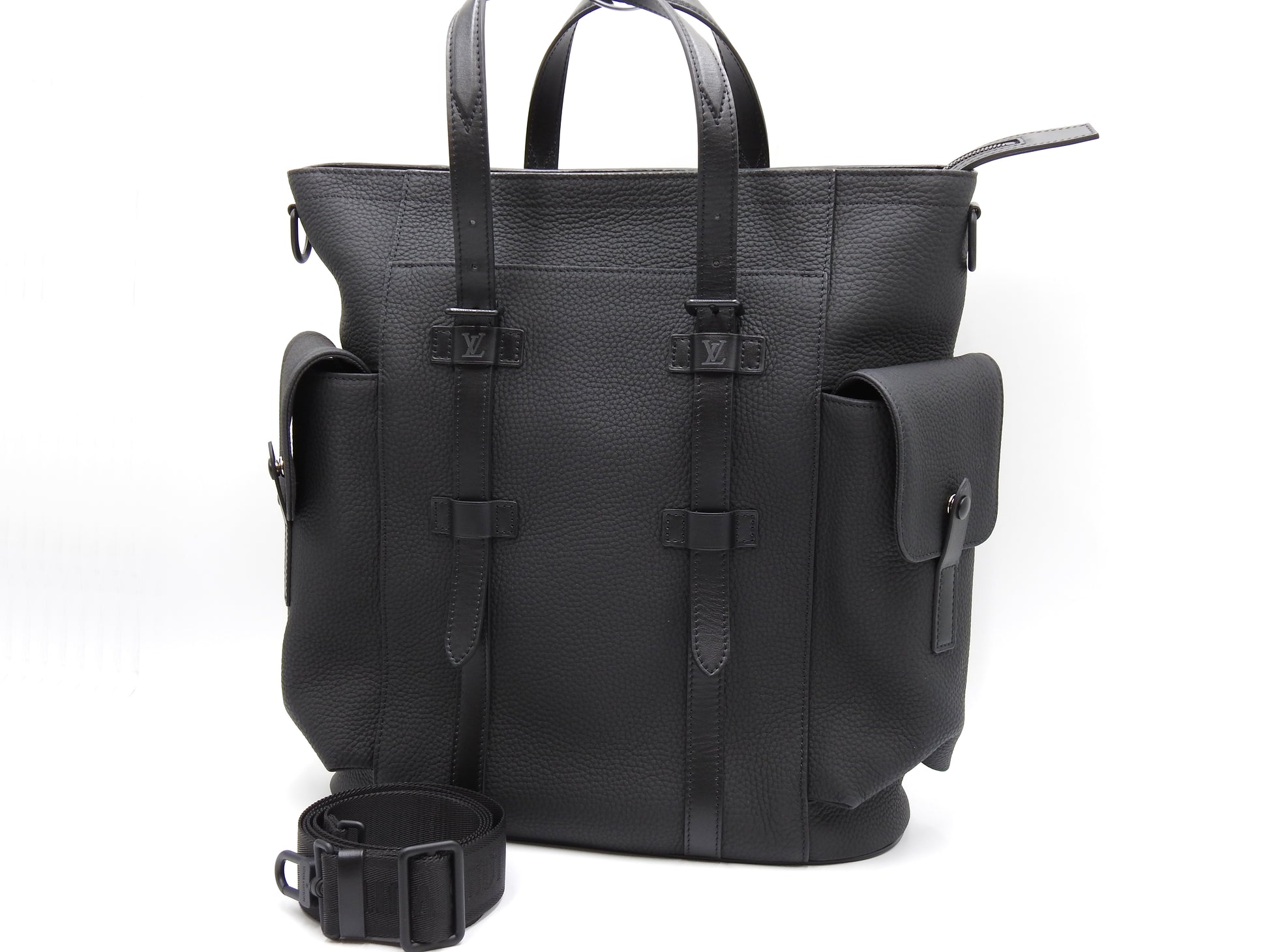 LOUIS VUITTON Taurillon Monogram Christopher Tote Bag Black M58479